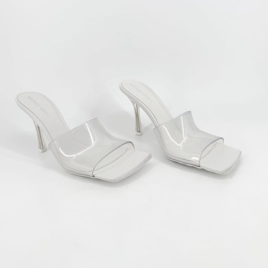 Bottega Veneta Stretch Mule Sandals in "Glass" Clear Rubber & White Leather Size 39