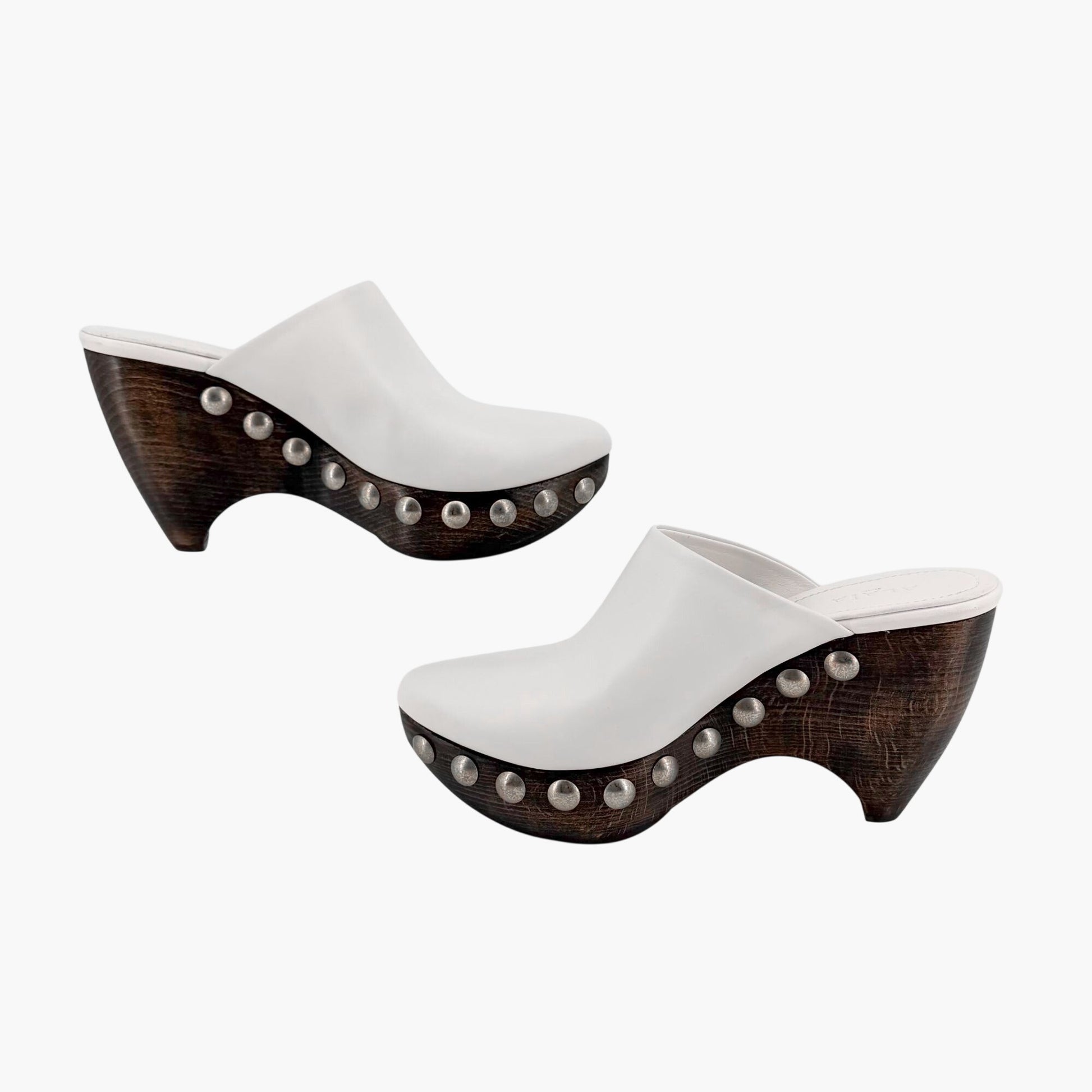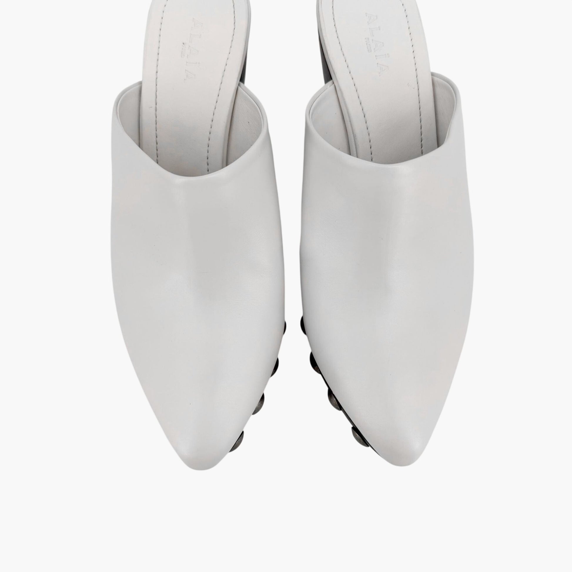 Alaïa Le Sabot Studded Clogs White Leather Size 39