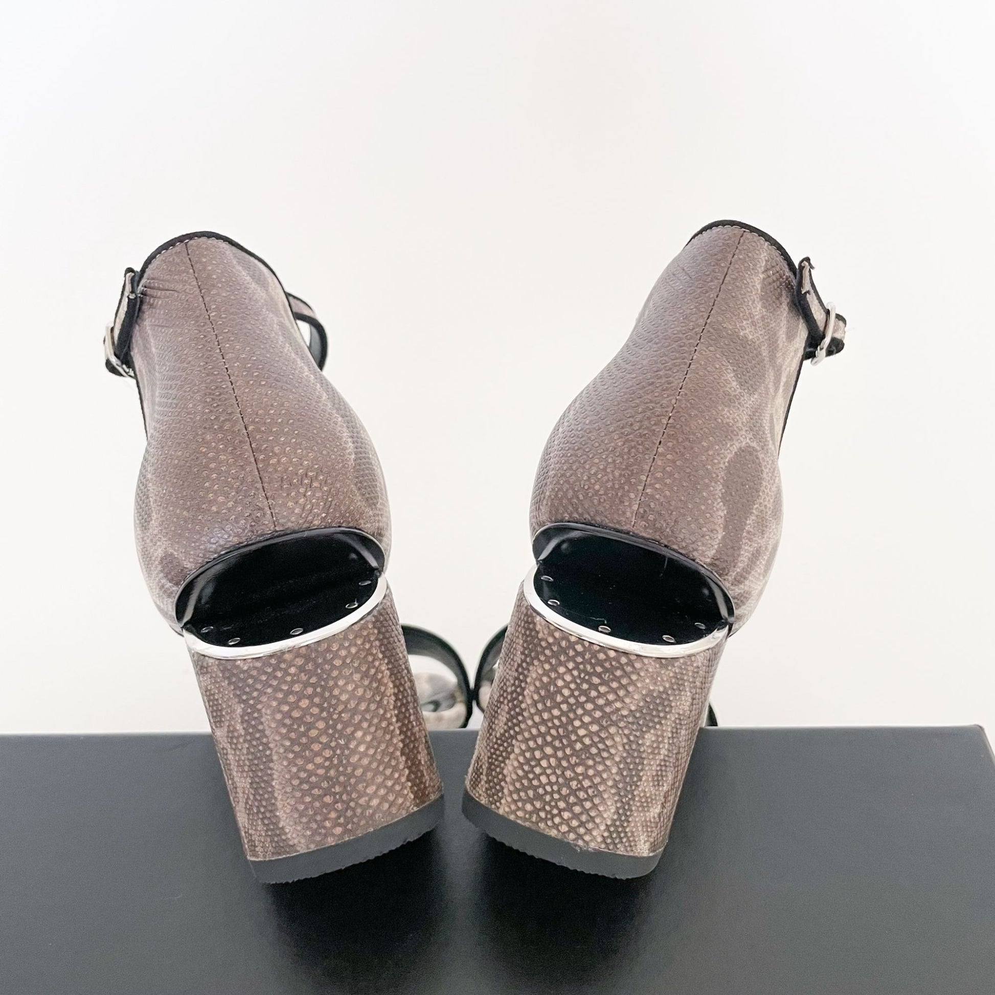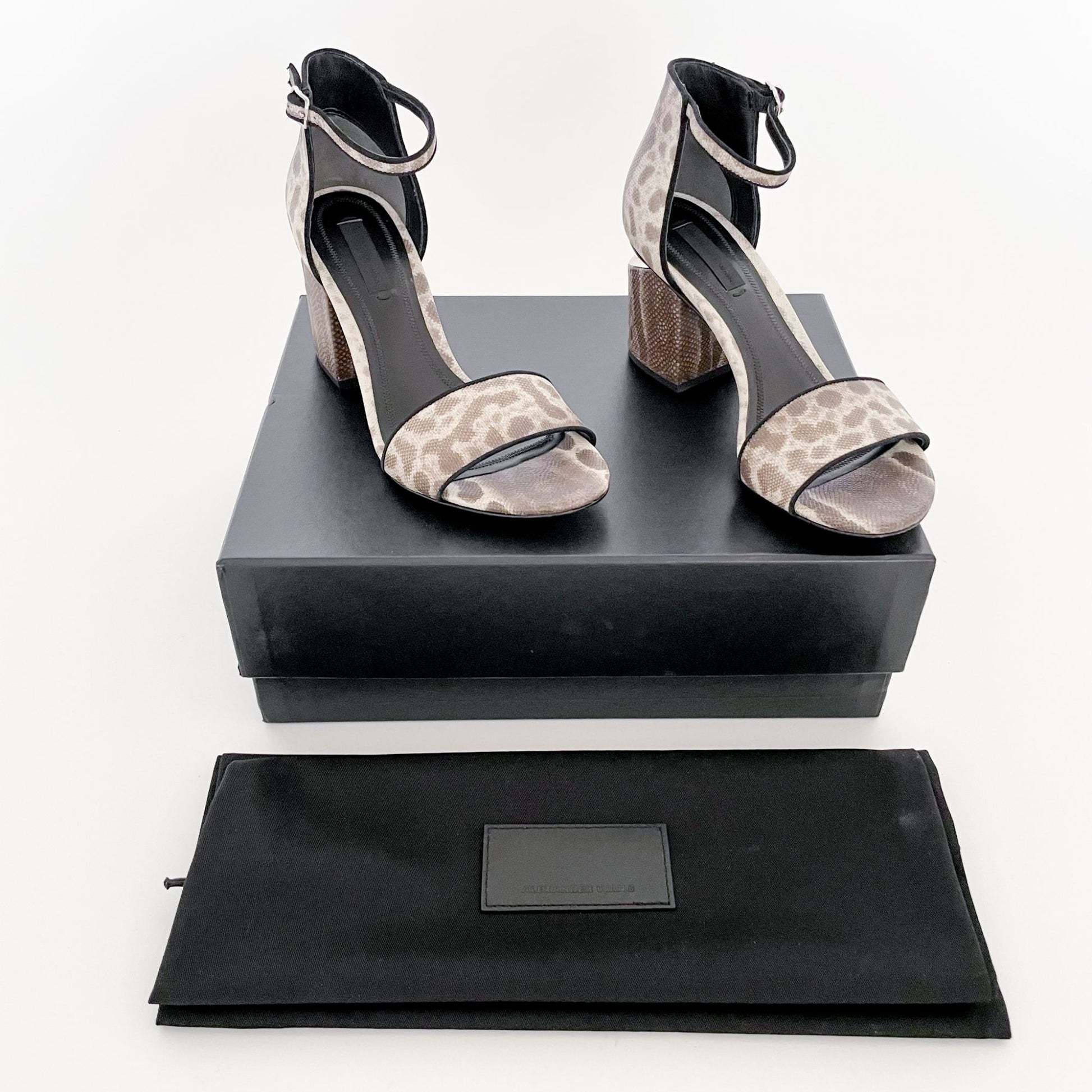 Alexander Wang Abby Sandals EU 36.5 US 6.5 Beige Snake Block Heels Cheetah Brown