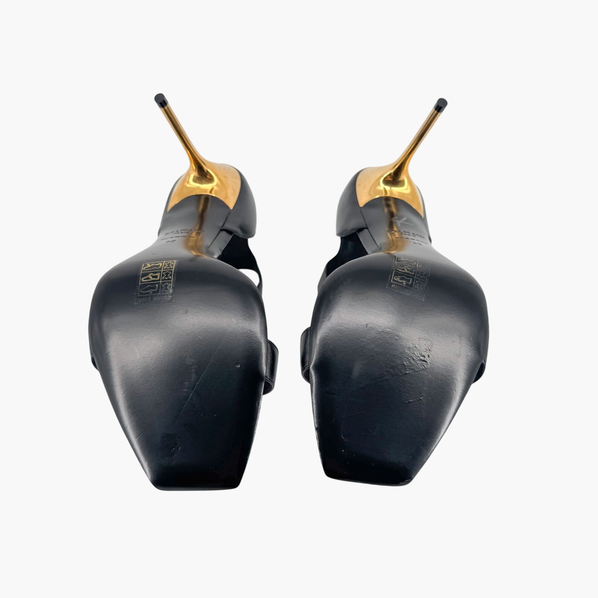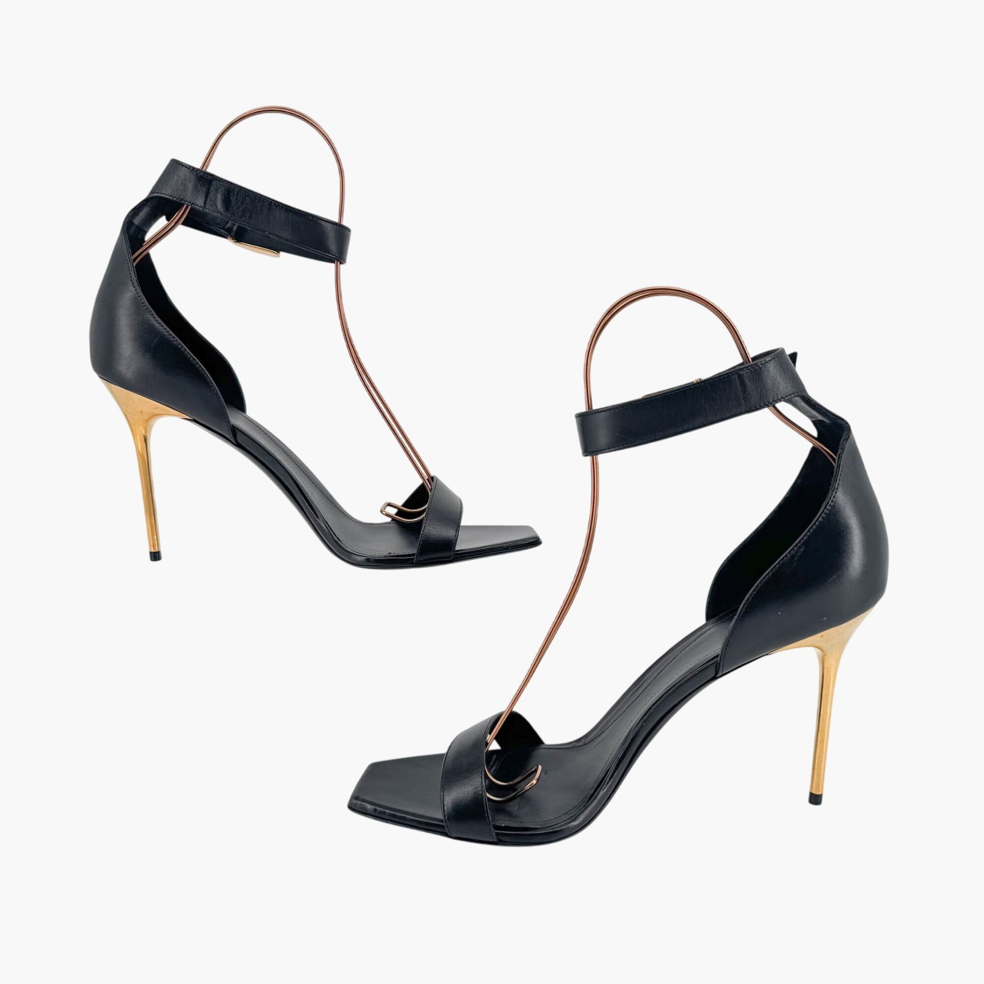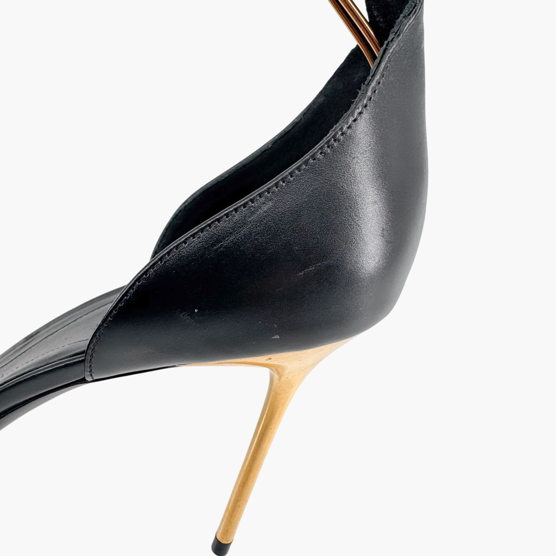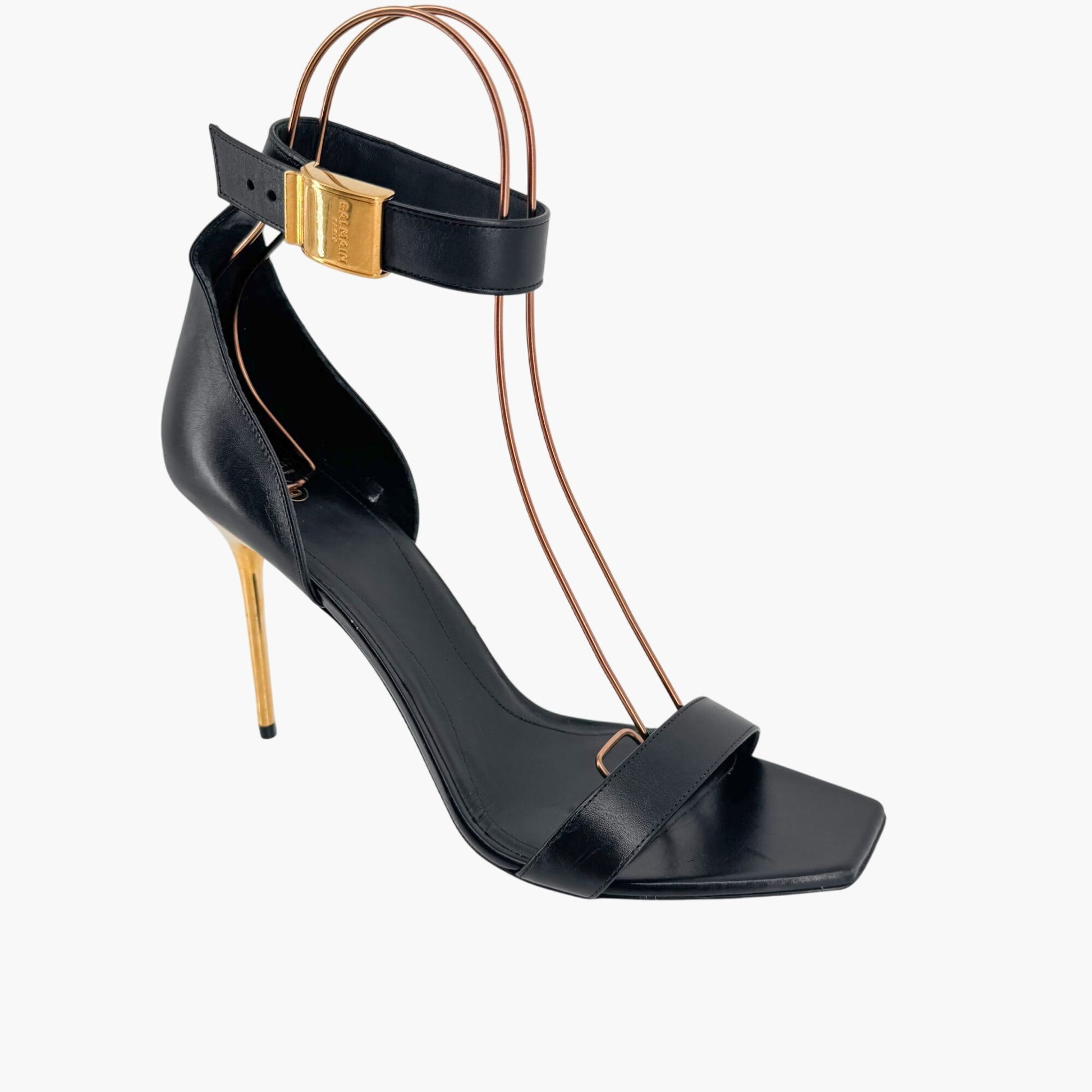 Balmain Uma Buckle Sandals Black Leather Gold Heel – Size 42