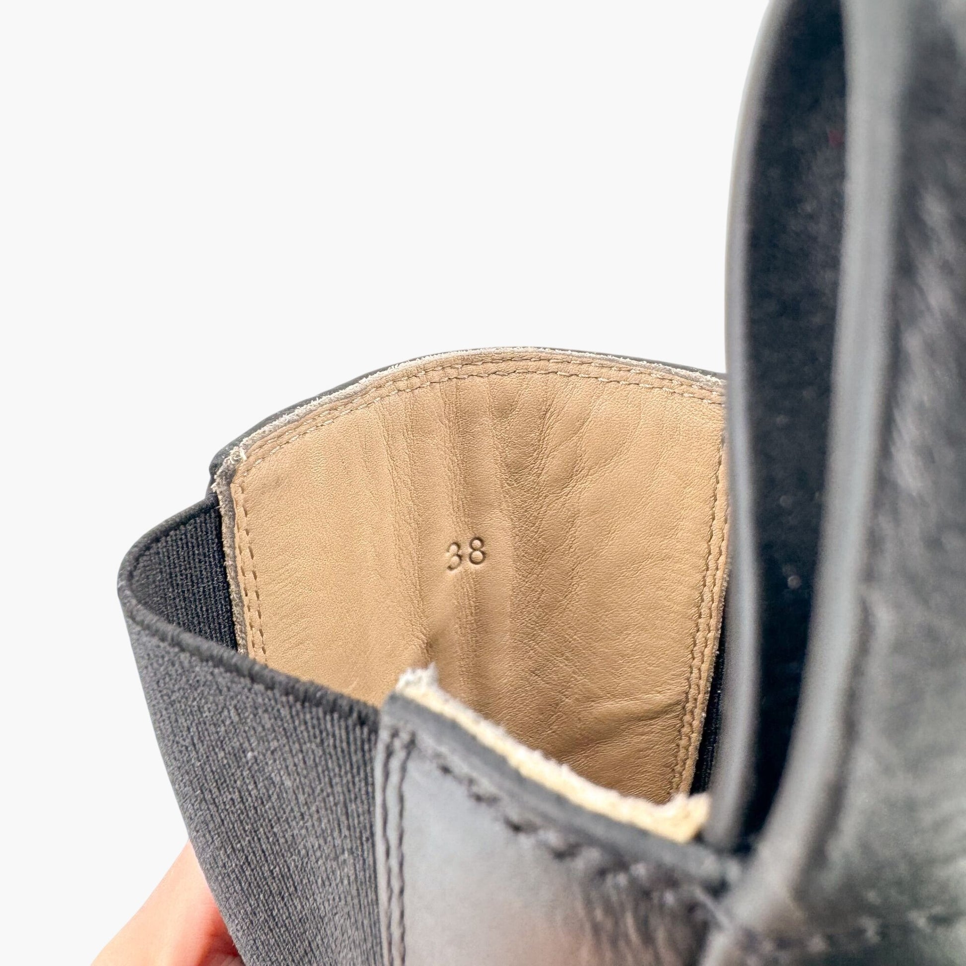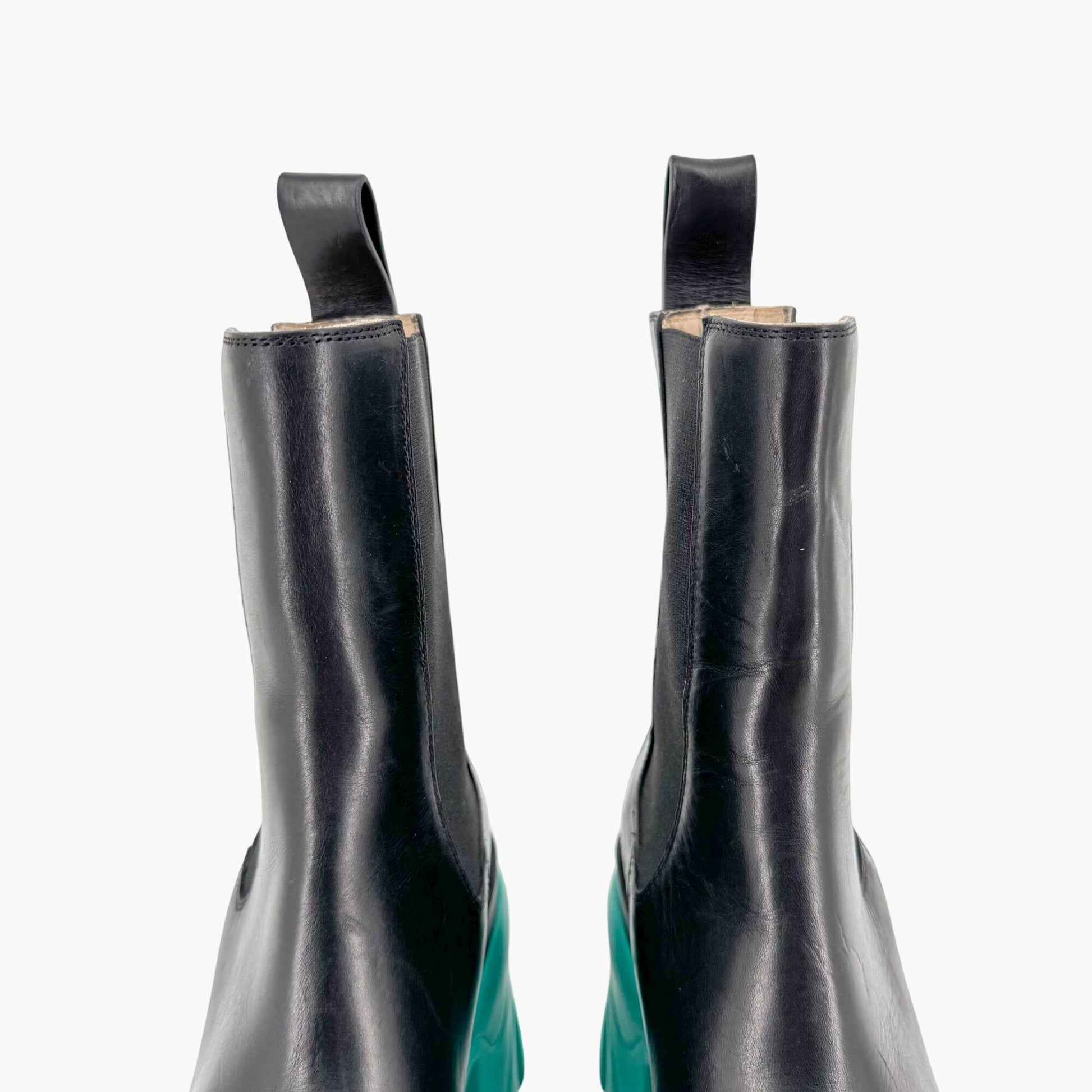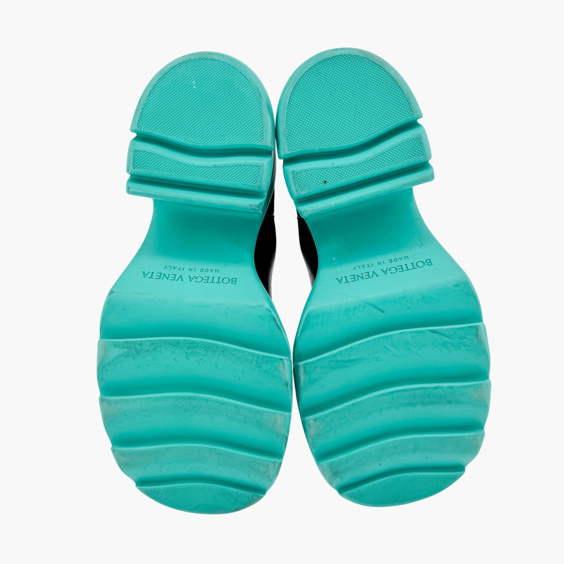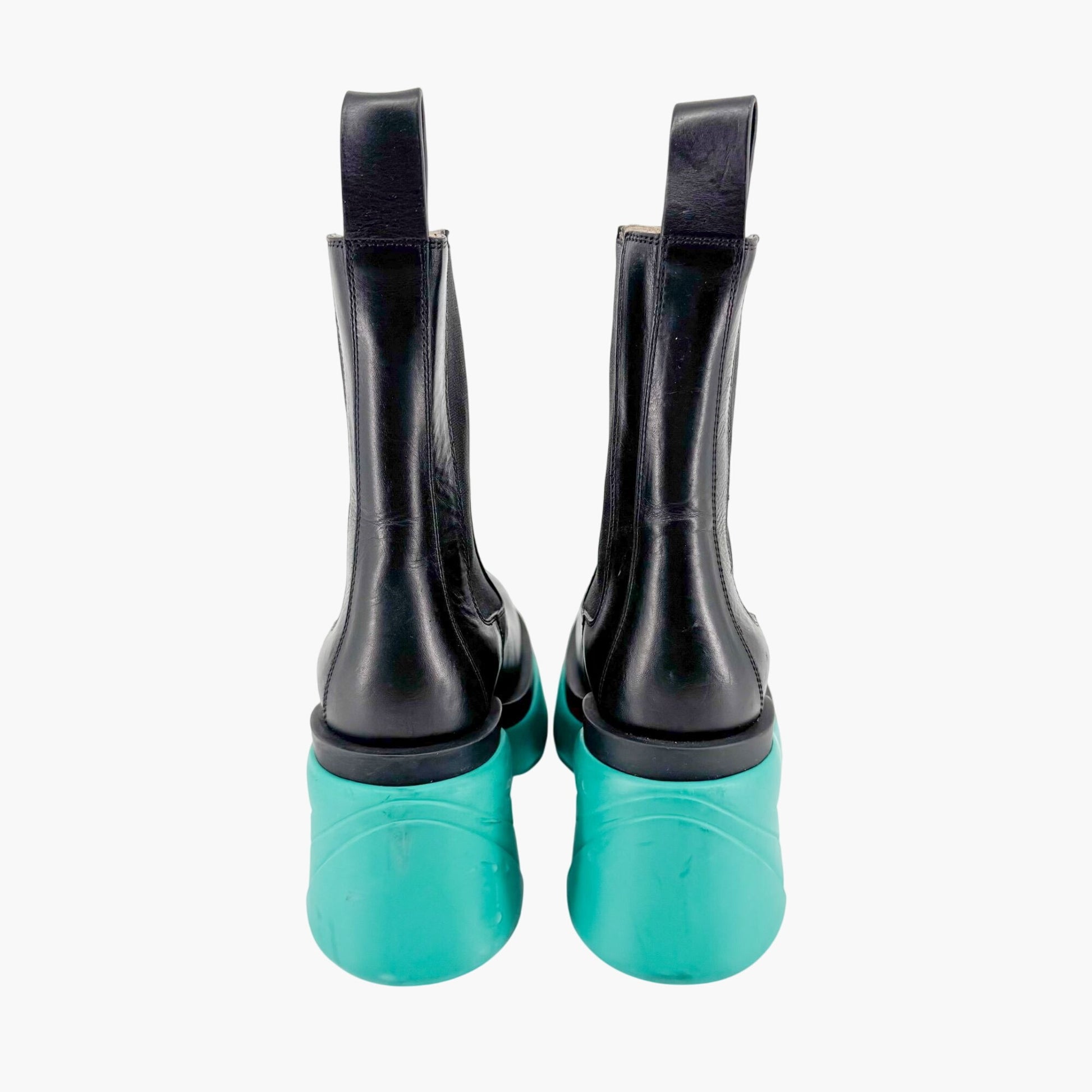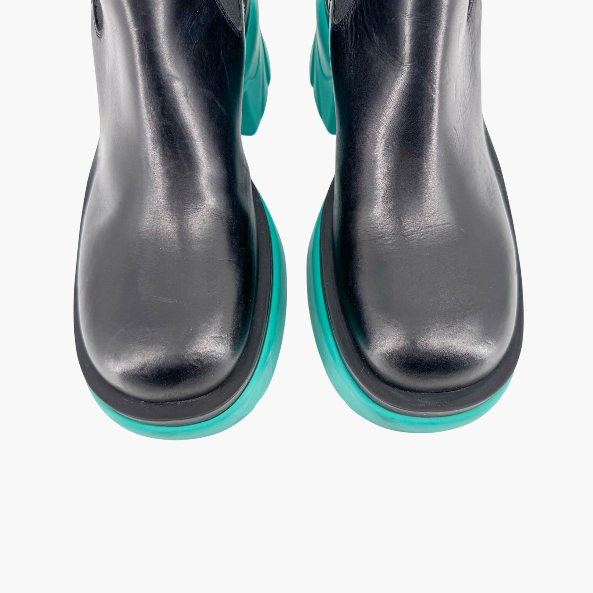 Bottega Veneta Flash Chelsea Ankle Boots EU 38 US 8 Black Leather Teal Heel Tire