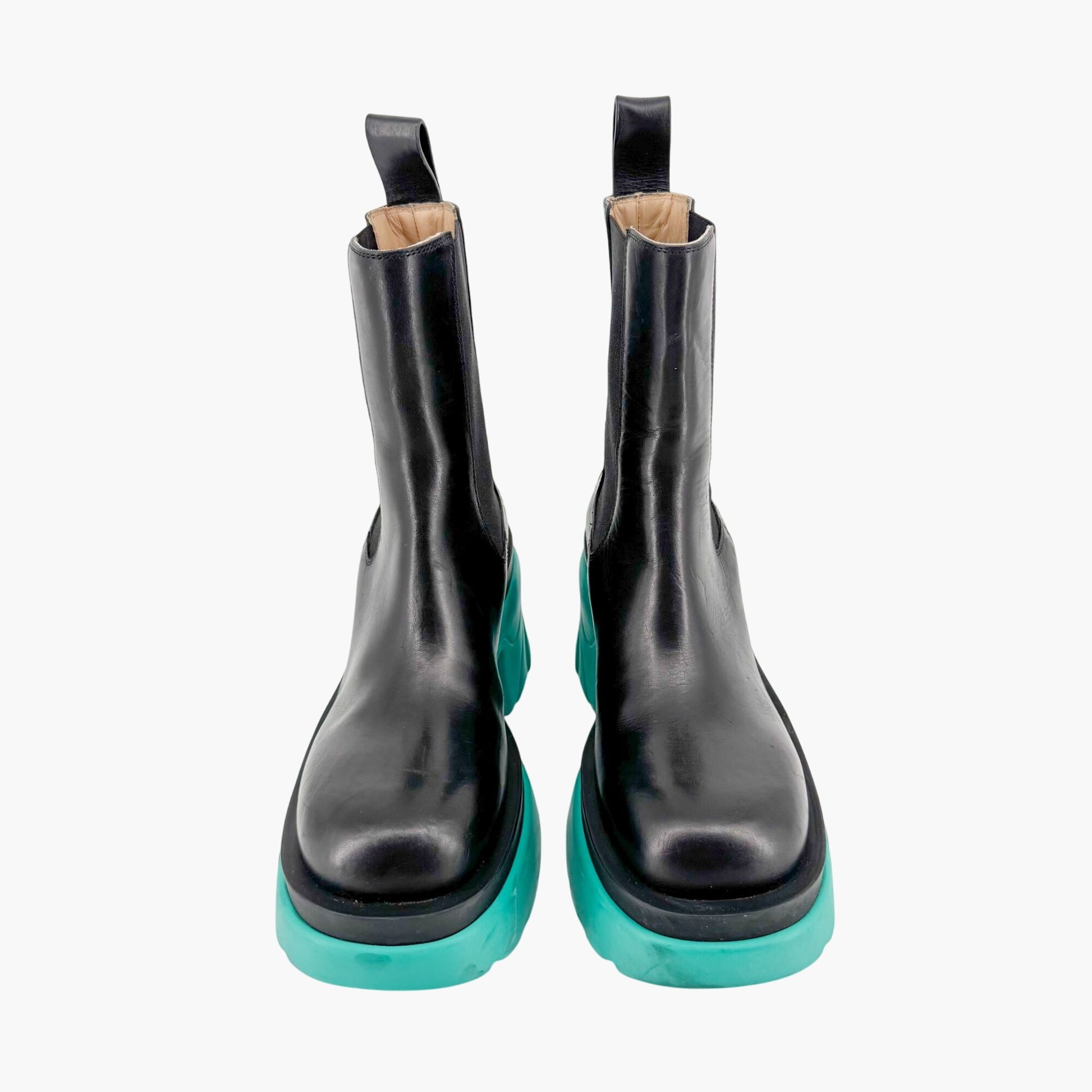 Bottega Veneta Flash Chelsea Ankle Boots in Black & Teal Size 38