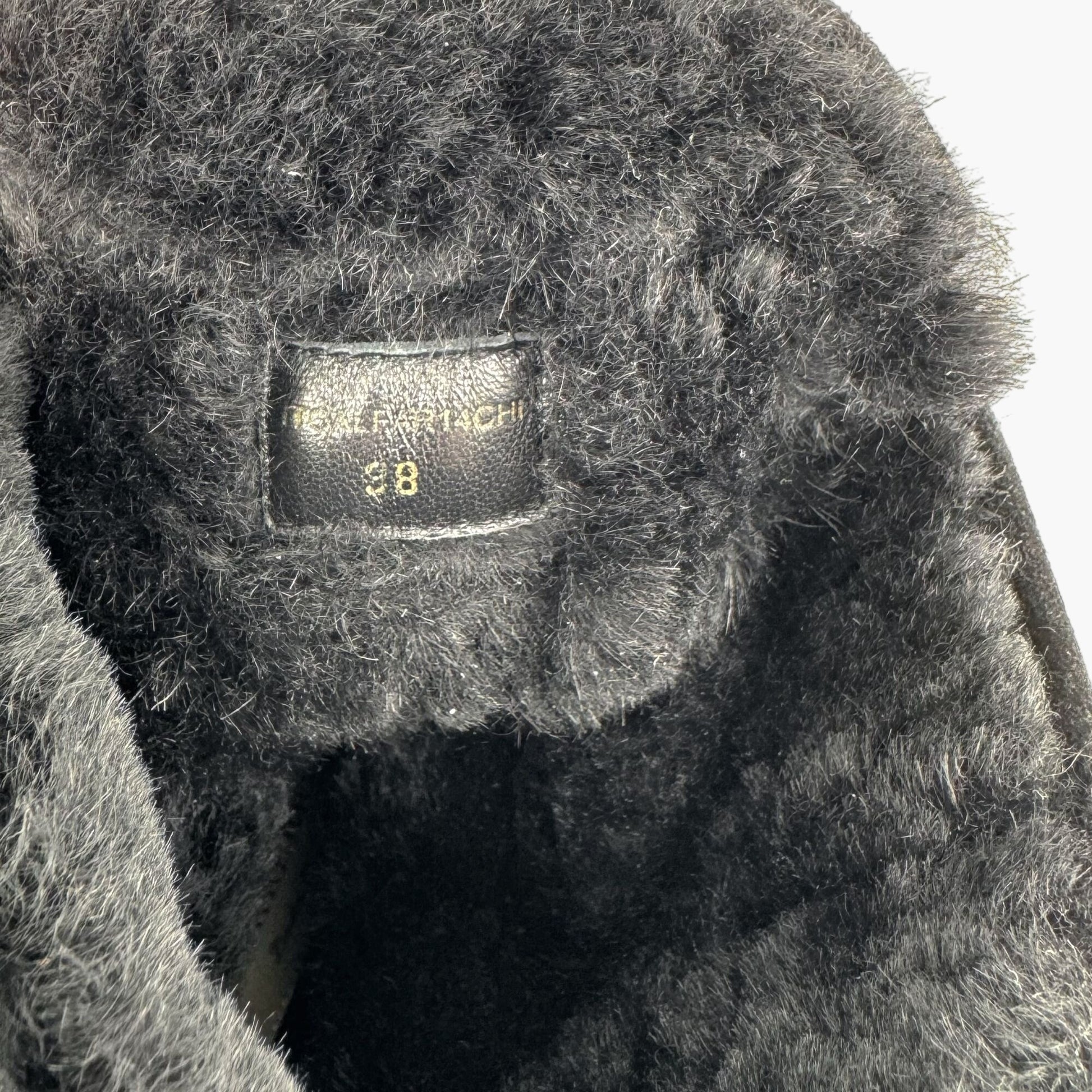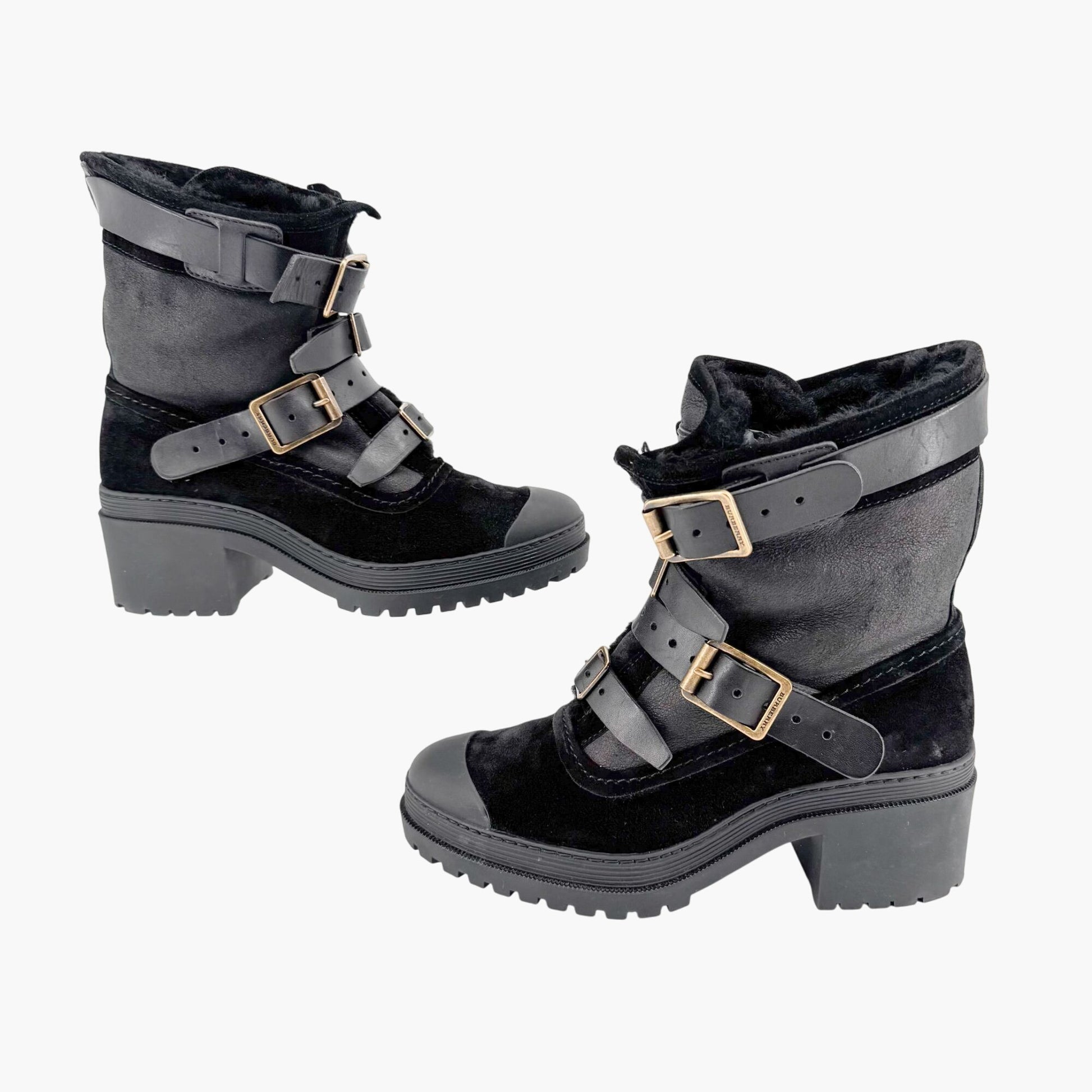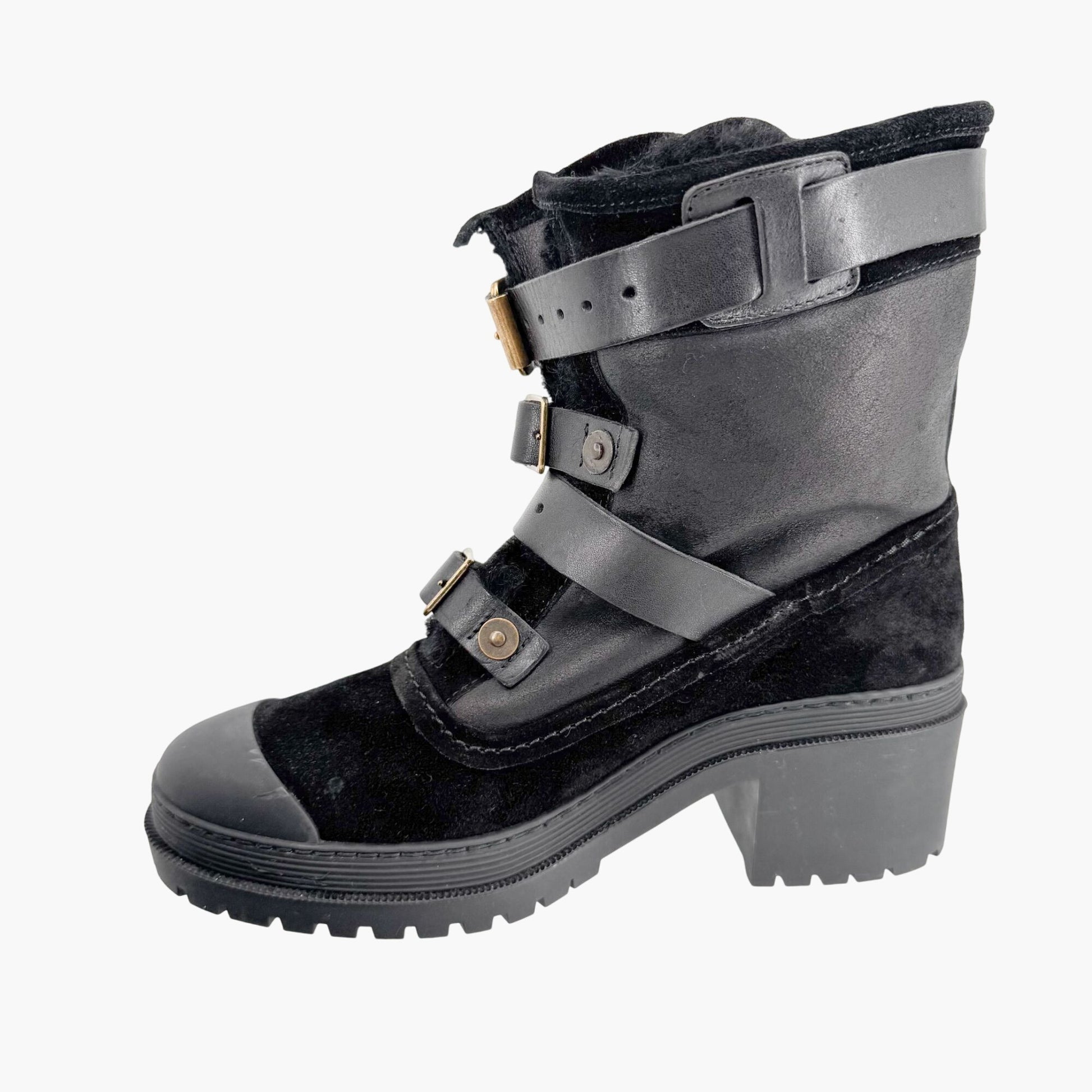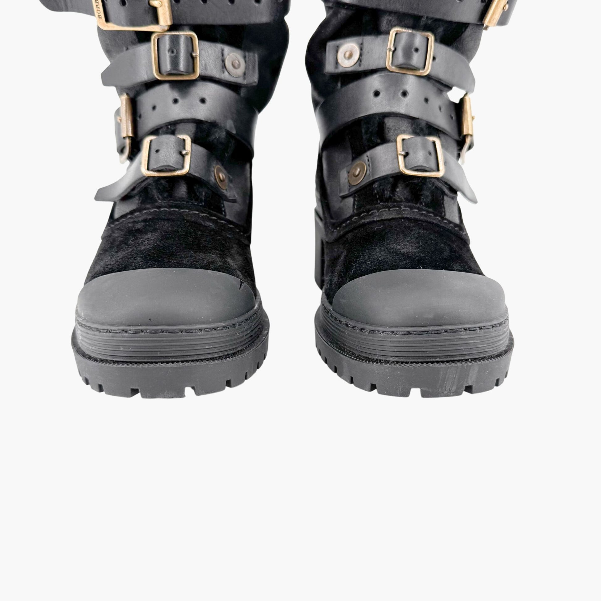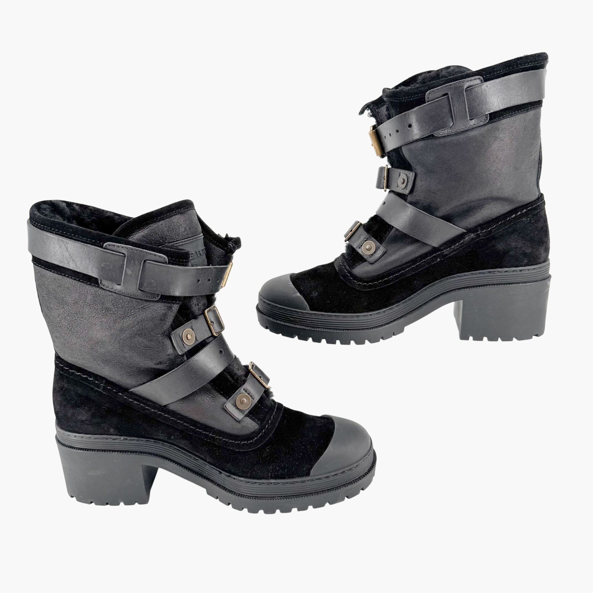 Burberry Aviator Dukes Boots EU 38 US 8 Black Suede Fur Lined Moto Biker Harness