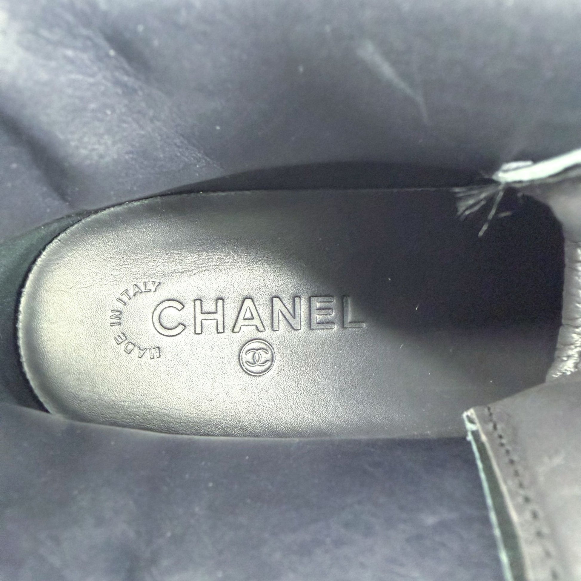 Chanel Camellia Flower High Top Sneaker Boots Navy Size 38