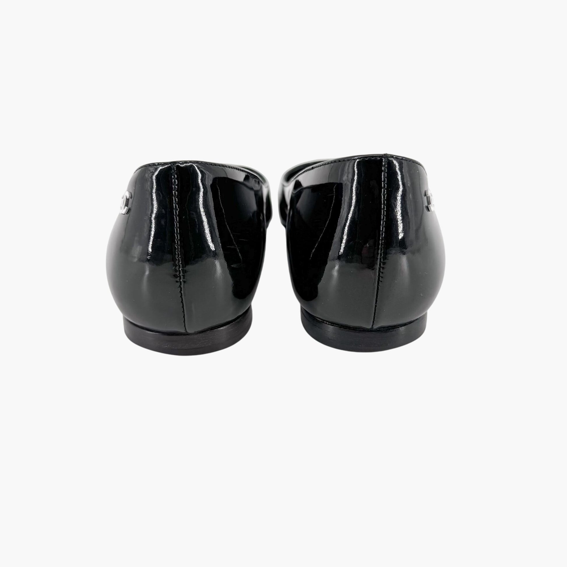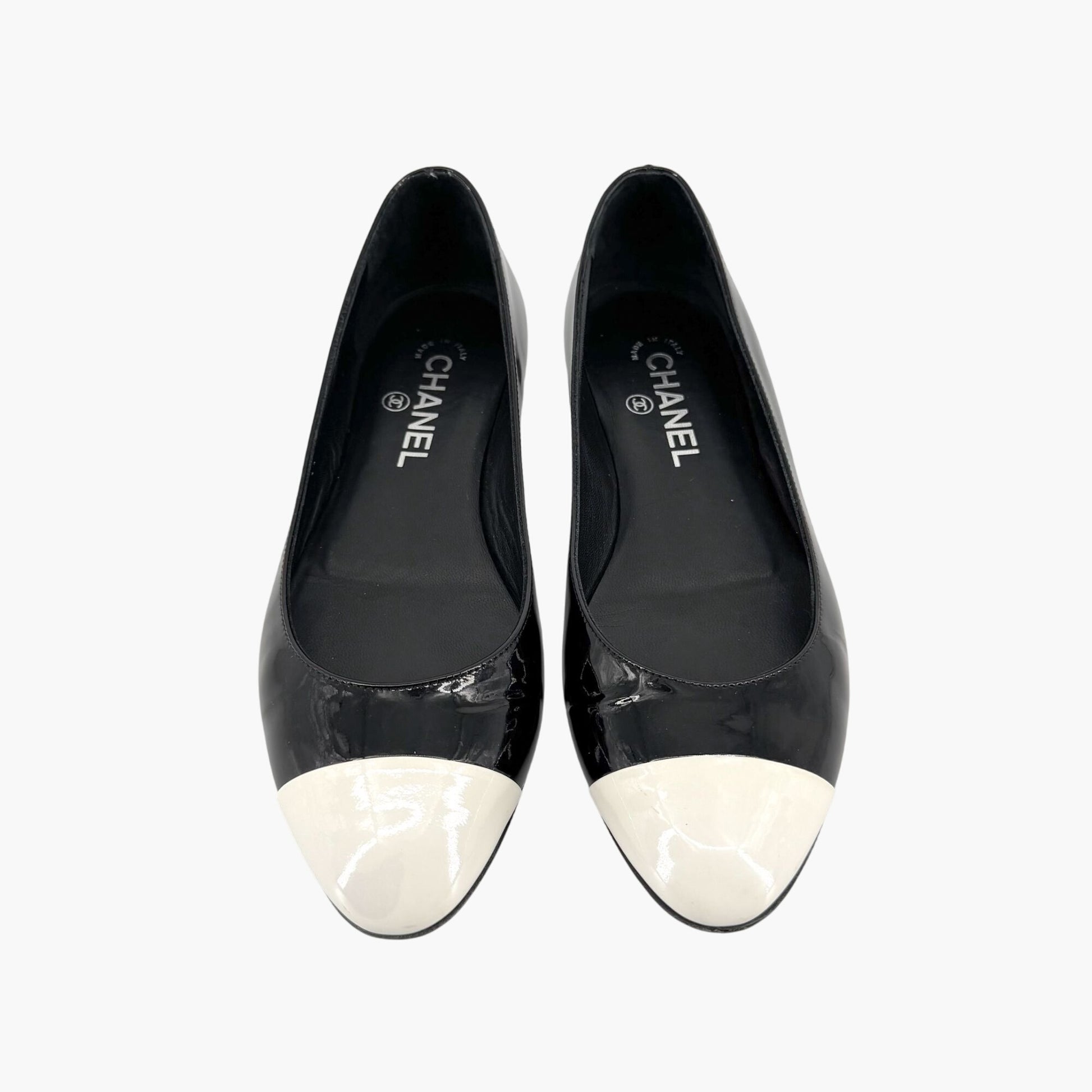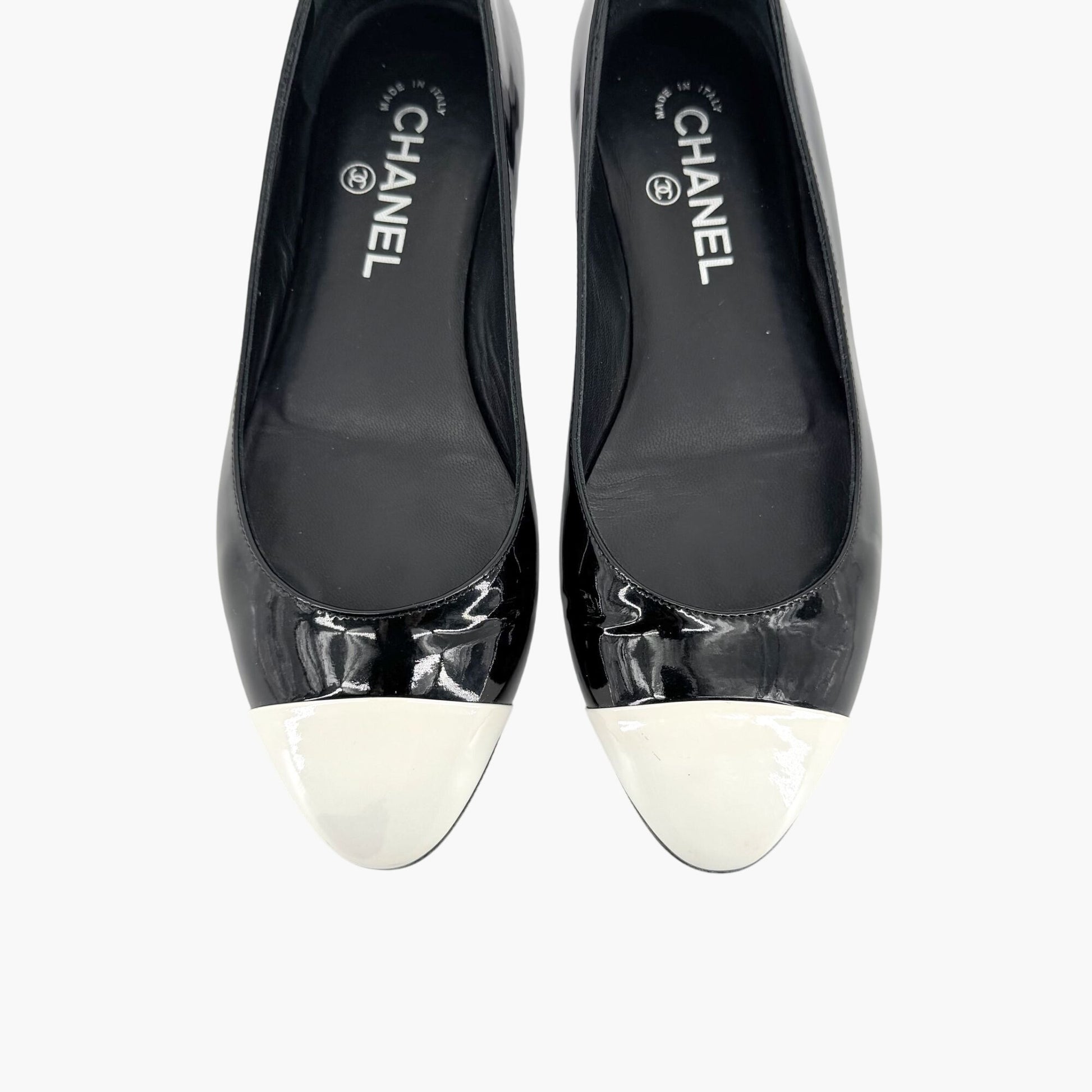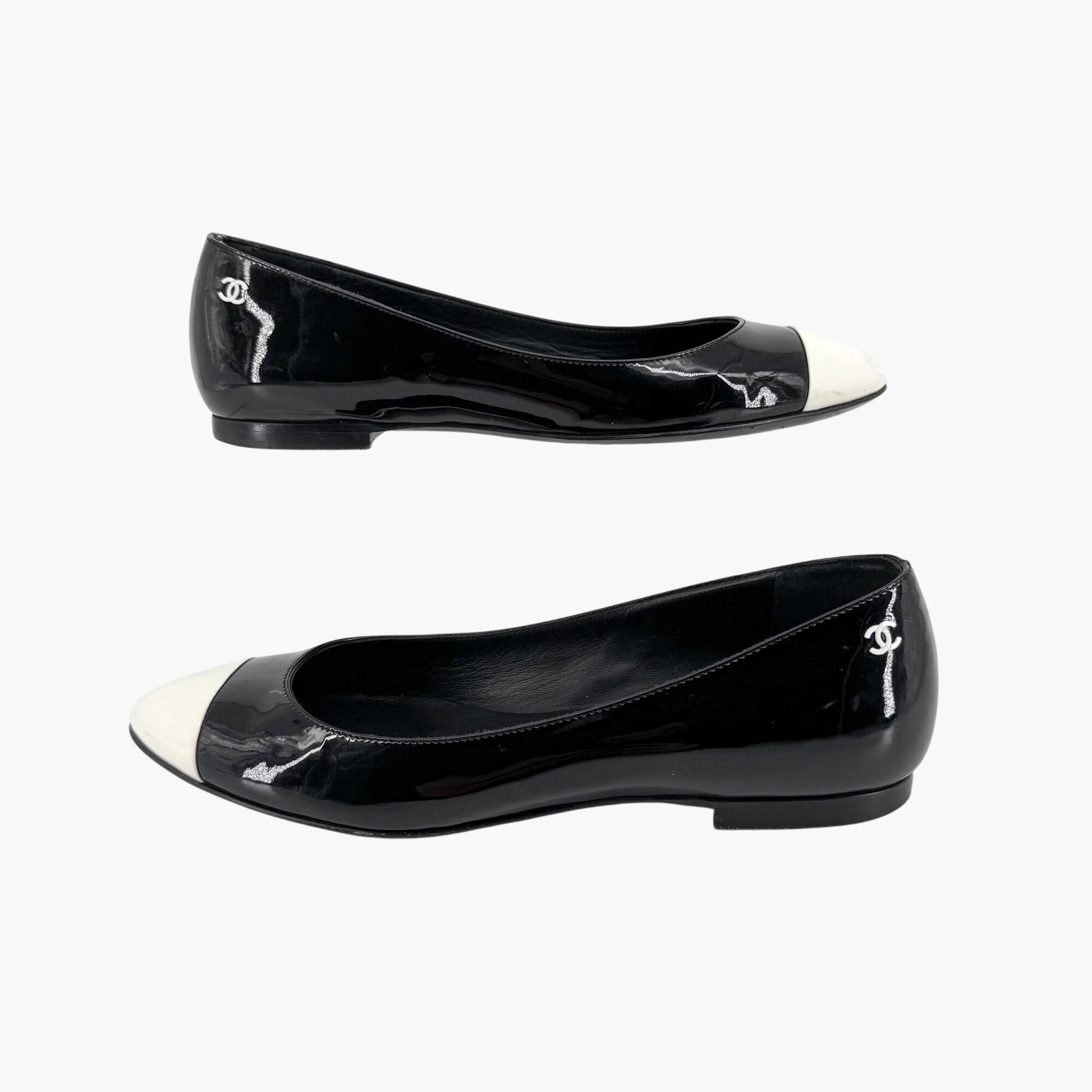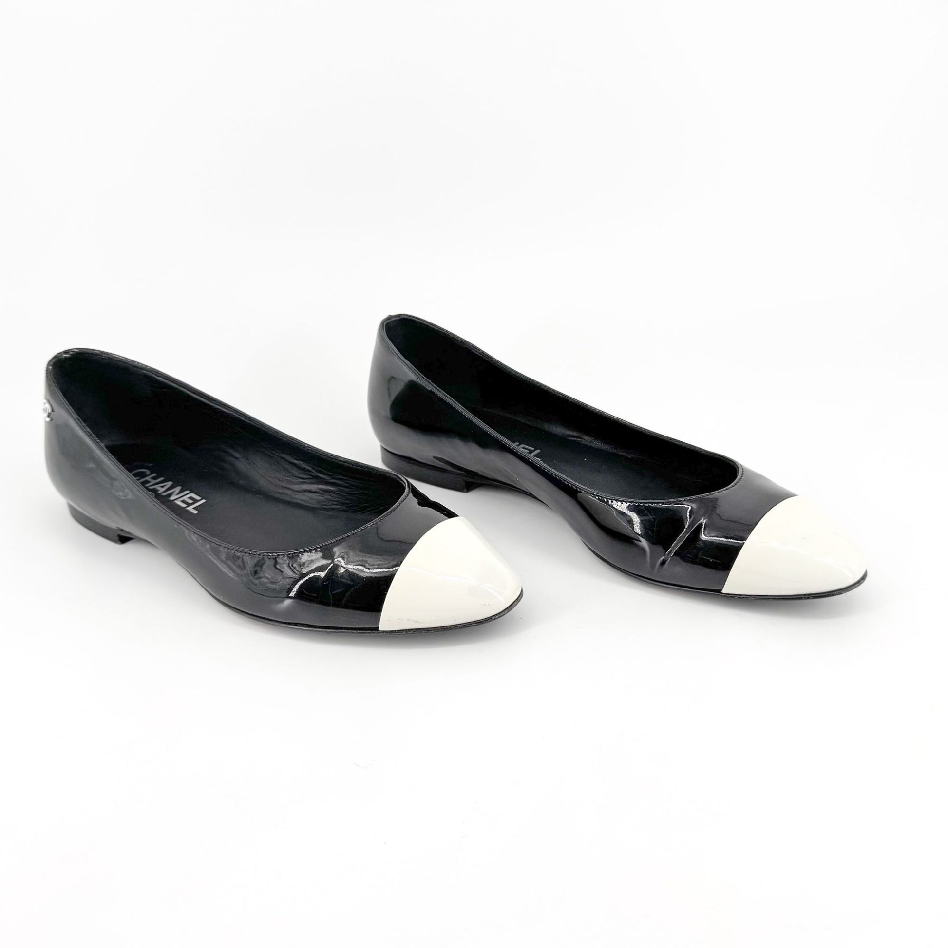 Chanel Cap Toe CC Ballet Flats in Black Patent Leather
