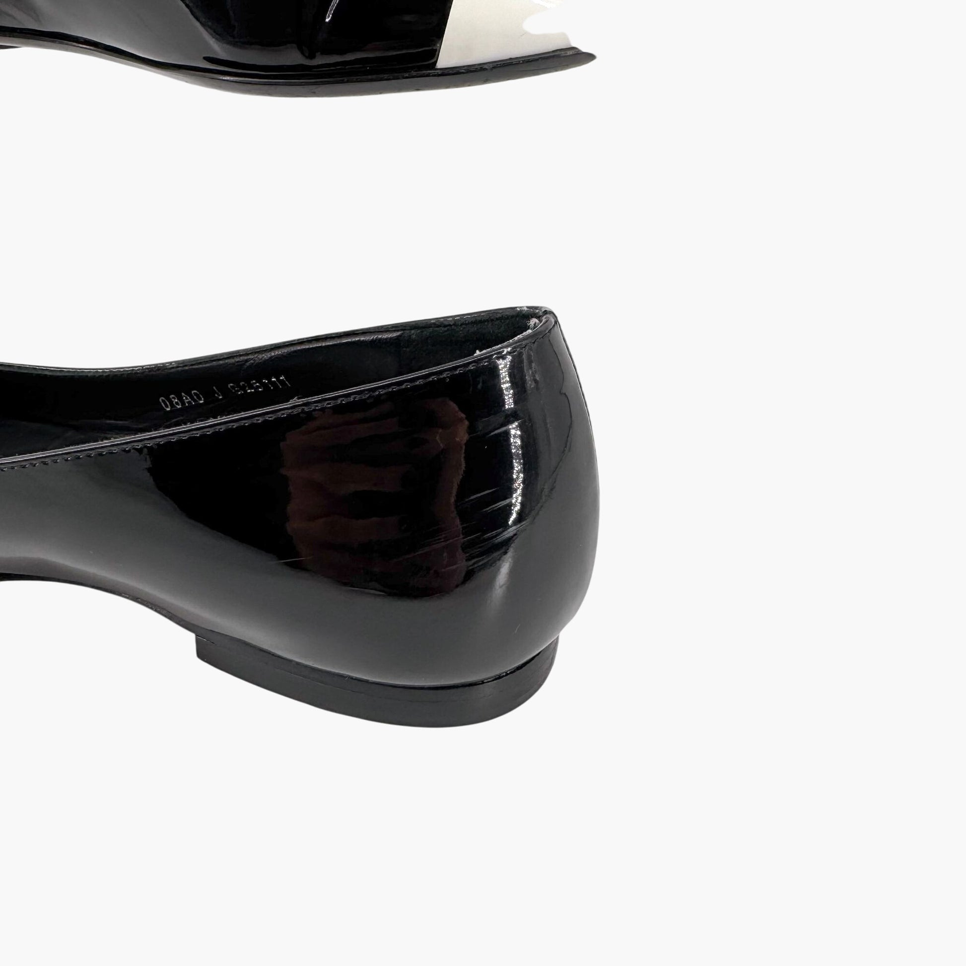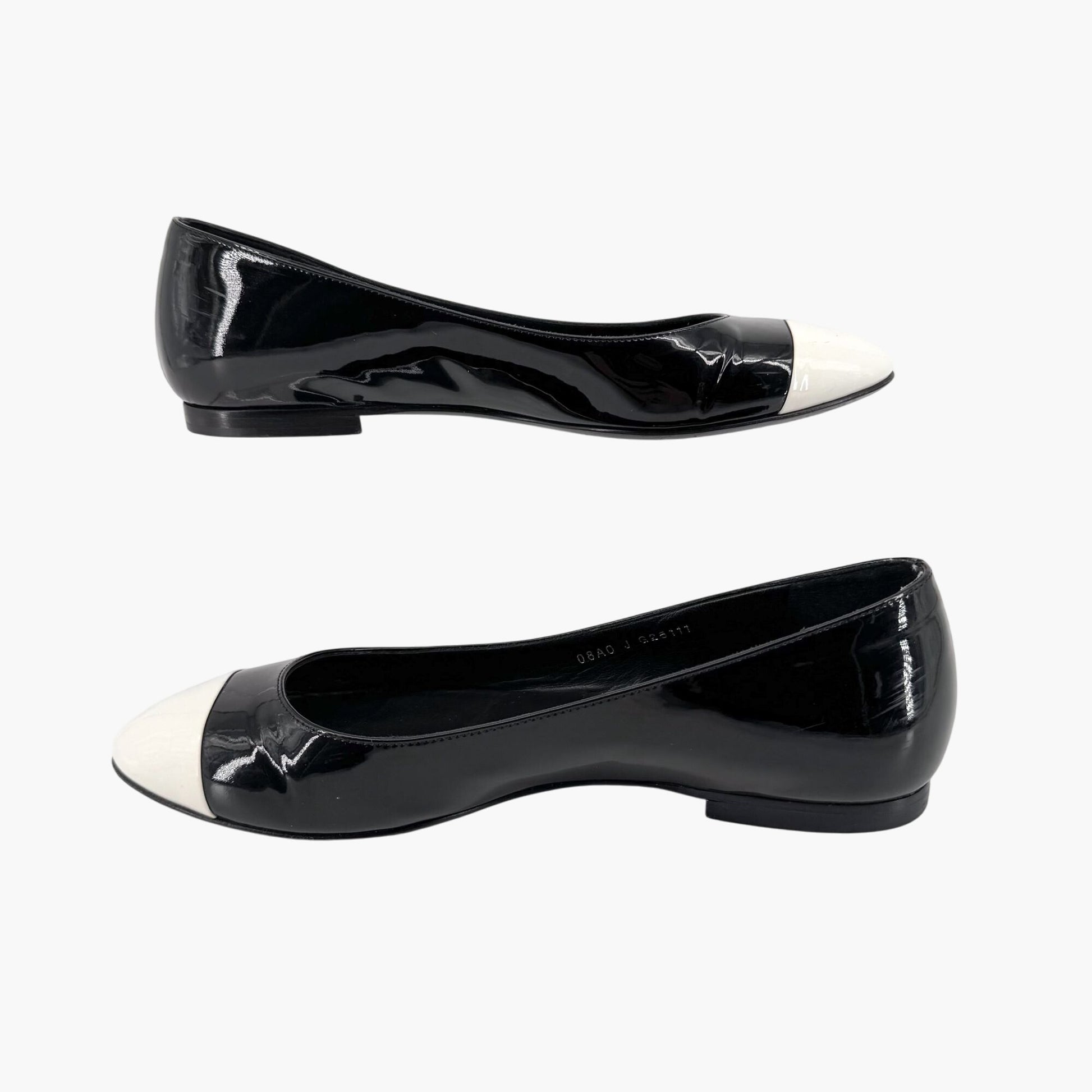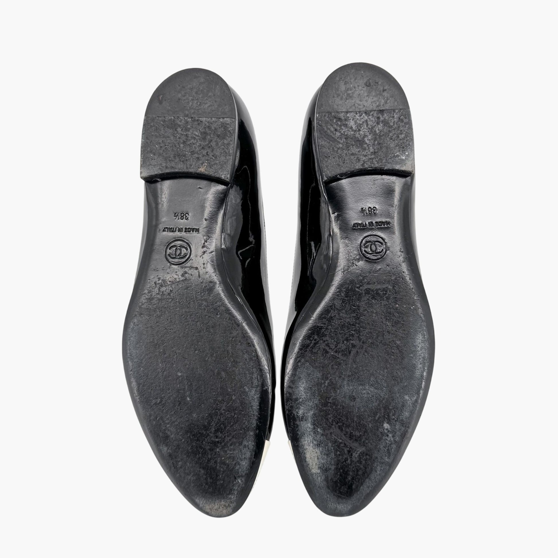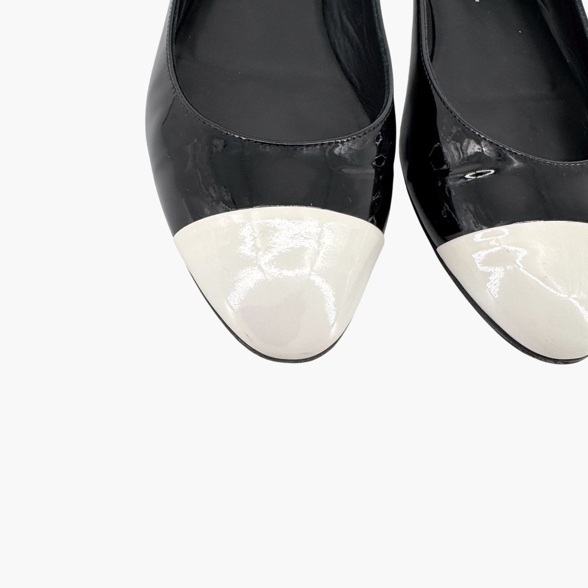 Chanel Cap Toe CC Ballet Flats Size 38.5 US 7.5-8 Black Patent Two Tone Shoes