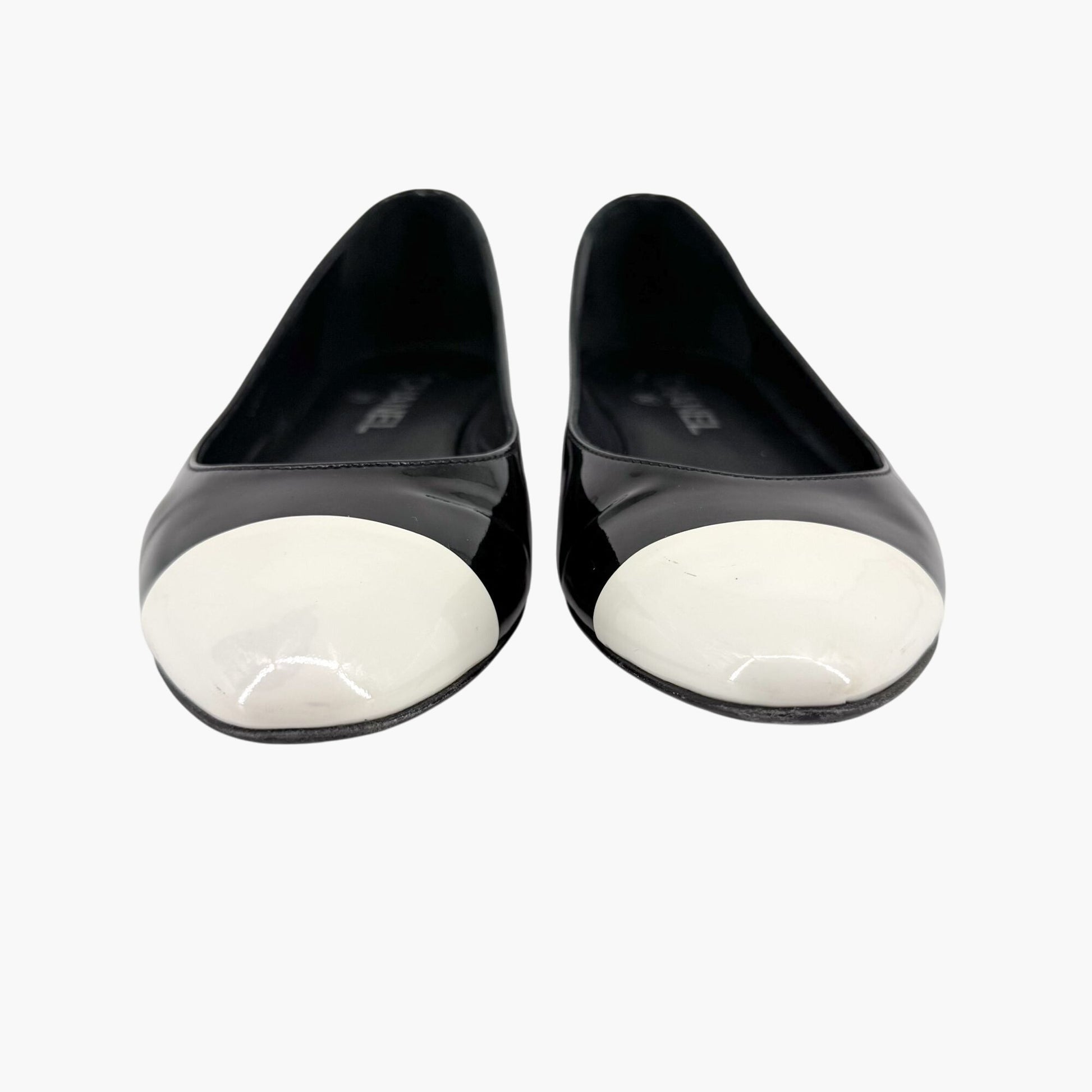 Chanel Cap Toe CC Ballet Flats in Black Patent Leather Size 38.5