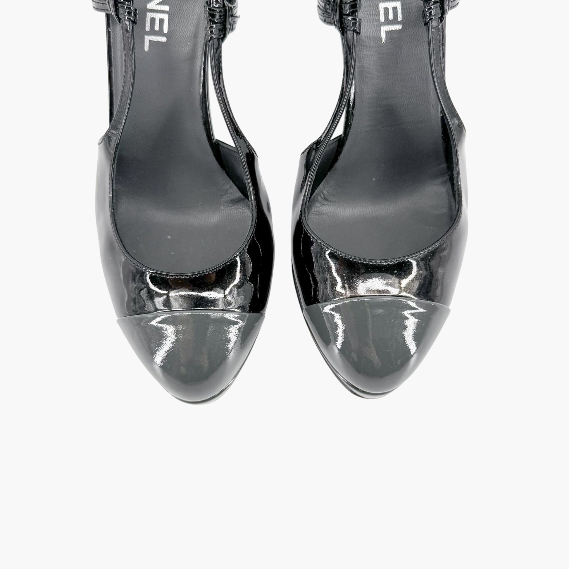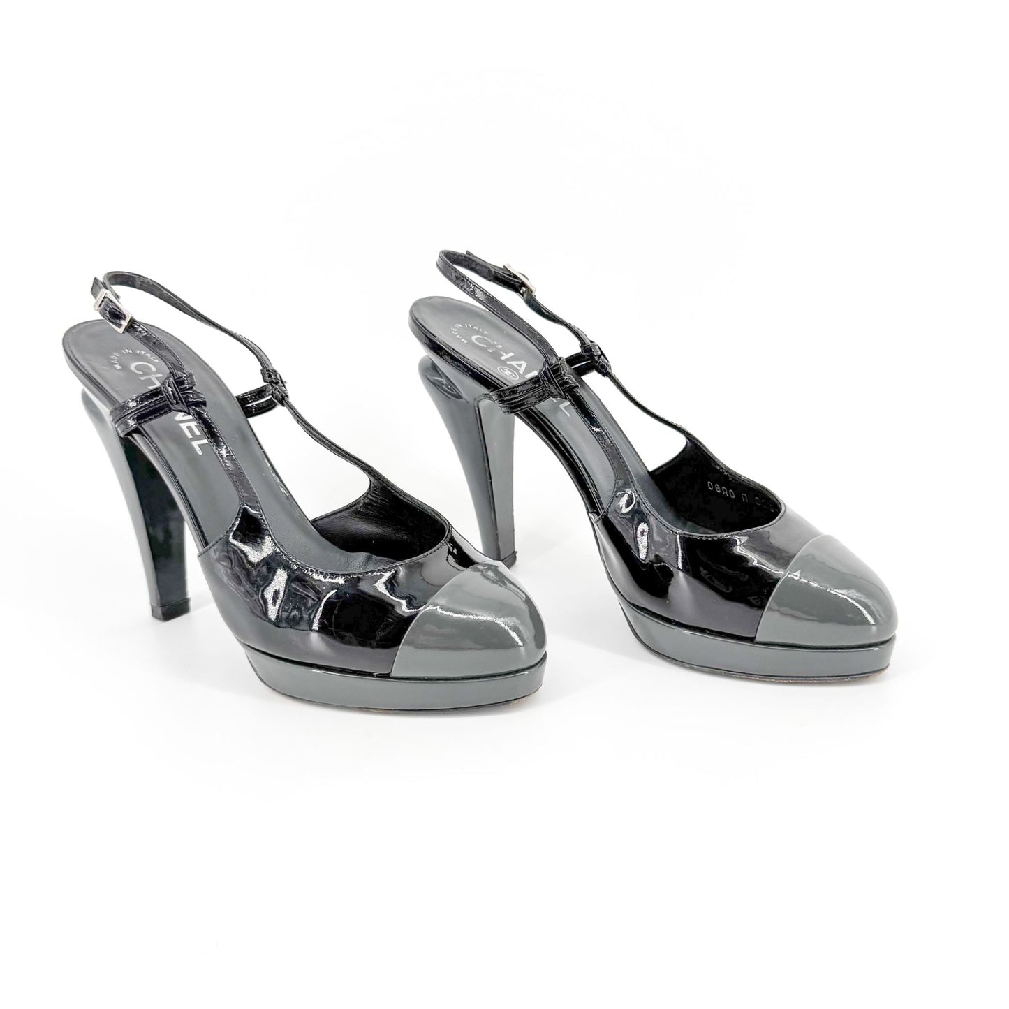 Chanel Cap Toe Slingback Pumps in Black & Gray Patent Leather
