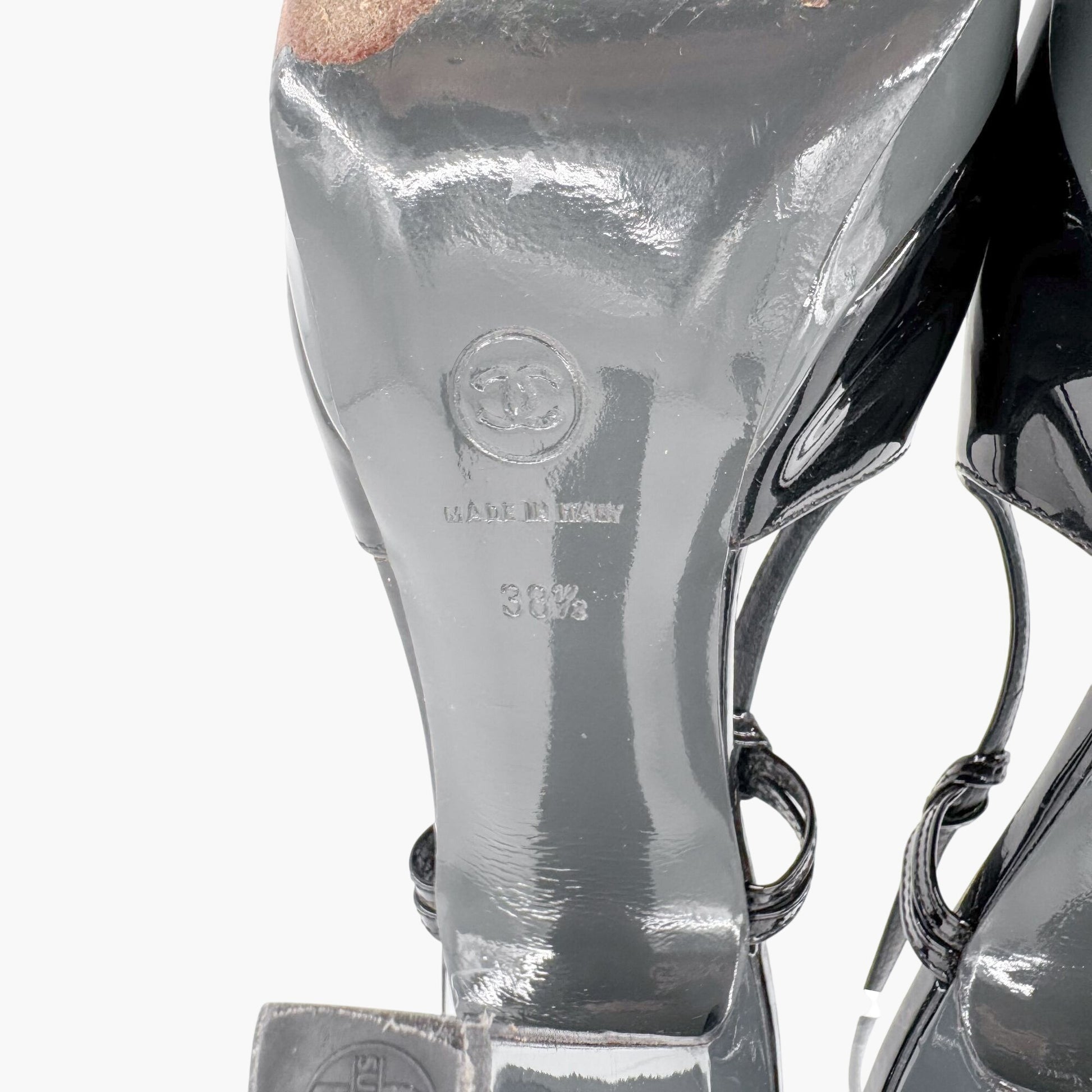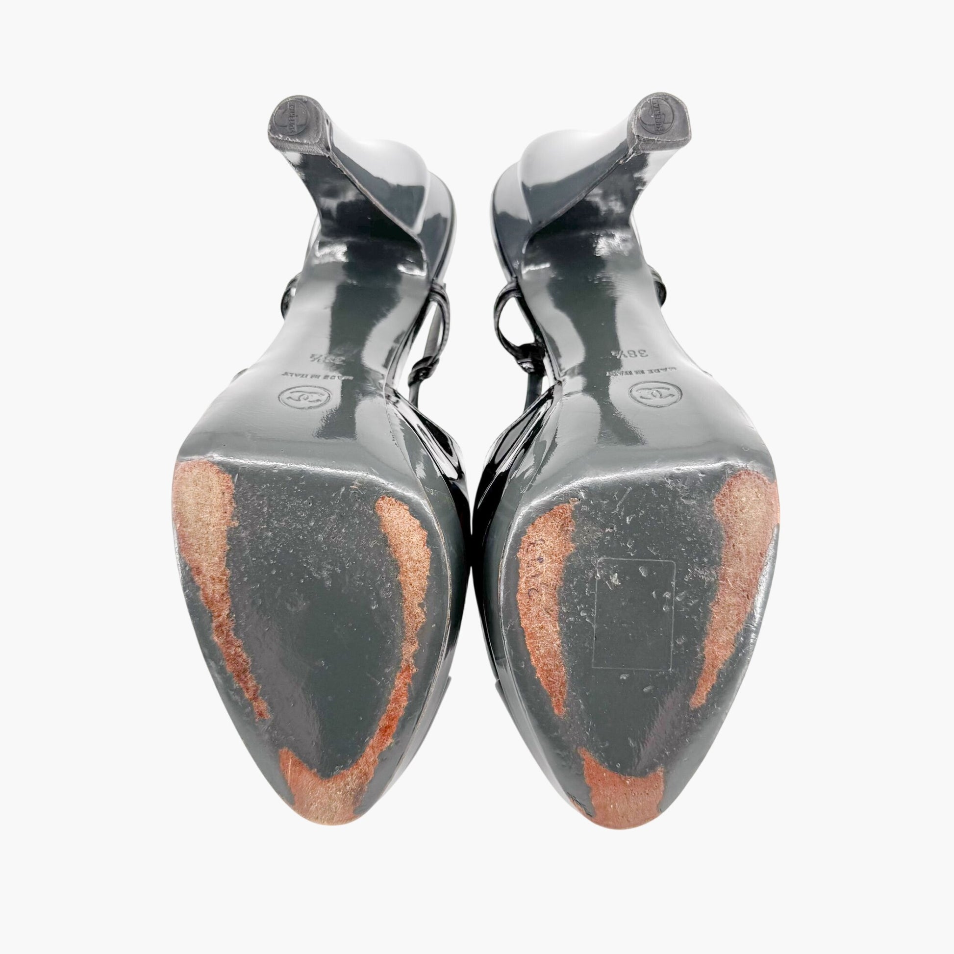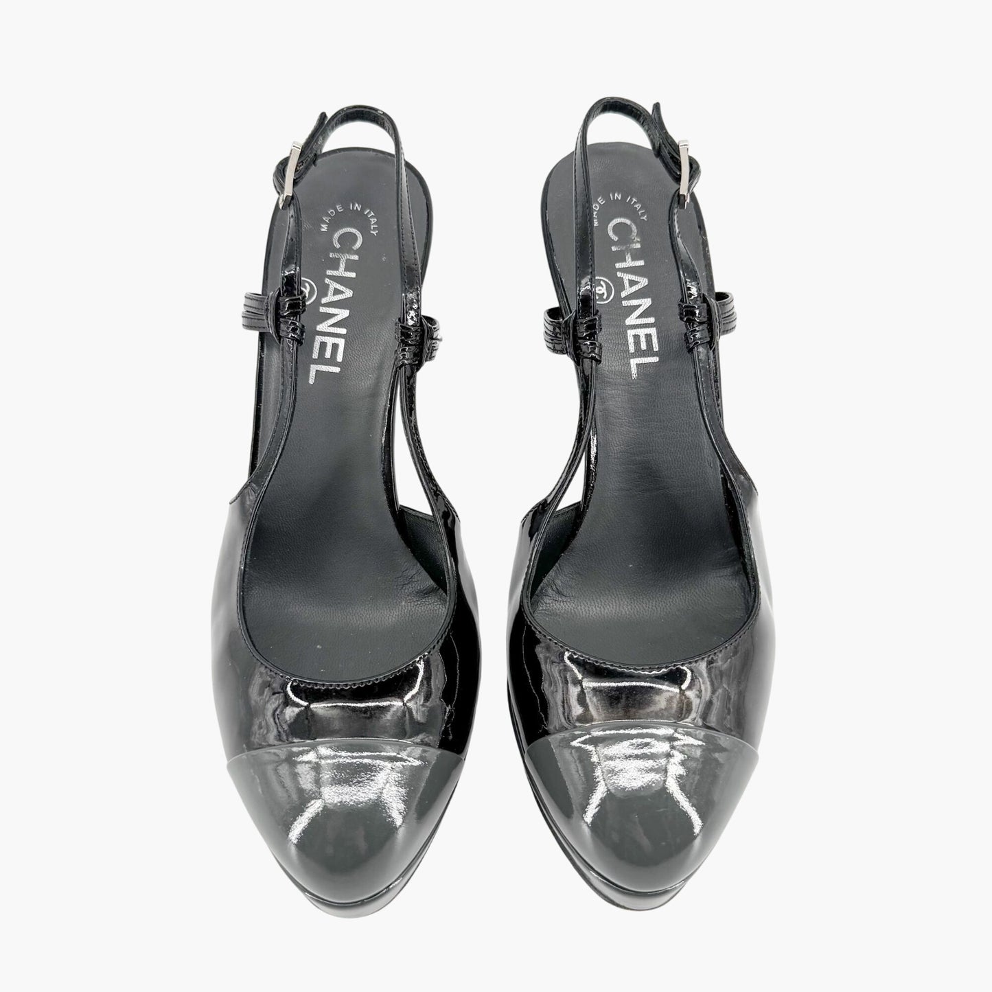 Chanel Cap Toe Slingback Pump Size 38.5 US 7.5-8 Black Patent Platform High Heel
