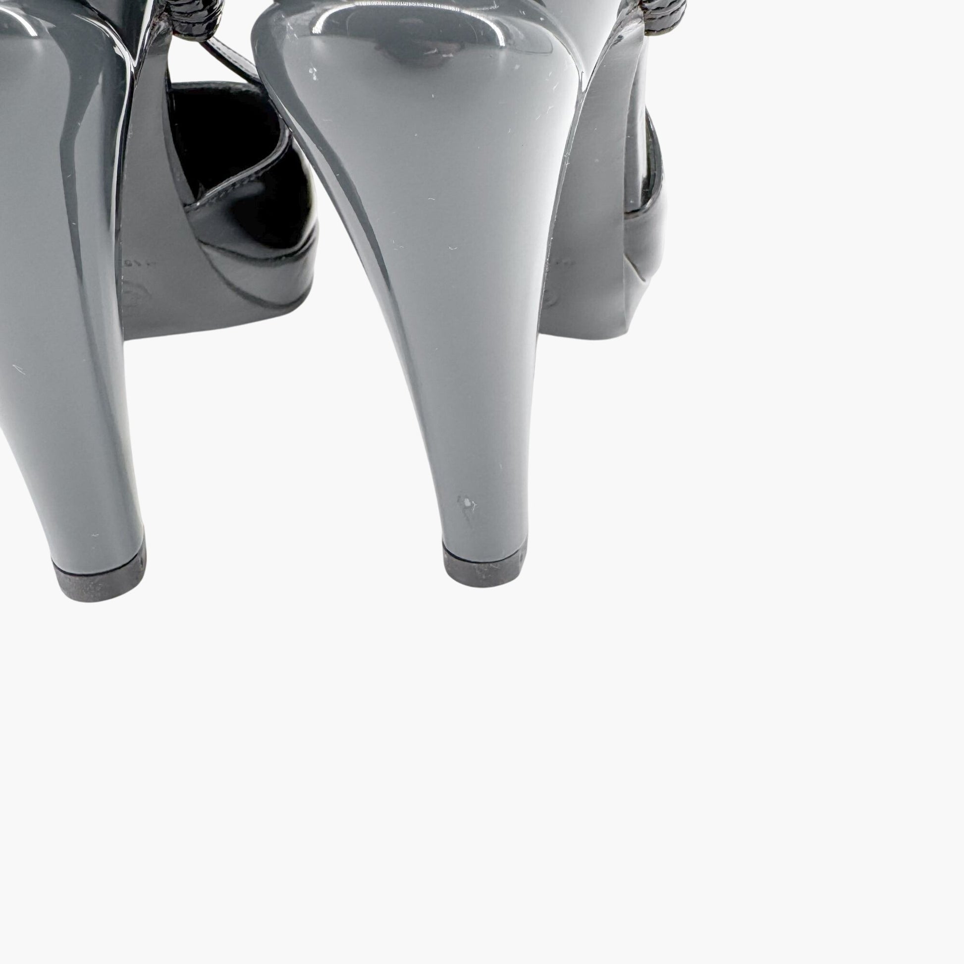 Chanel Cap Toe Slingback Pumps in Black & Gray Patent Leather Size 38.5