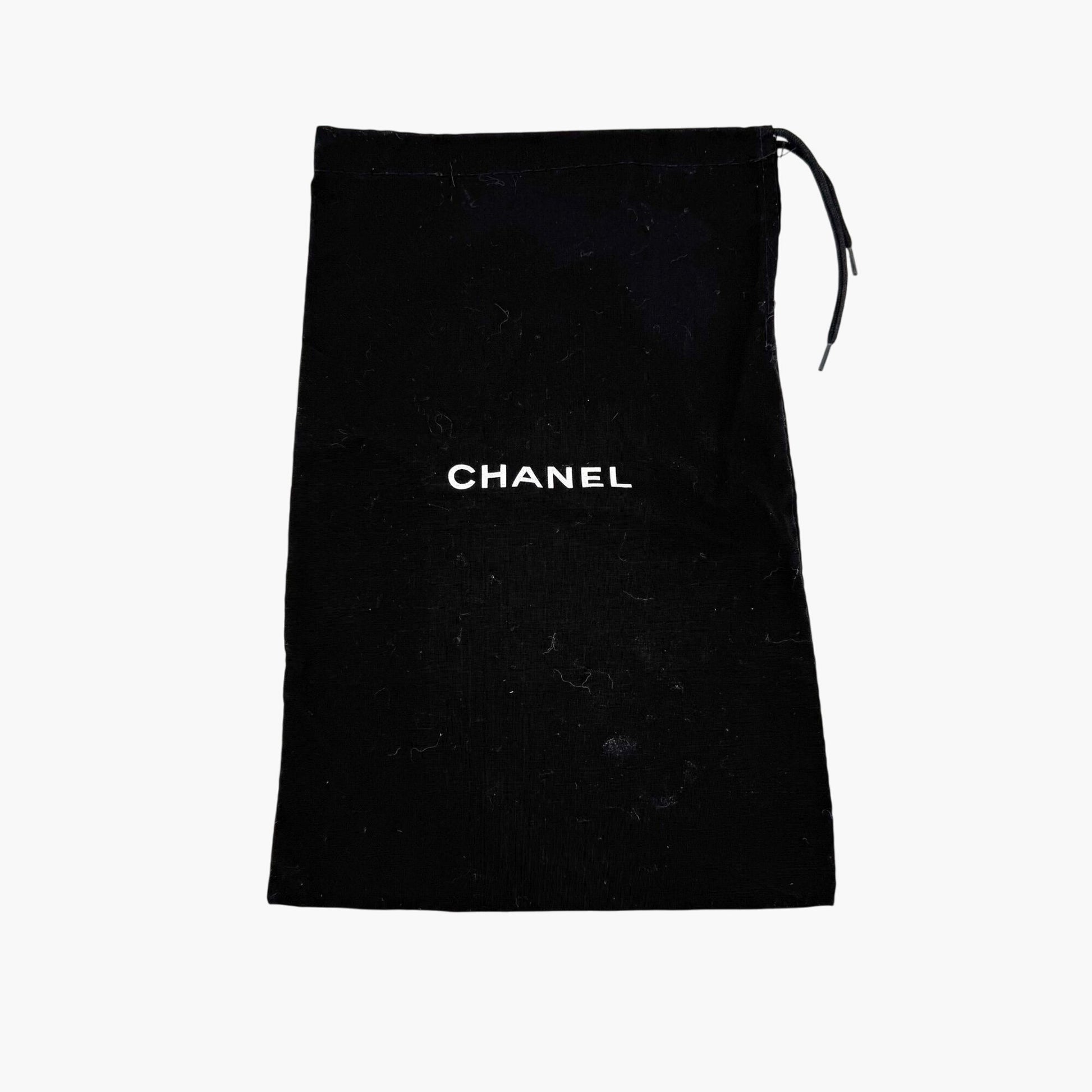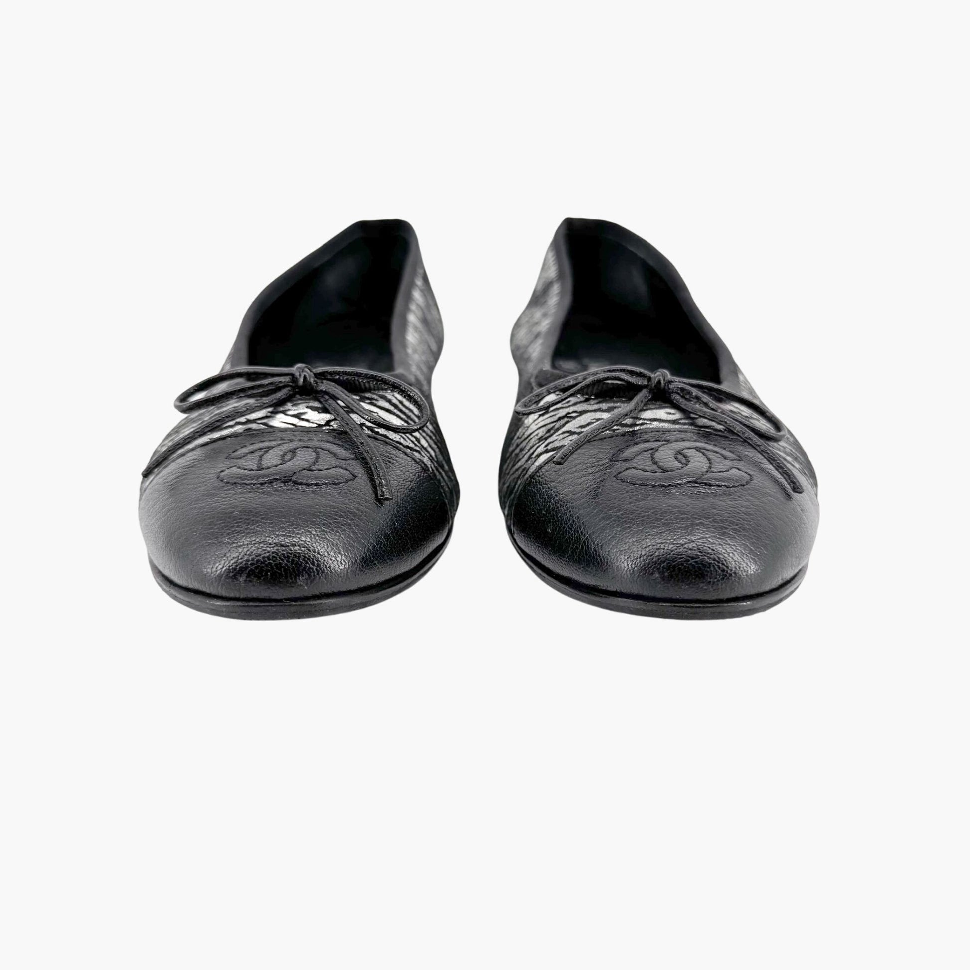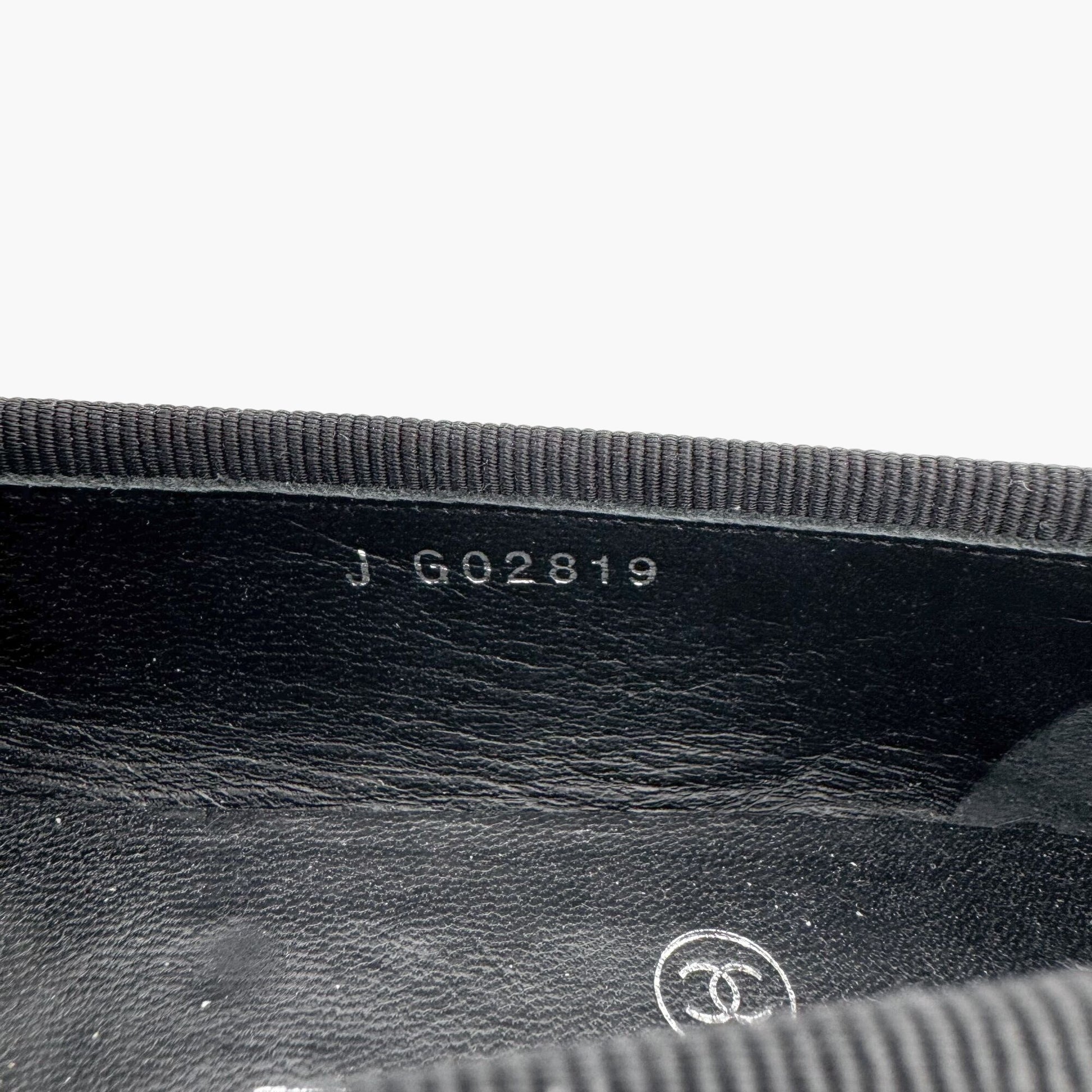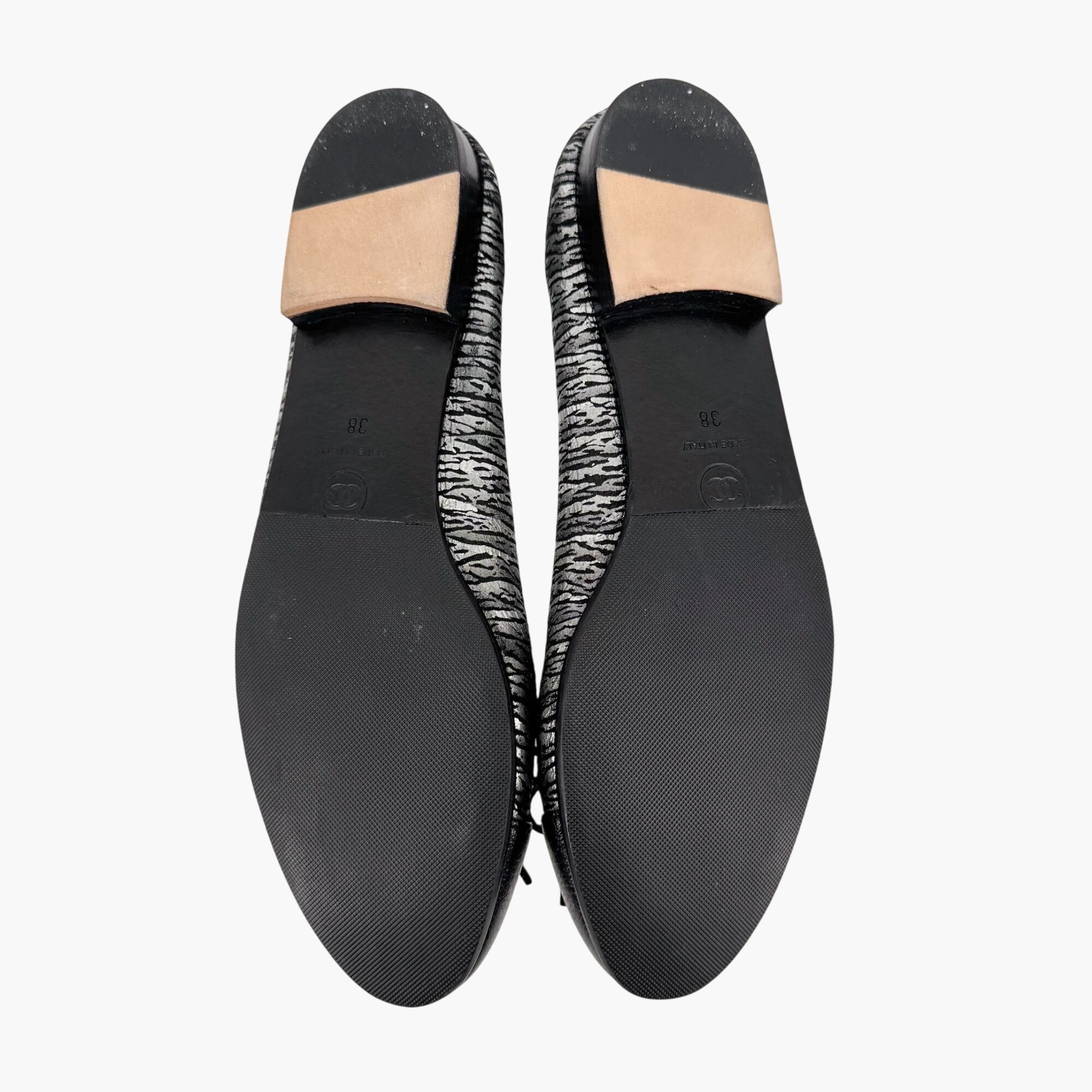 Chanel CC Cap Toe Ballet Flats Size 38 US 7-7.5 Black Silver Metallic Logo Bow