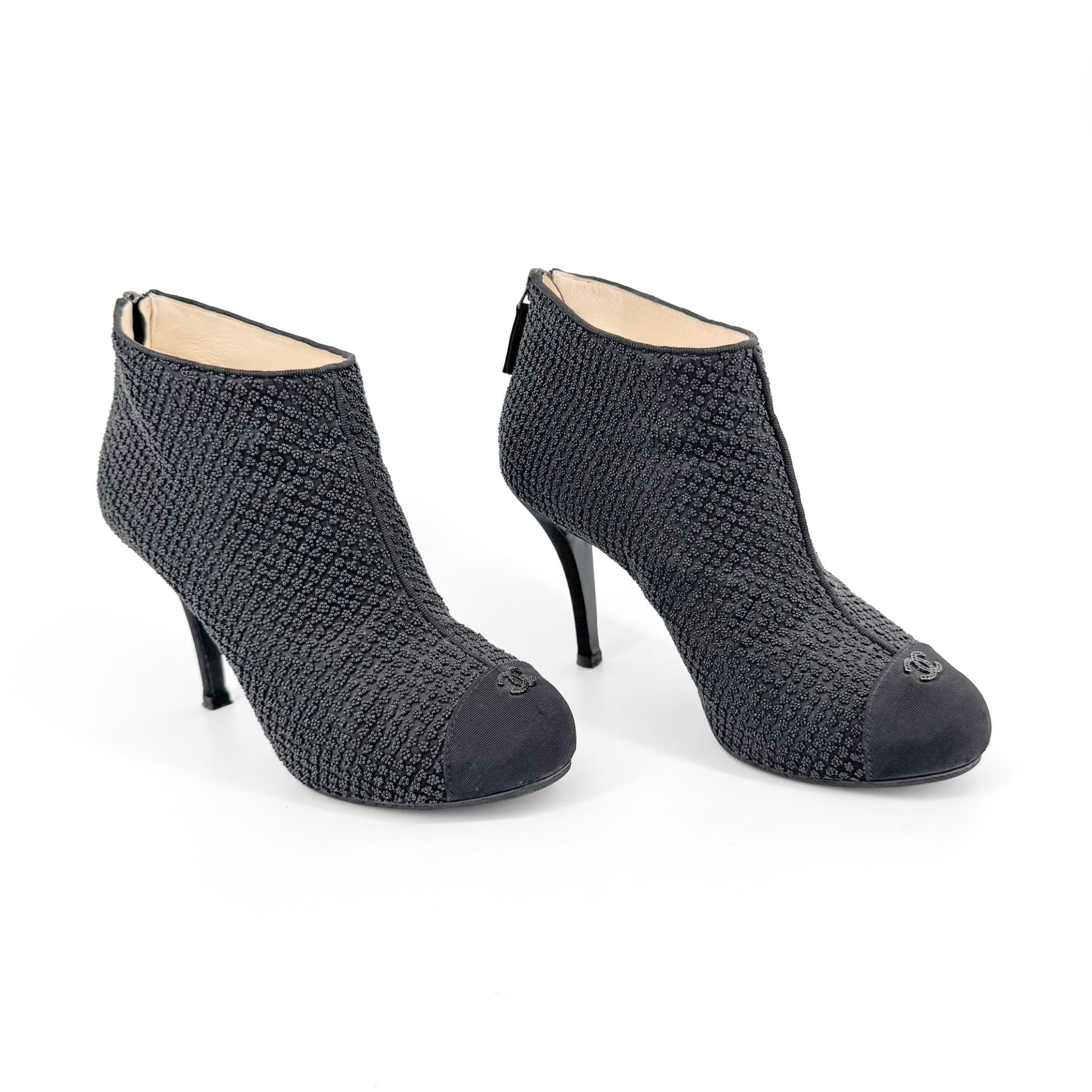 Chanel CC Cap Toe Beaded Ankle Booties in Black