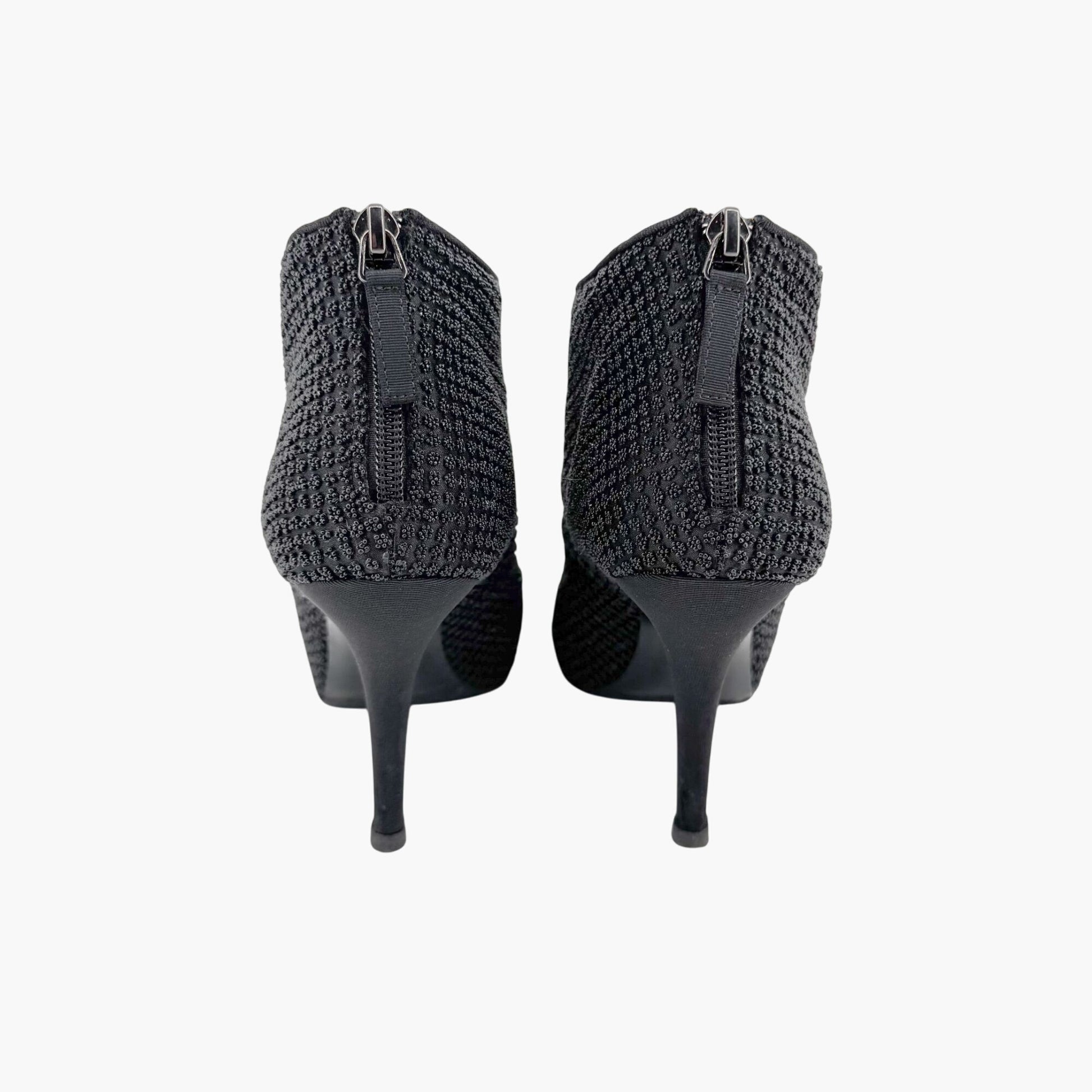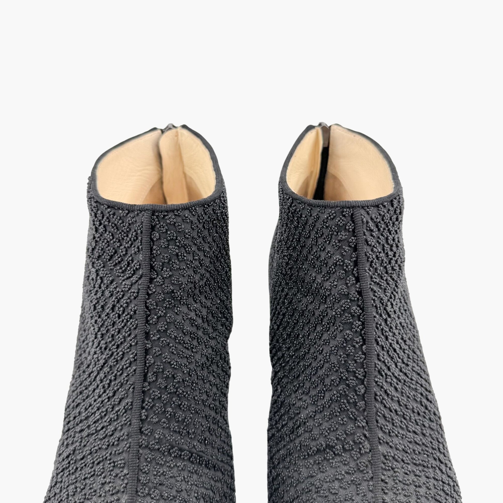 These Chanel CC cap toe booties deliver dramatic evening glamour with intricate texture. The ankle-high silhouette features a bead-embellished black fabric upper, finished with a crystal-encrusted CC logo on the round cap toe for a refined yet eye-catching detail. A low hidden platform pairs with the high curved stiletto heel to provide extra lift and balance, making these ideal for dressy occasions, holiday parties, or elevating a sleek monochrome look. Comes with the original box and two dust bags.