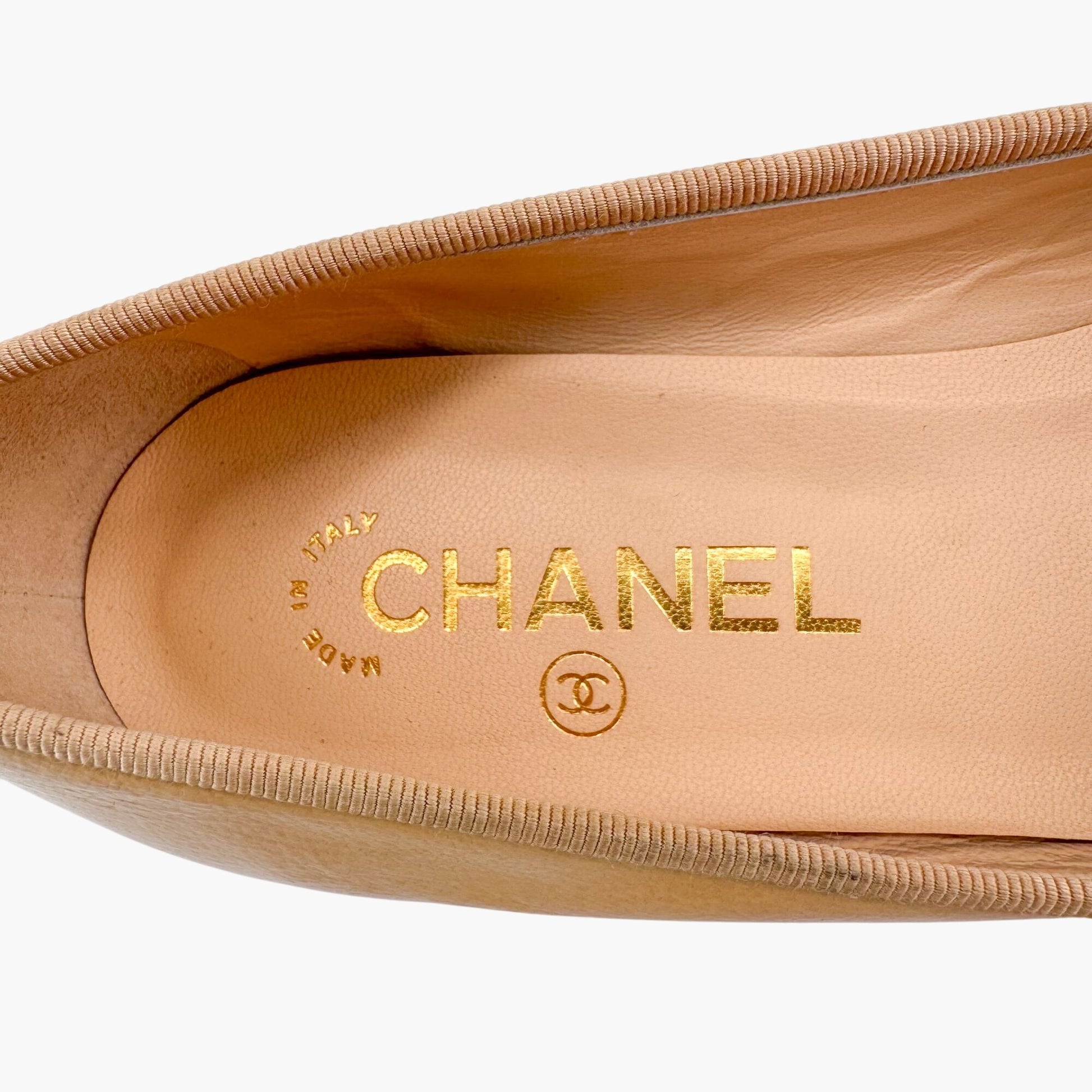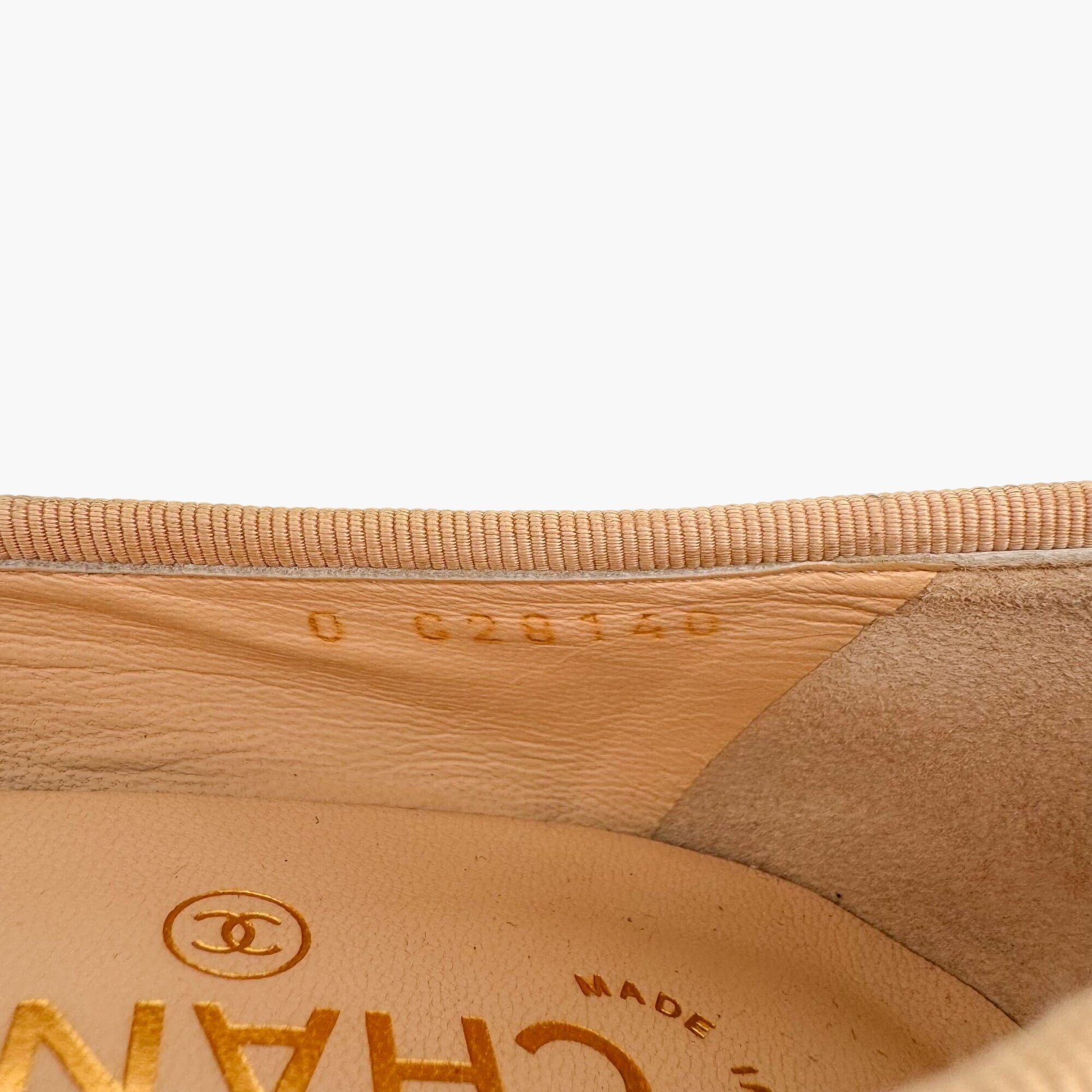 Chanel Beige CC Cap Toe Kitten Pumps Size 39.5 US 8.5-9 Two Tone Low Heel Bow