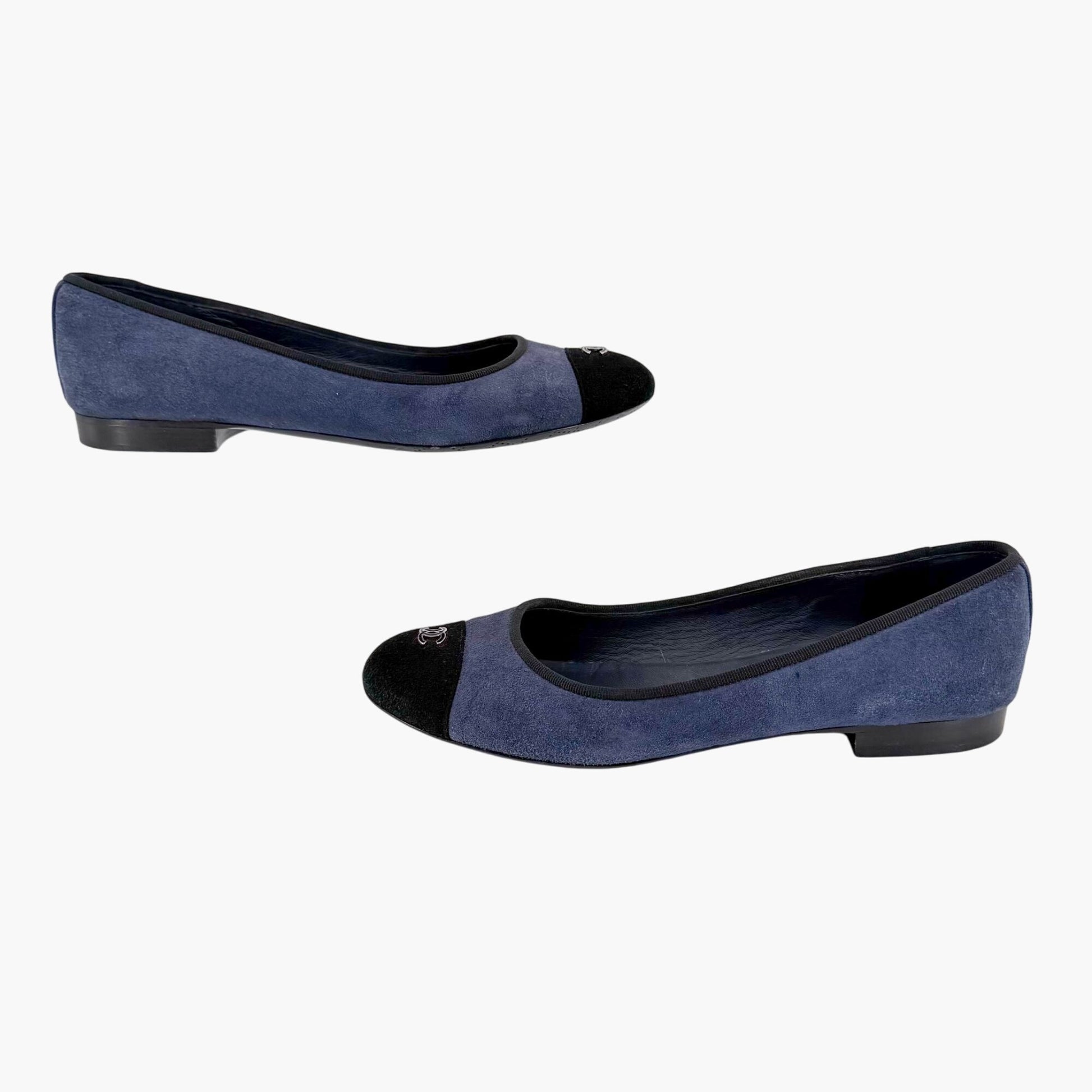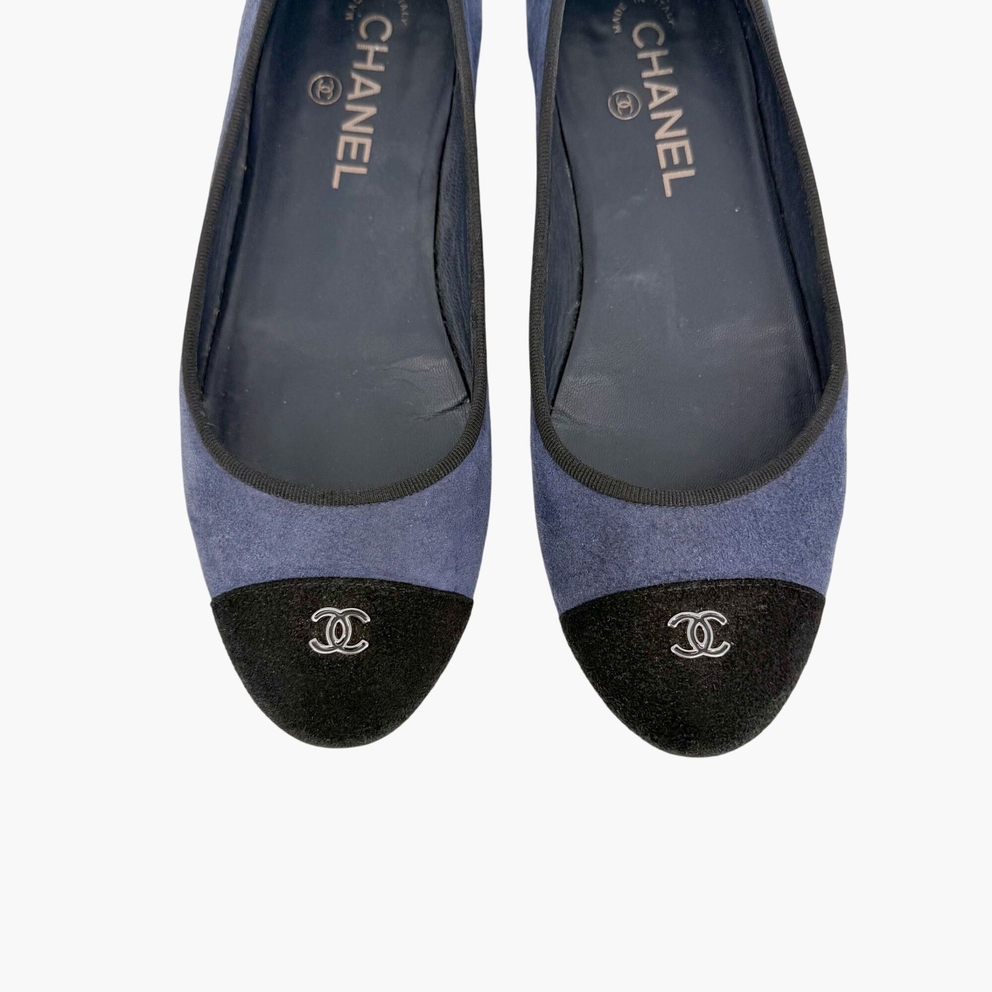 Chanel CC Cap Toe Suede Ballet Flats Blue Size 38.5