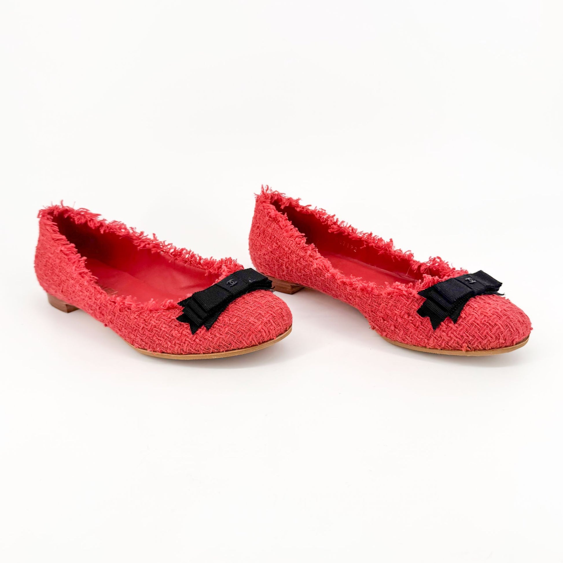 Chanel Chanel CC Bow Ballet Flats in Red Tweed