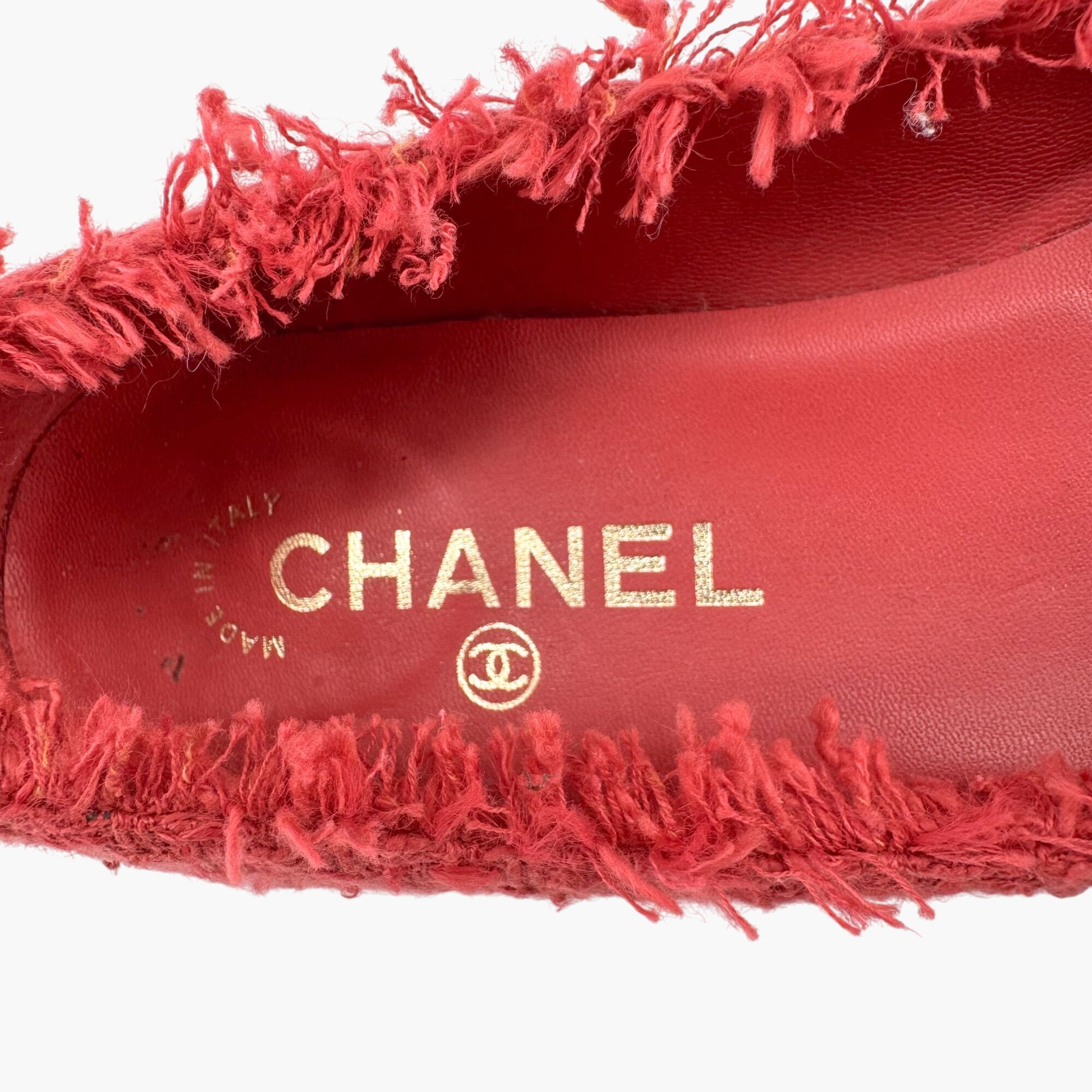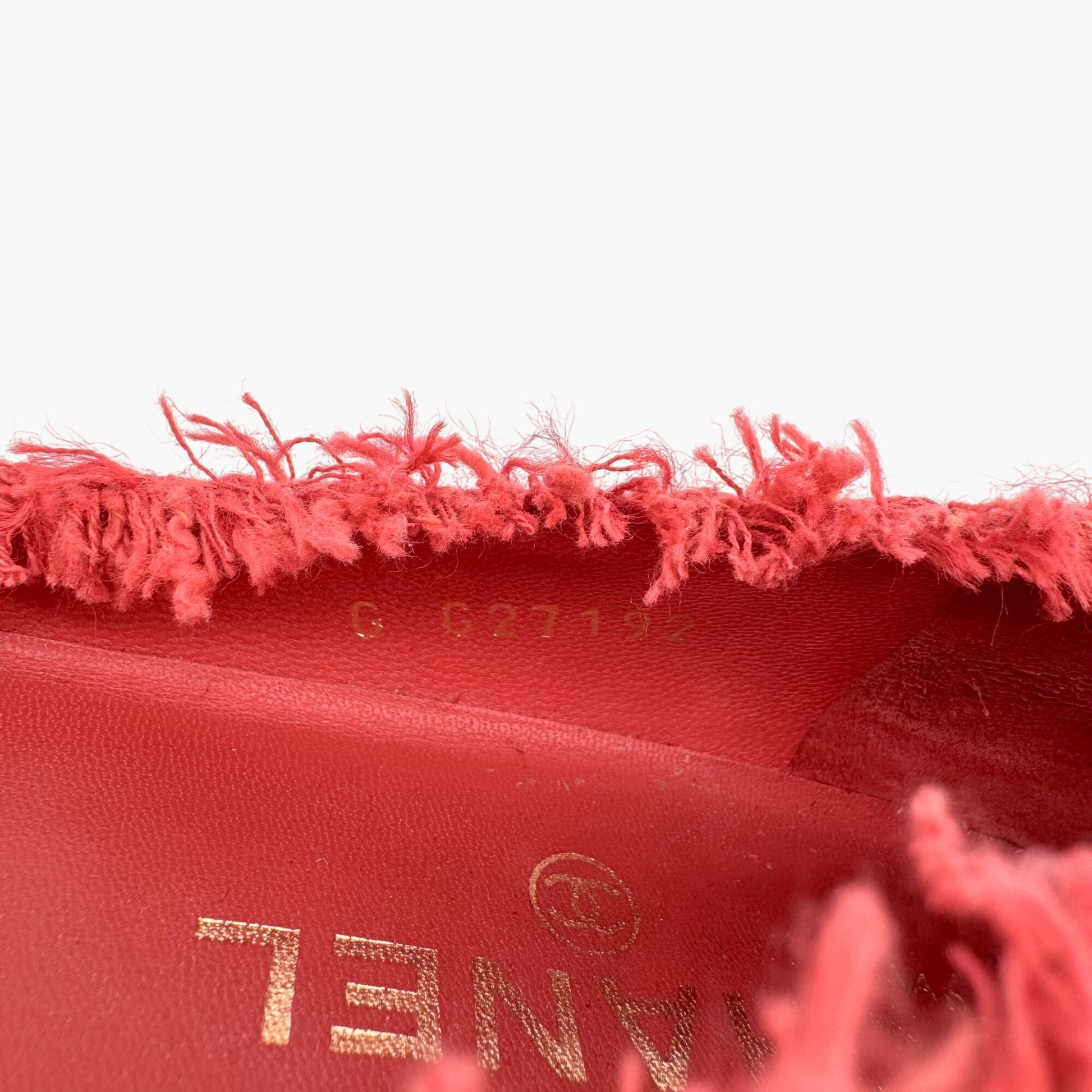 Chanel CC Bow Ballet Flats Size 37 US 6-6.5 Red Tweed Fringe Logo Slip On Shoe