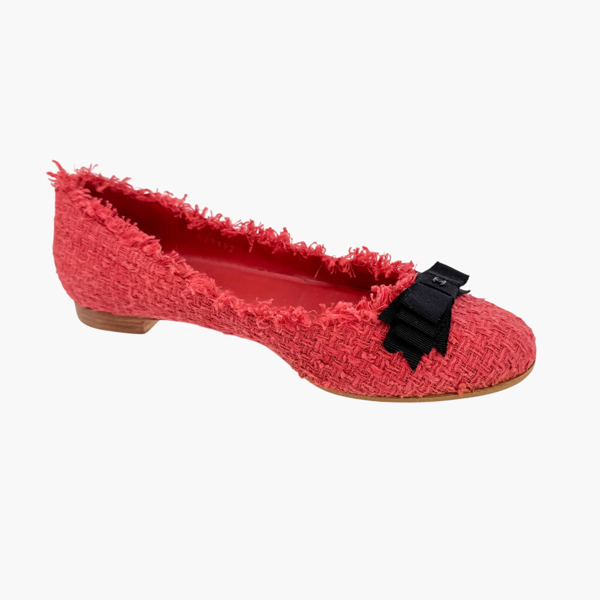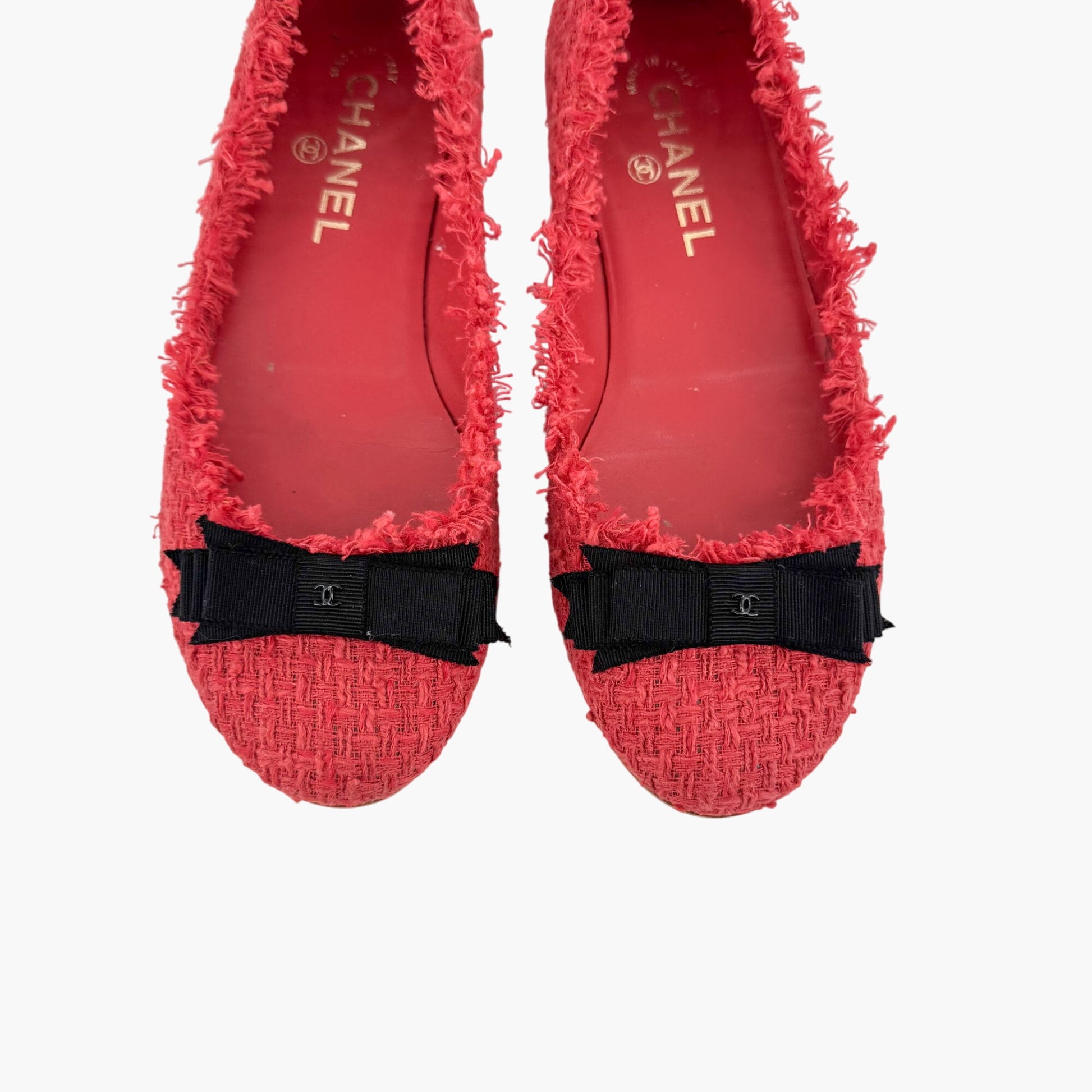Chanel Chanel CC Bow Ballet Flats in Red Tweed Size 37