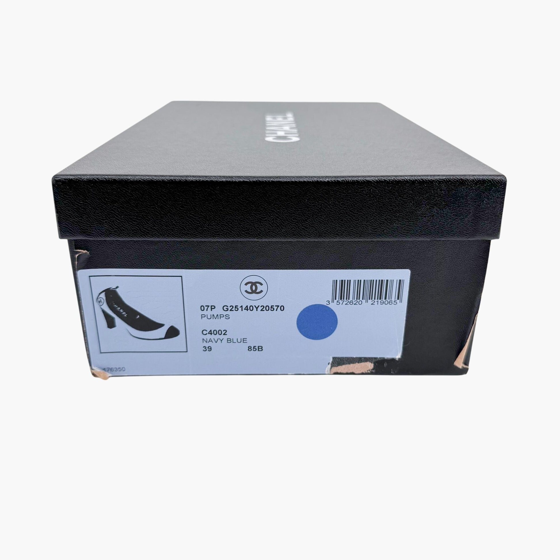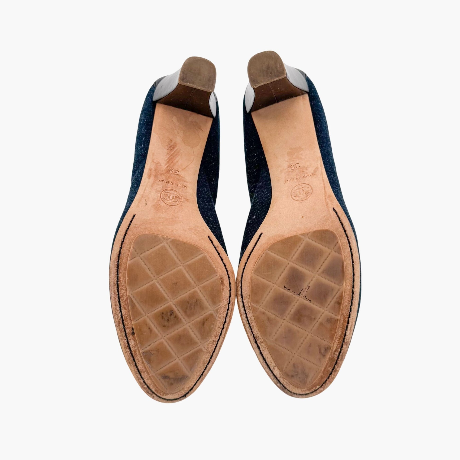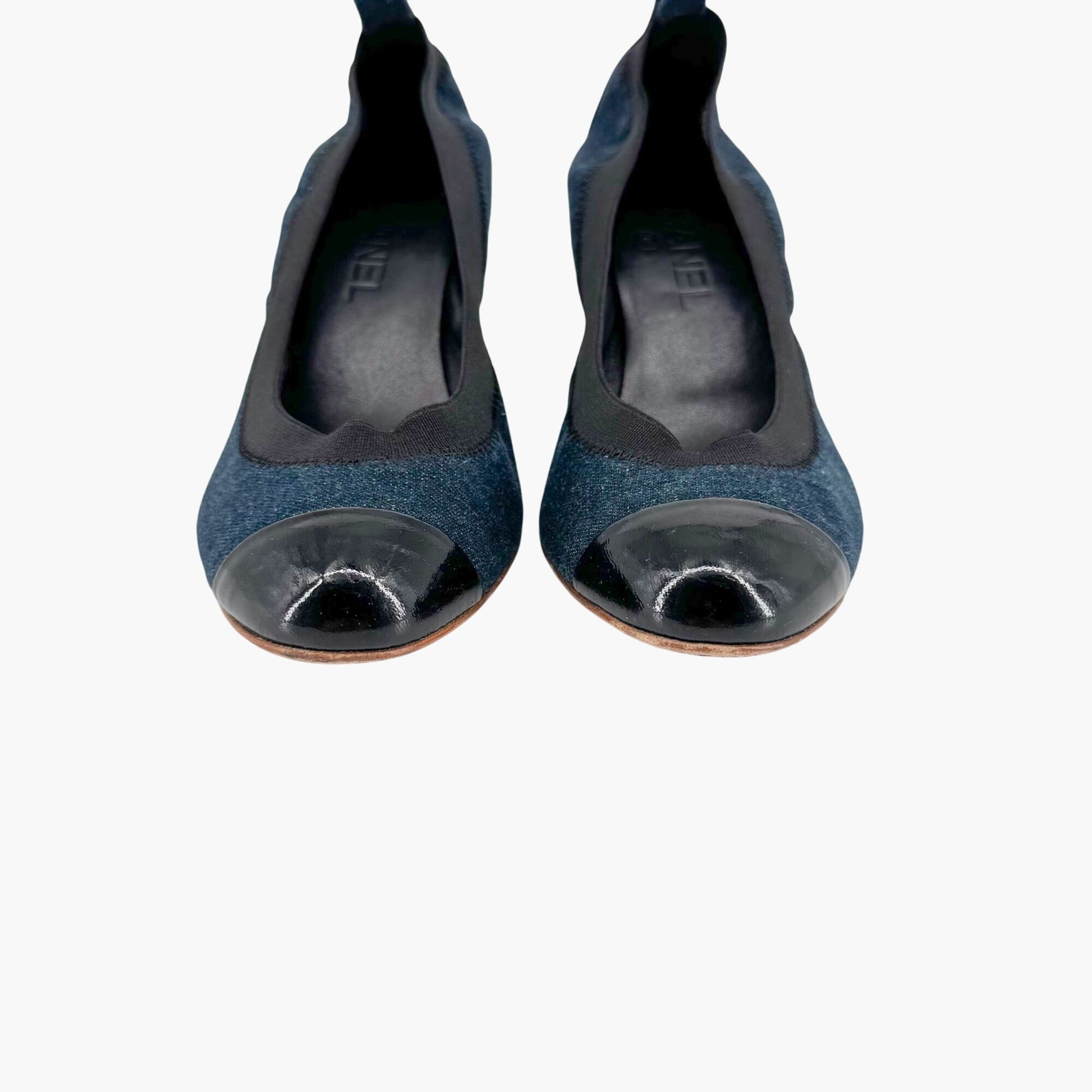 Chanel Elastic CC Cap Toe Pumps in Navy Denim & Patent Leather – Size 39