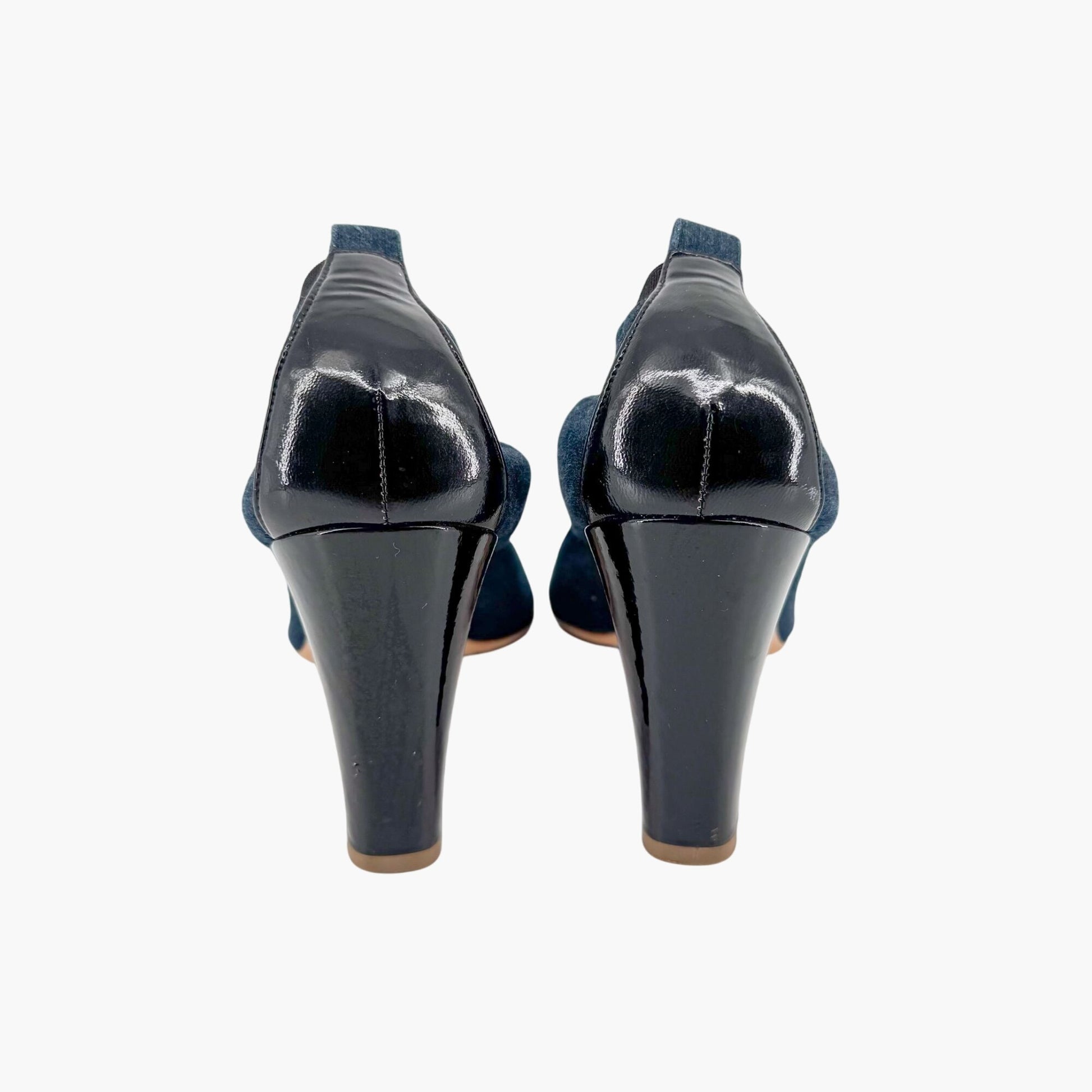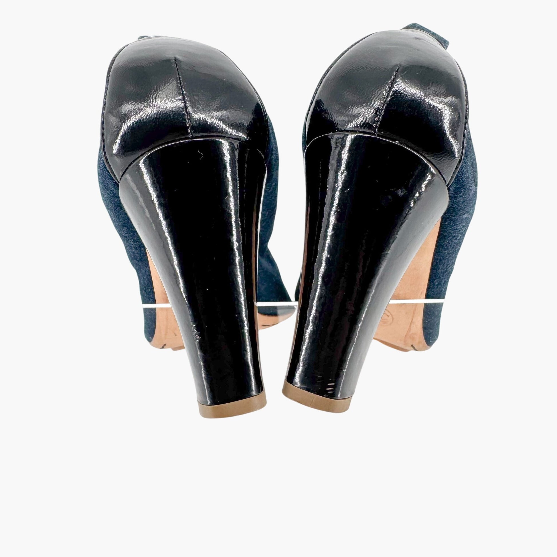 – Material: Denim fabric with patent leather toe and heel