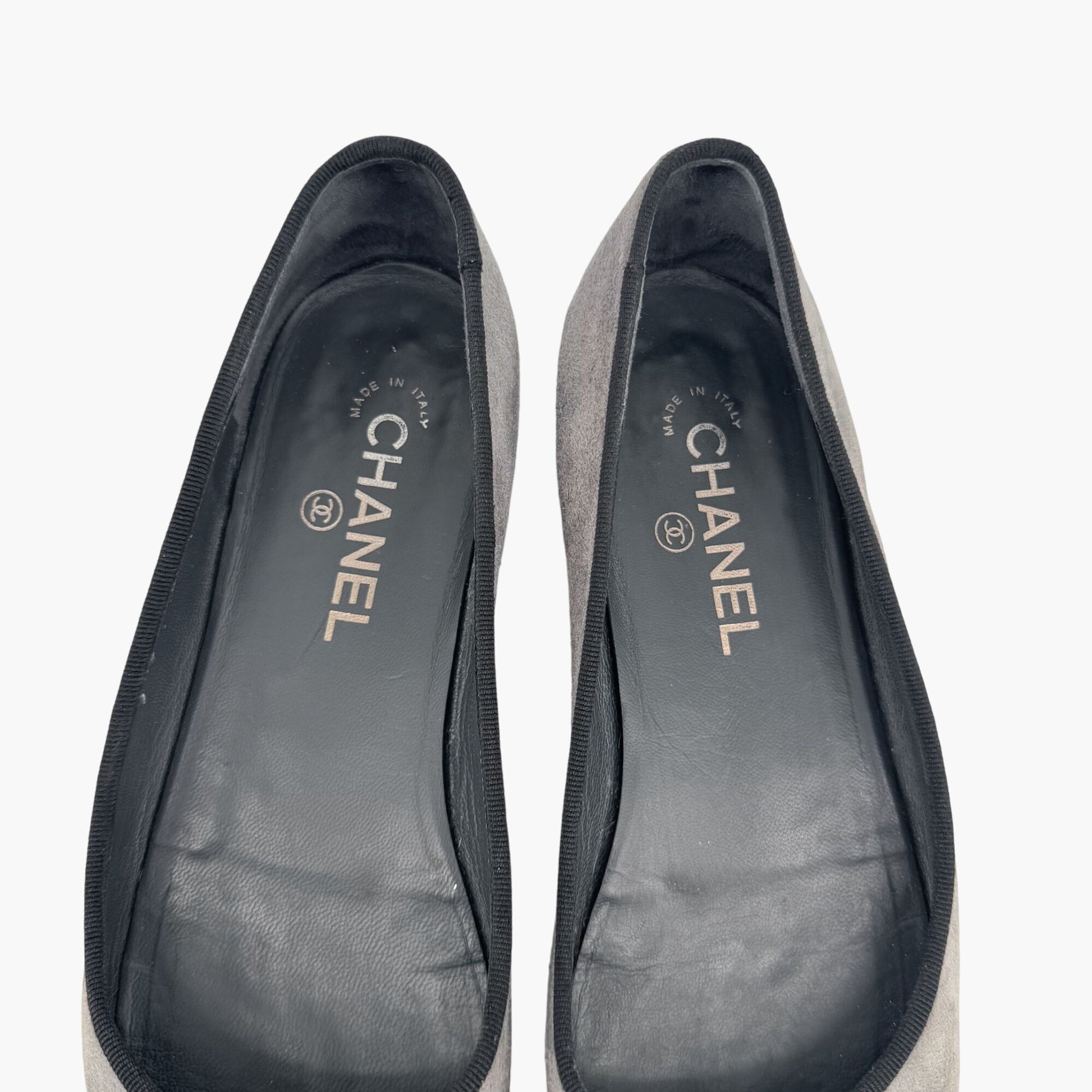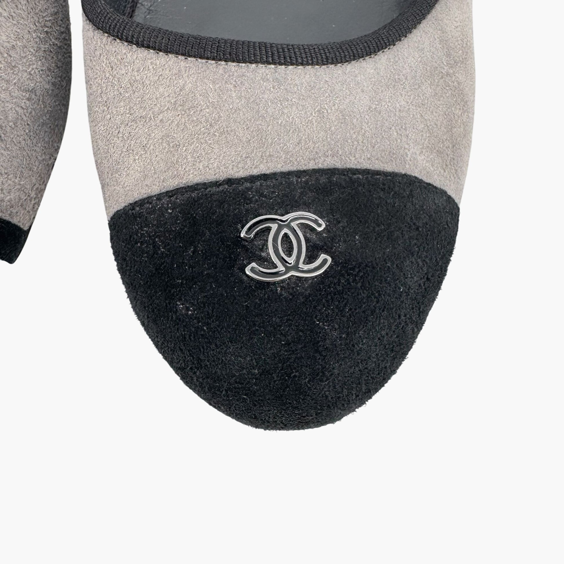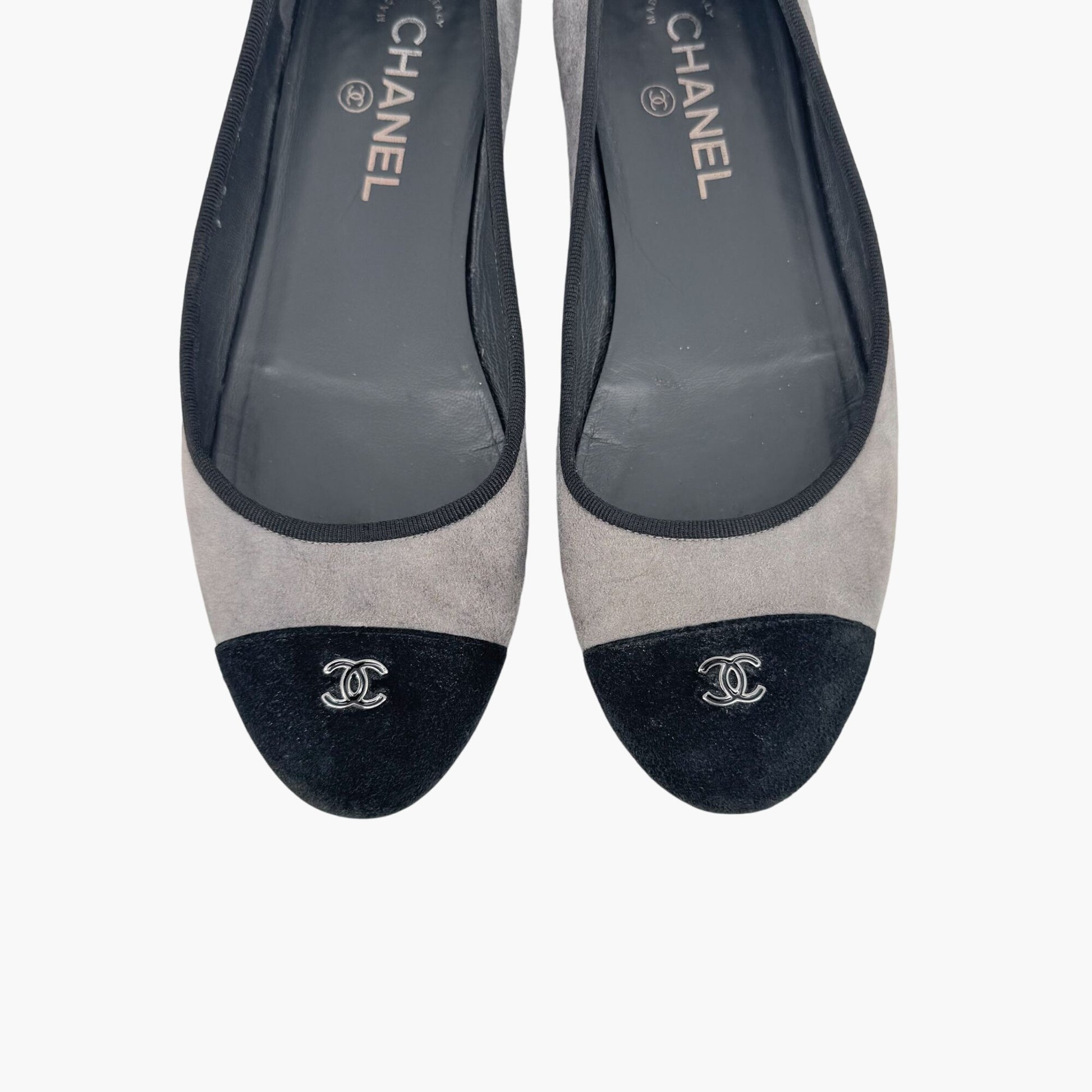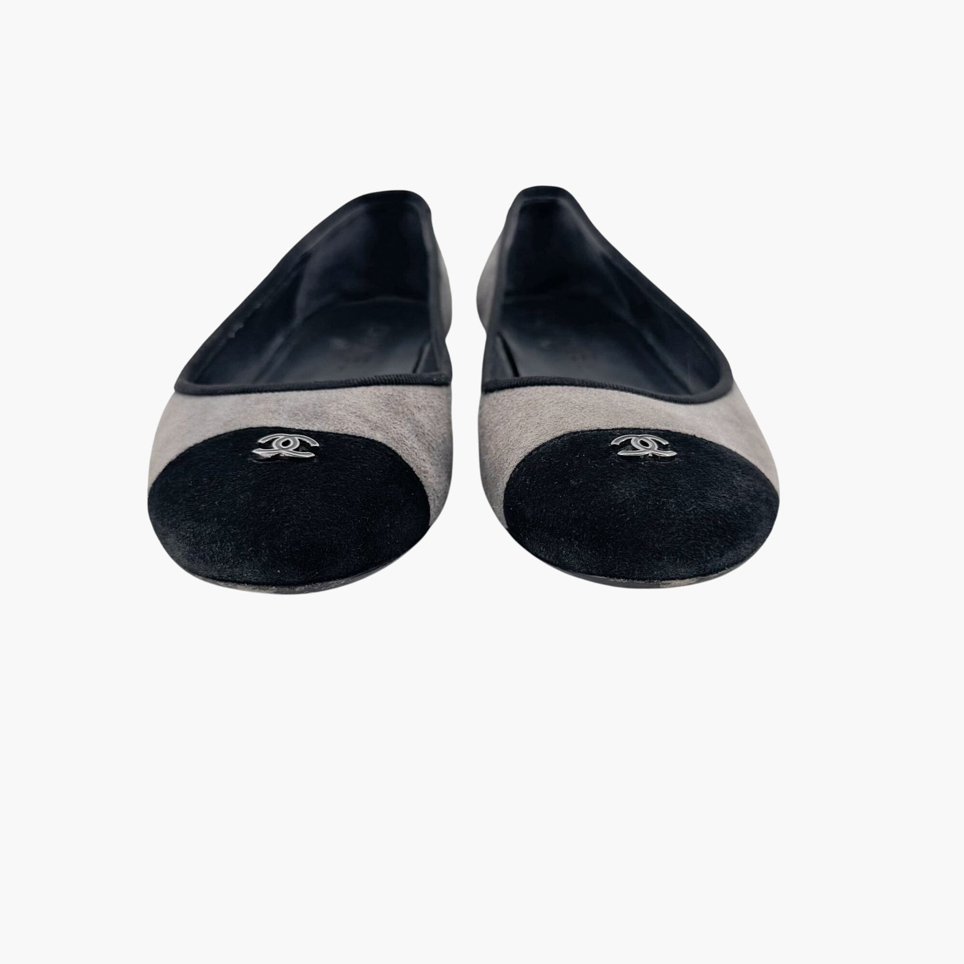 Chanel Gray Suede CC Cap Toe Ballet Flats – Size 39