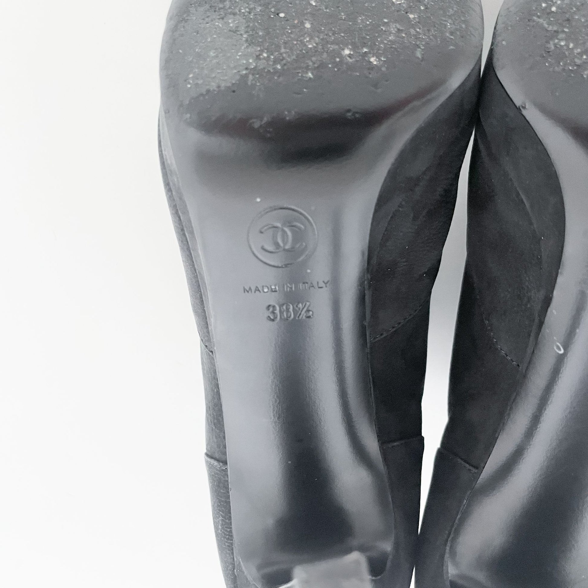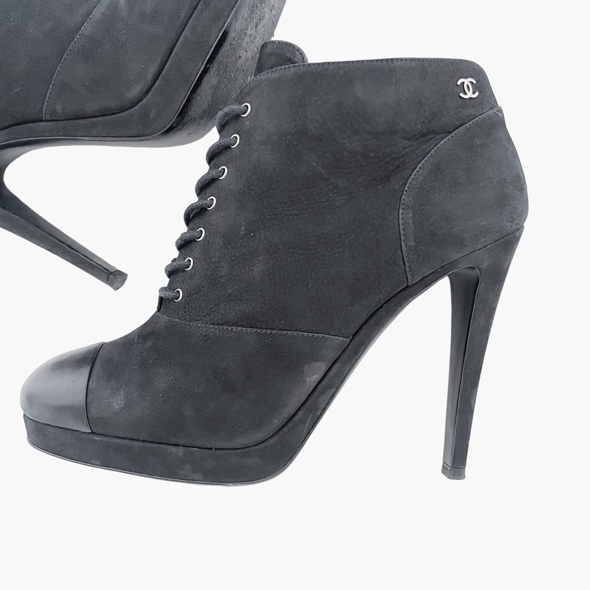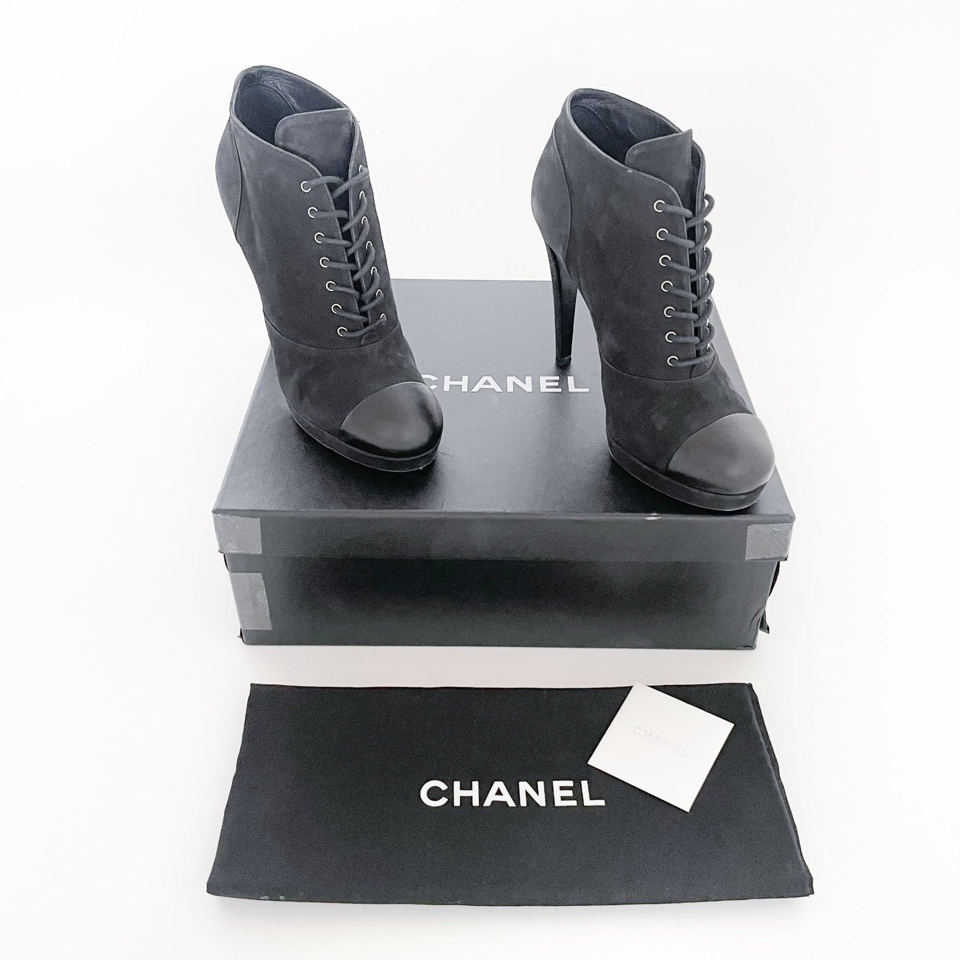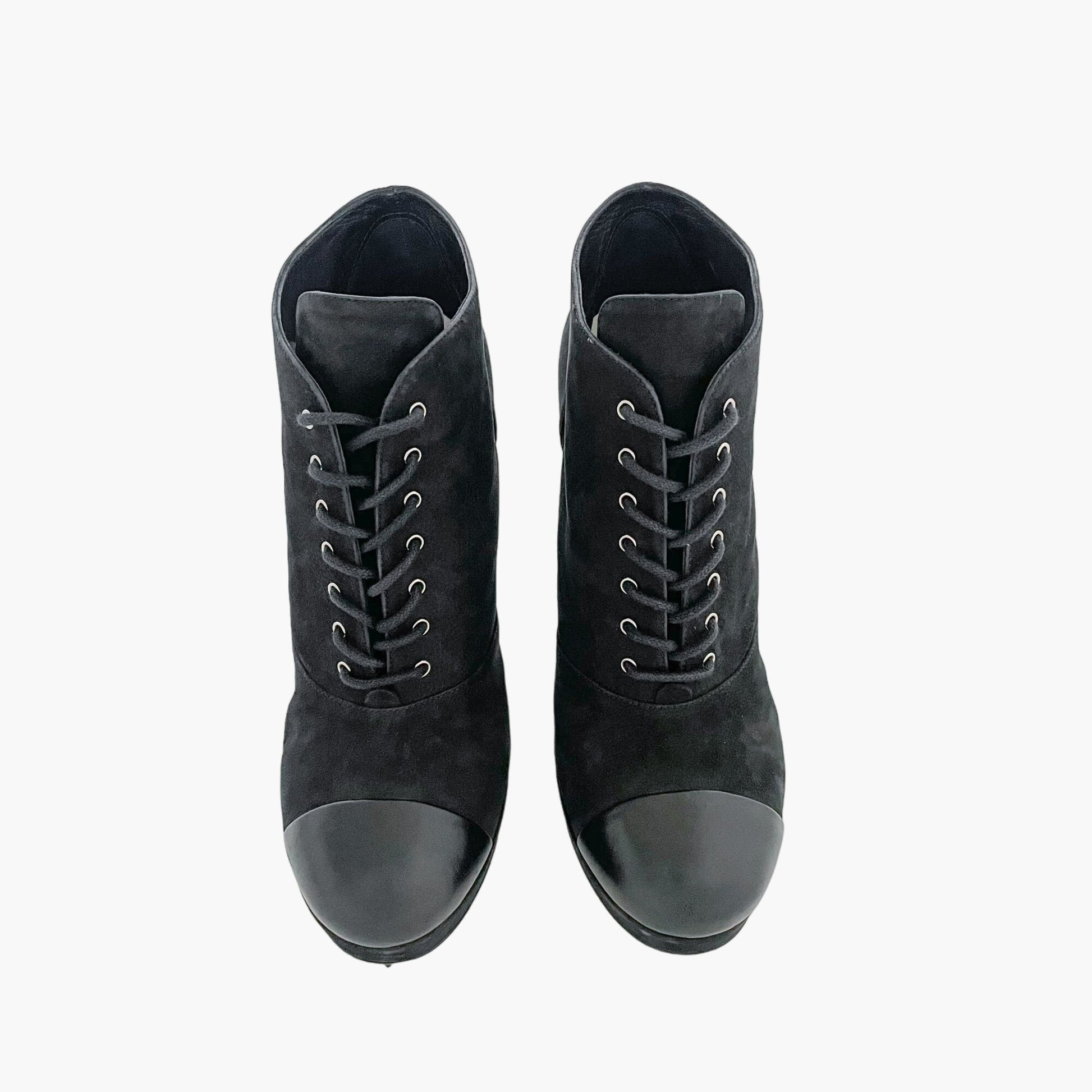 Chanel Lace-Up Ankle Booties in Black Suede Size 38.5