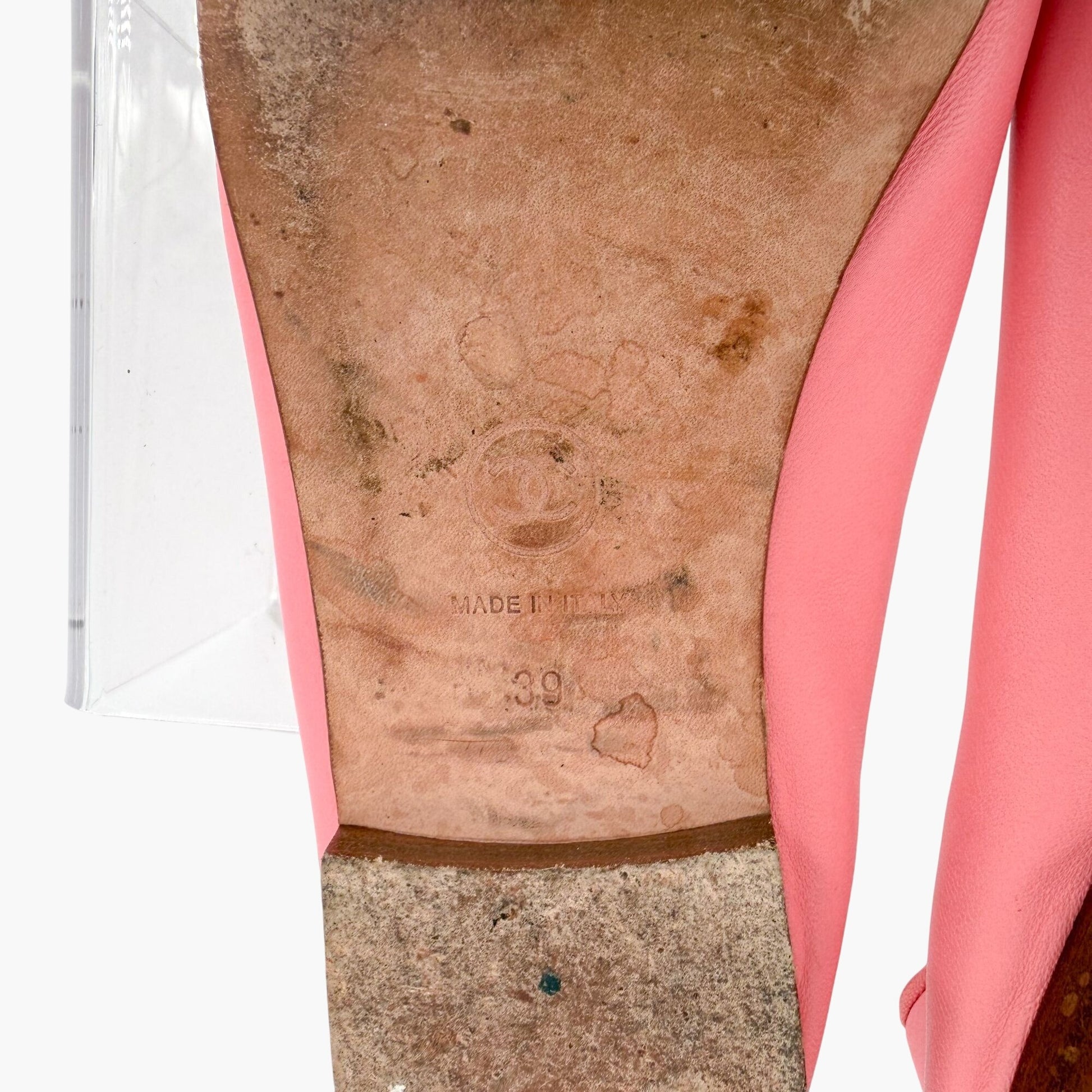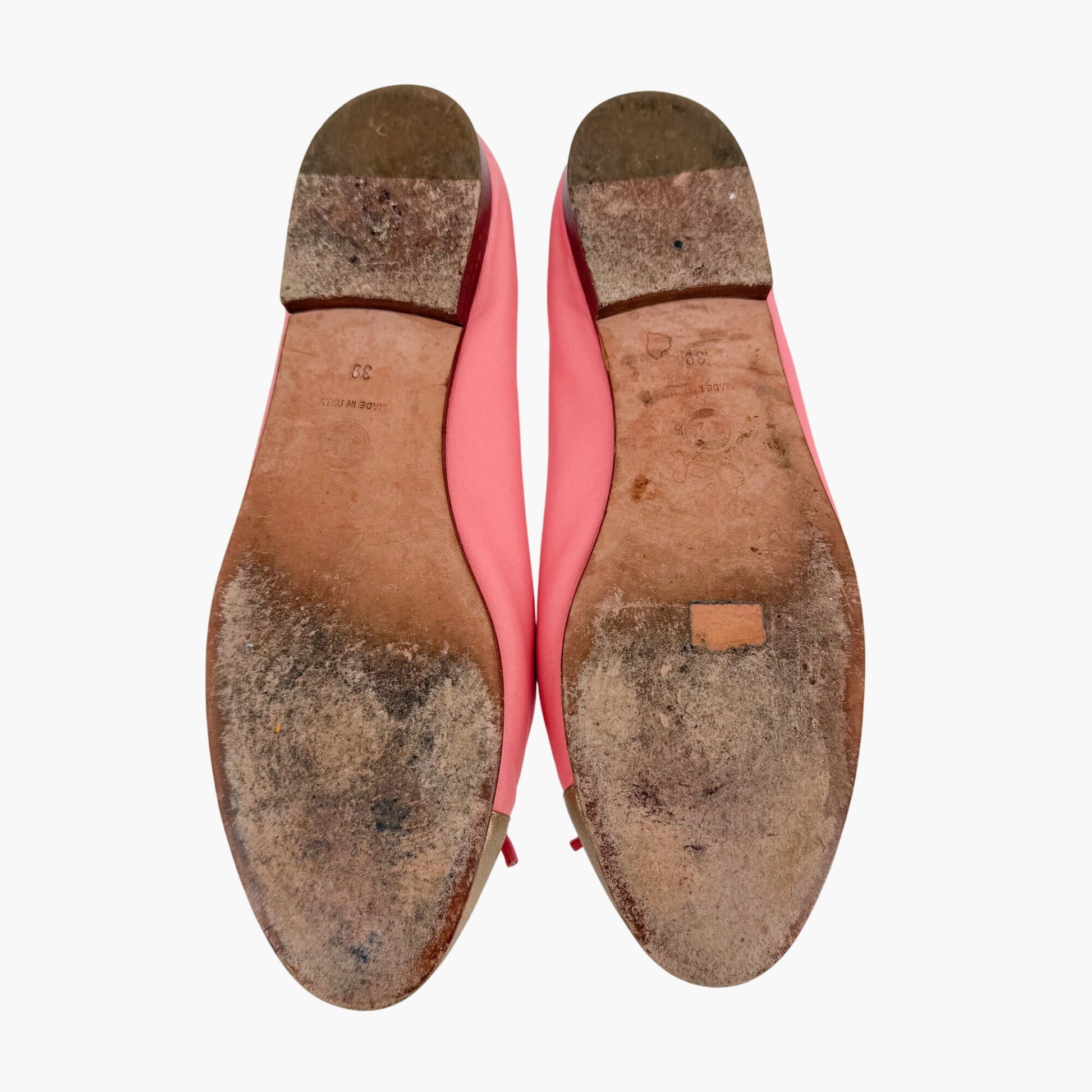 Chanel Pink & Gold CC Cap Toe Leather Ballet Flats Size 39