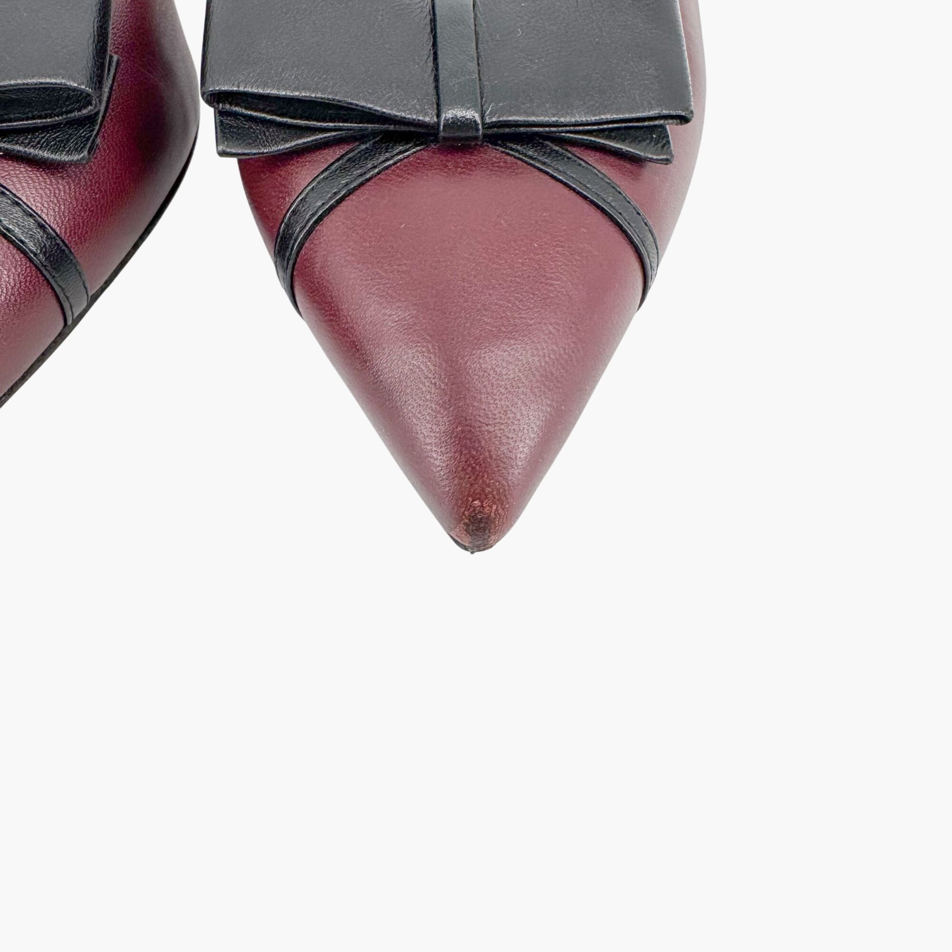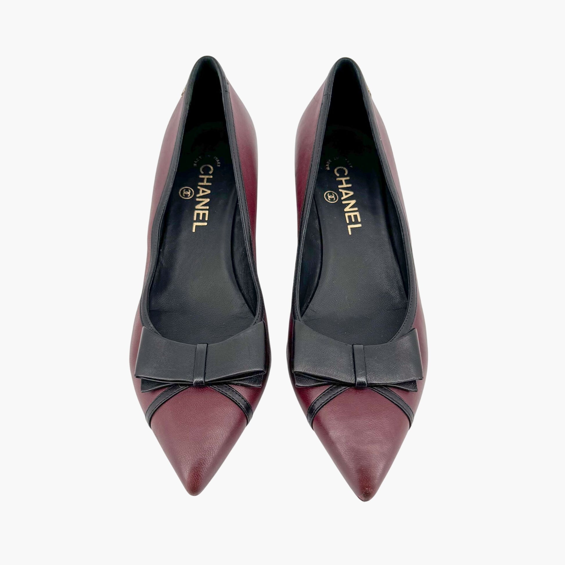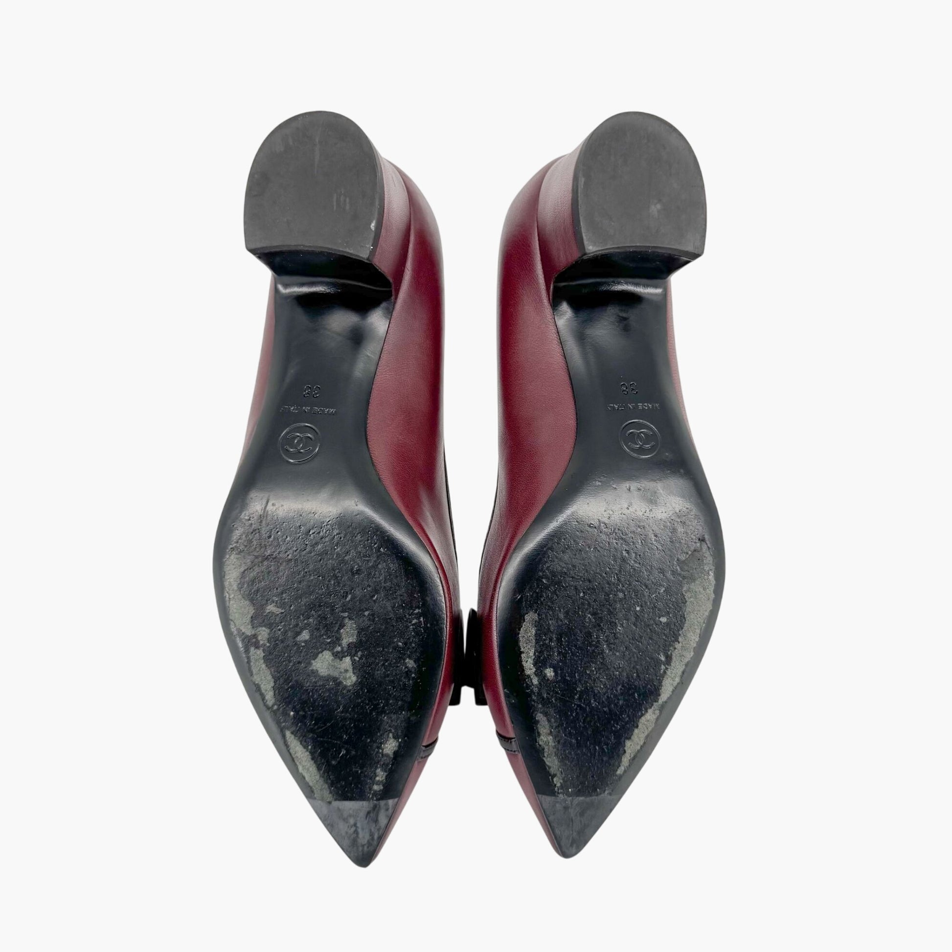 Chanel Pointed Toe Bow CC Pumps in Maroon Leather Size 38