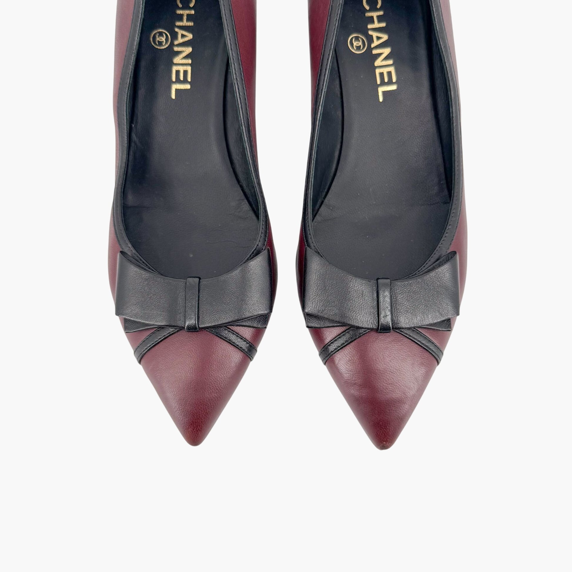 Chanel Pointed Toe Bow CC Pumps in Maroon Leather