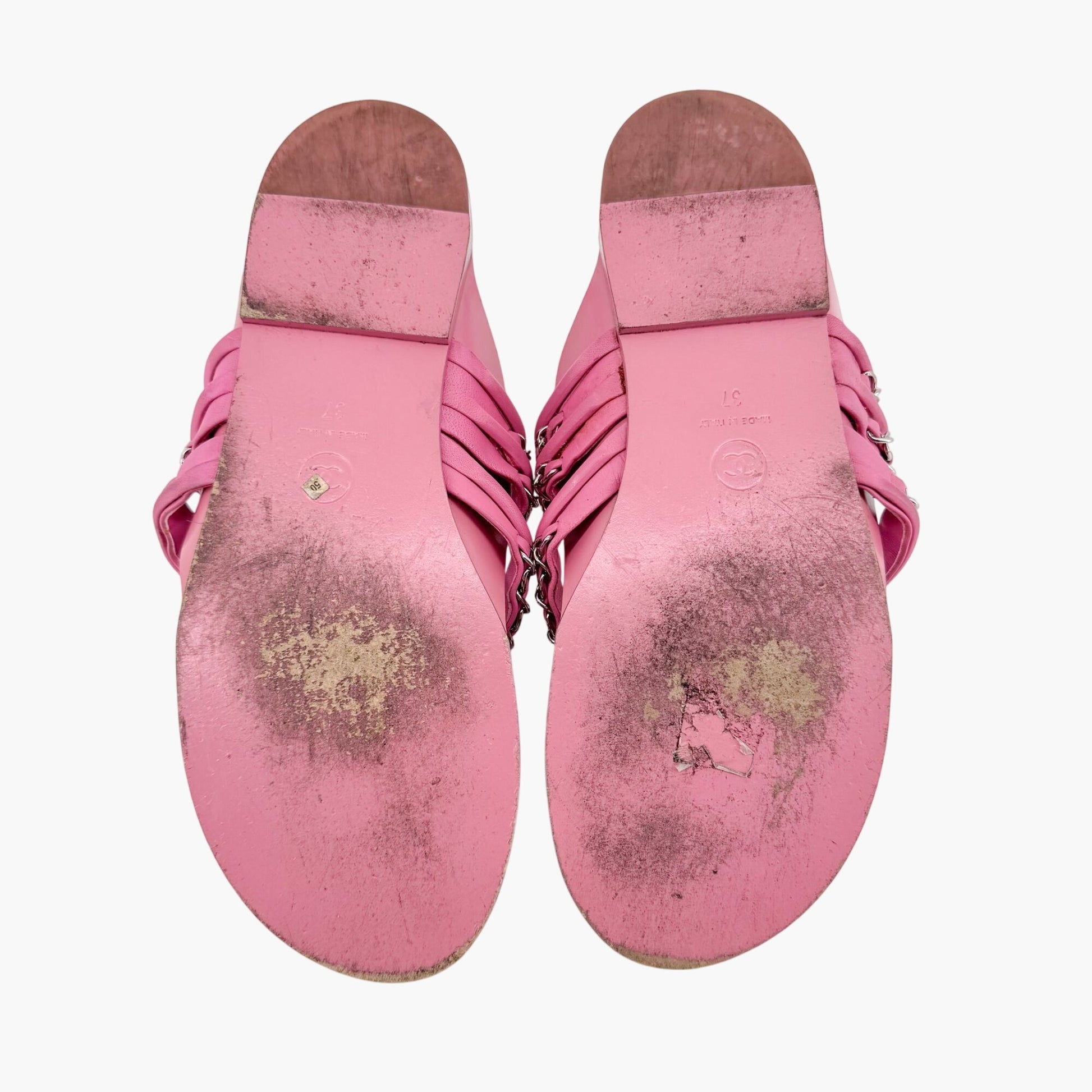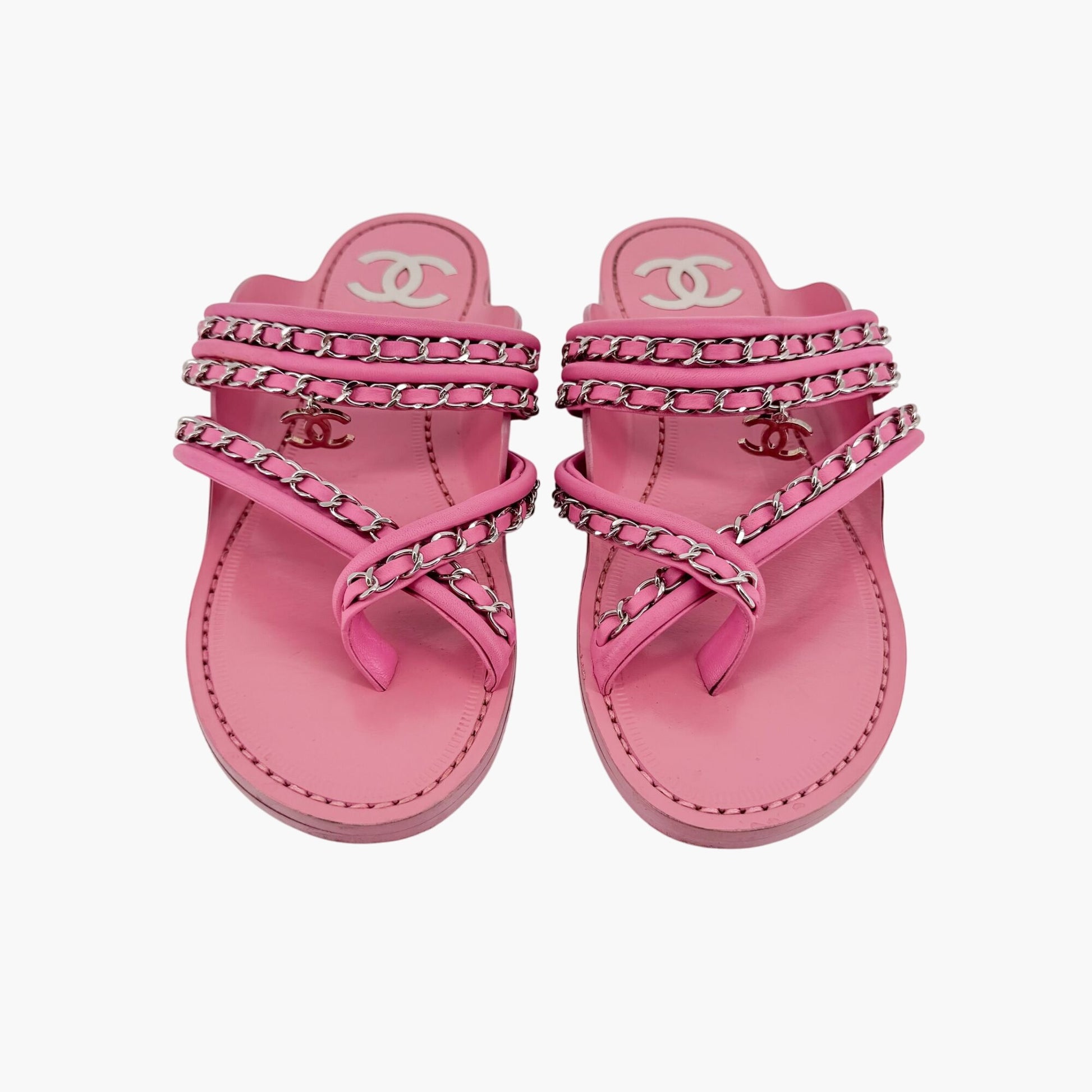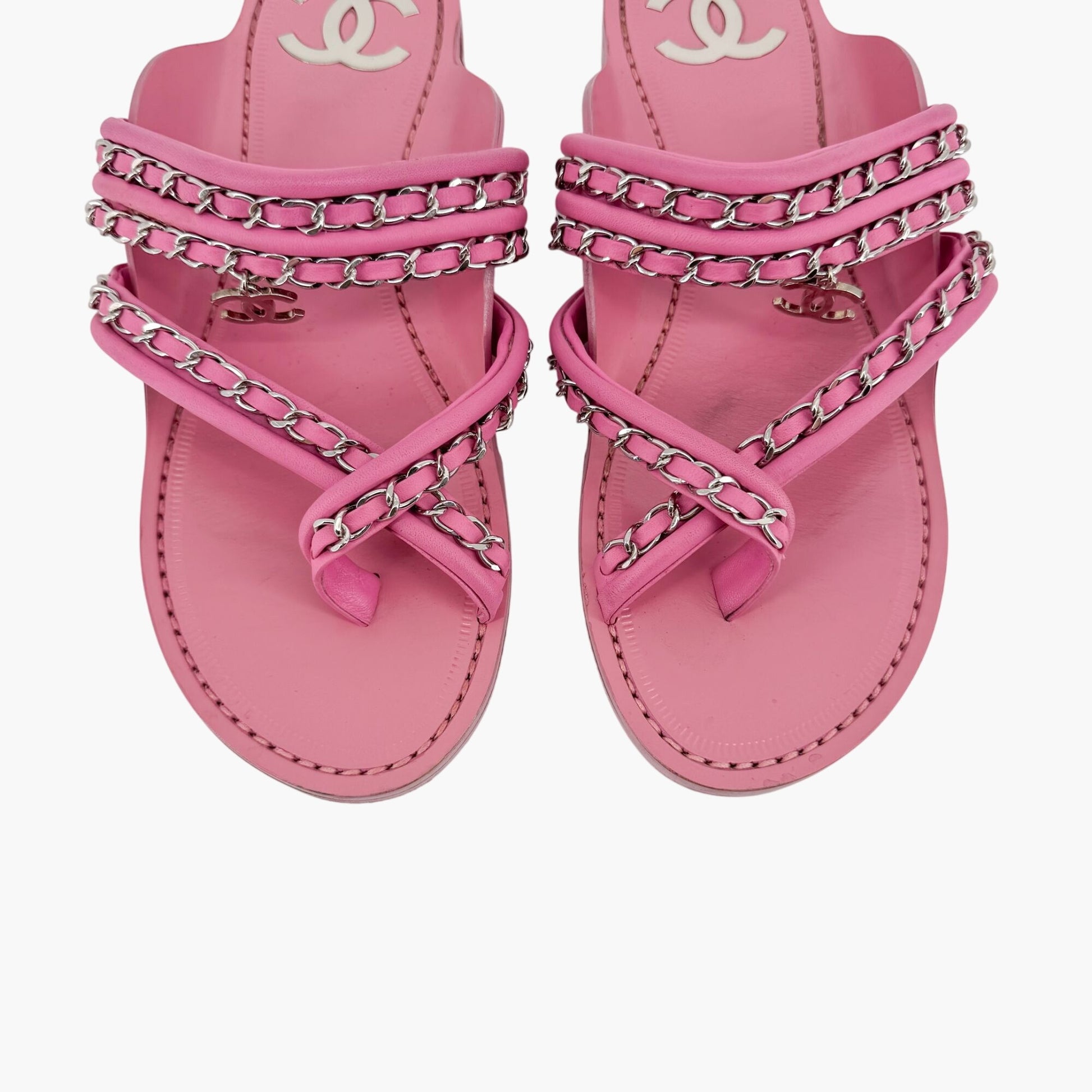 Chanel Toe Ring Chain Flat Sandals in Pink Leather Size 37