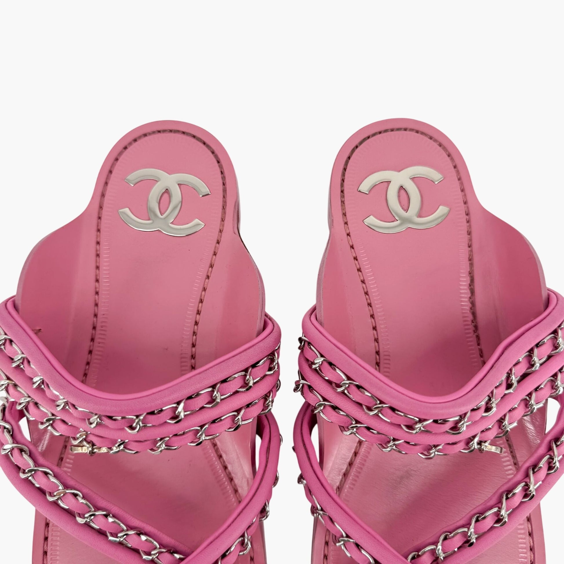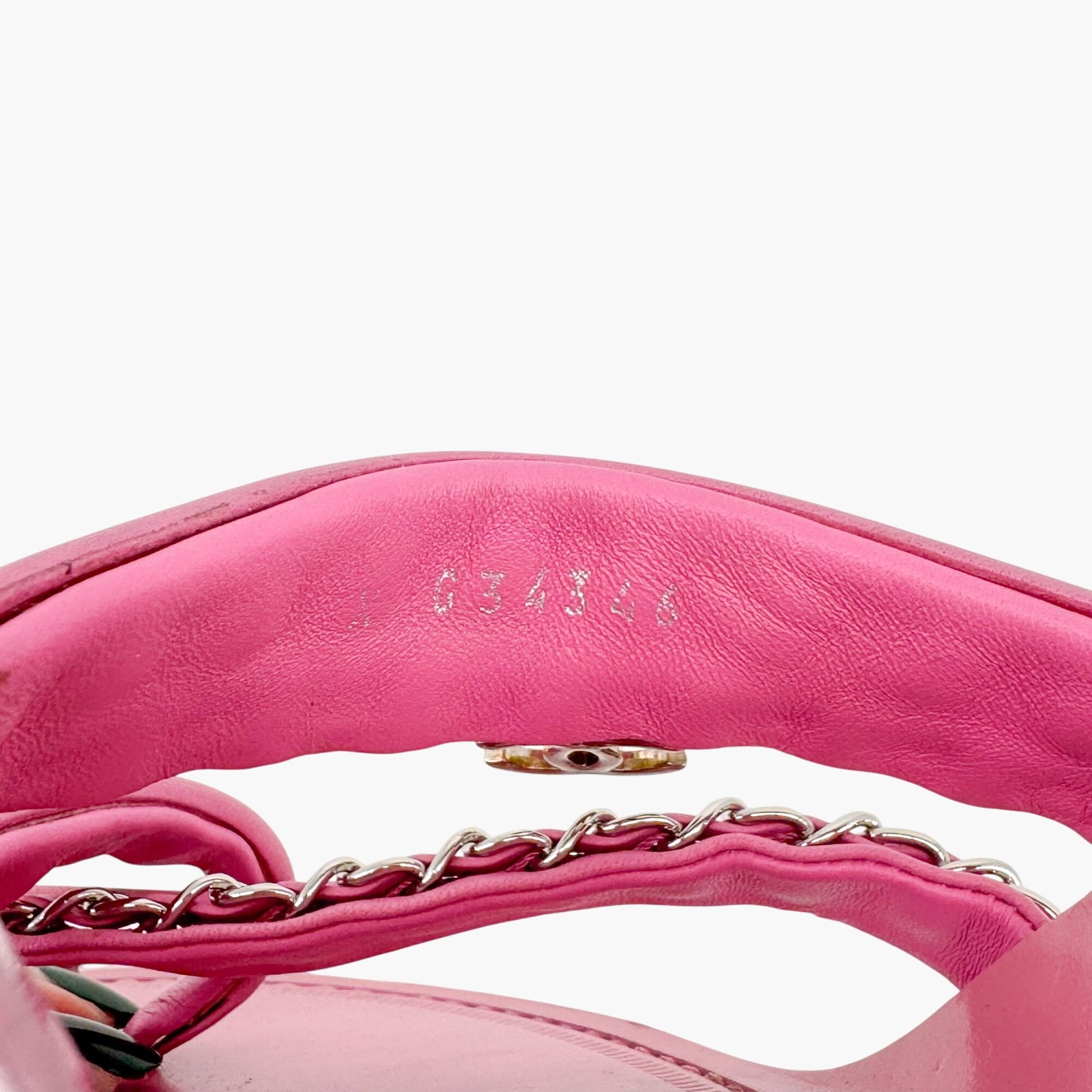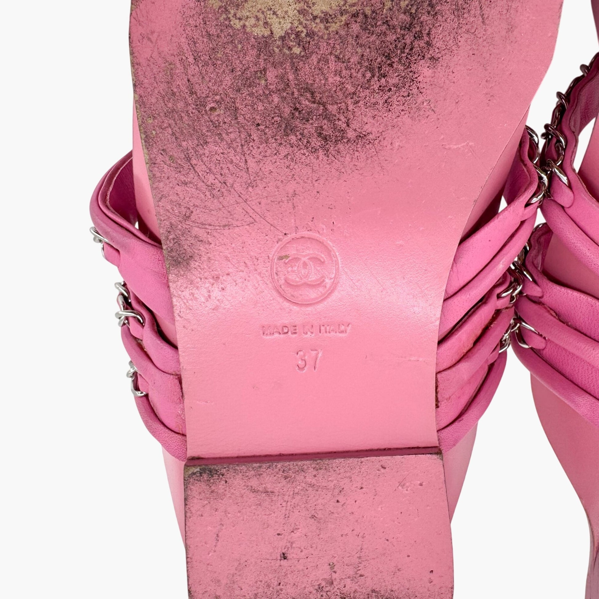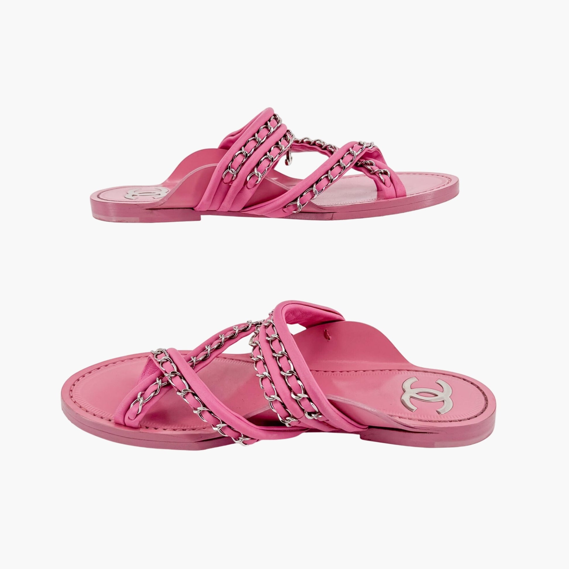 Chanel Toe Ring Chain Flat Sandals in Pink Leather Size 37