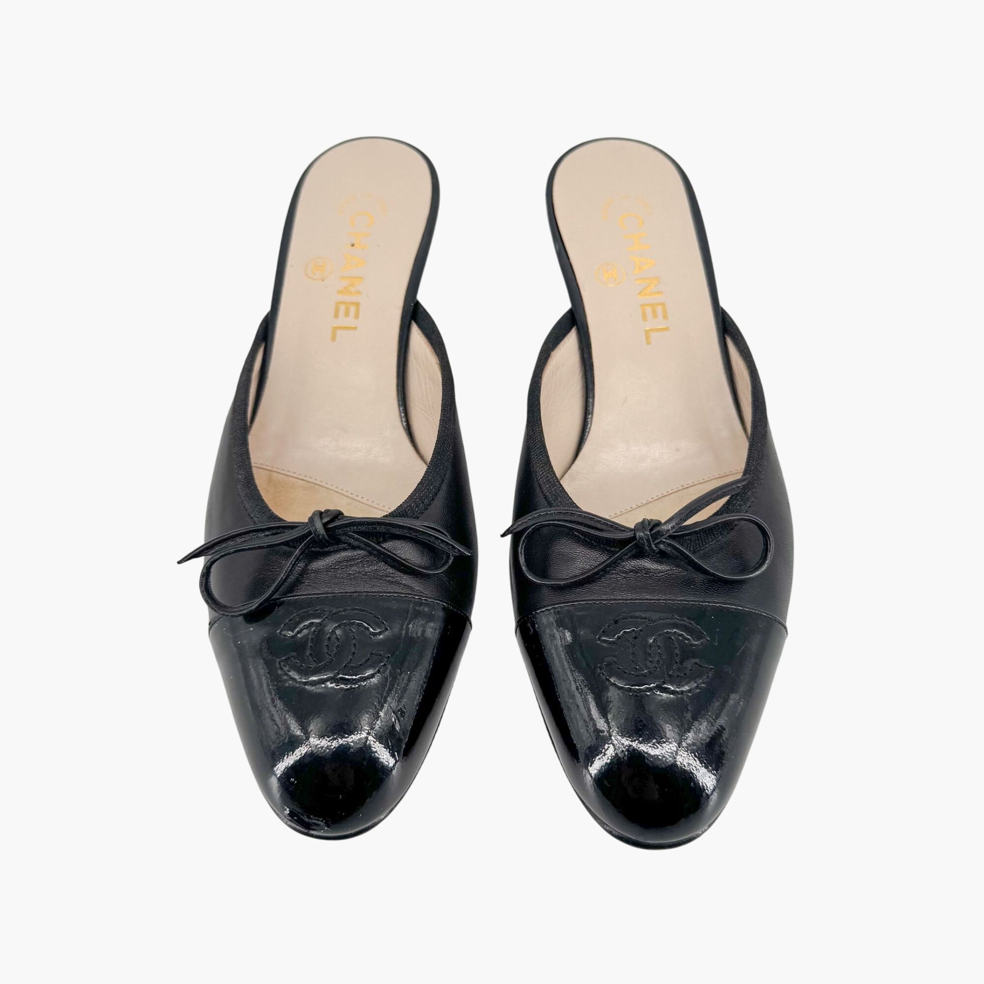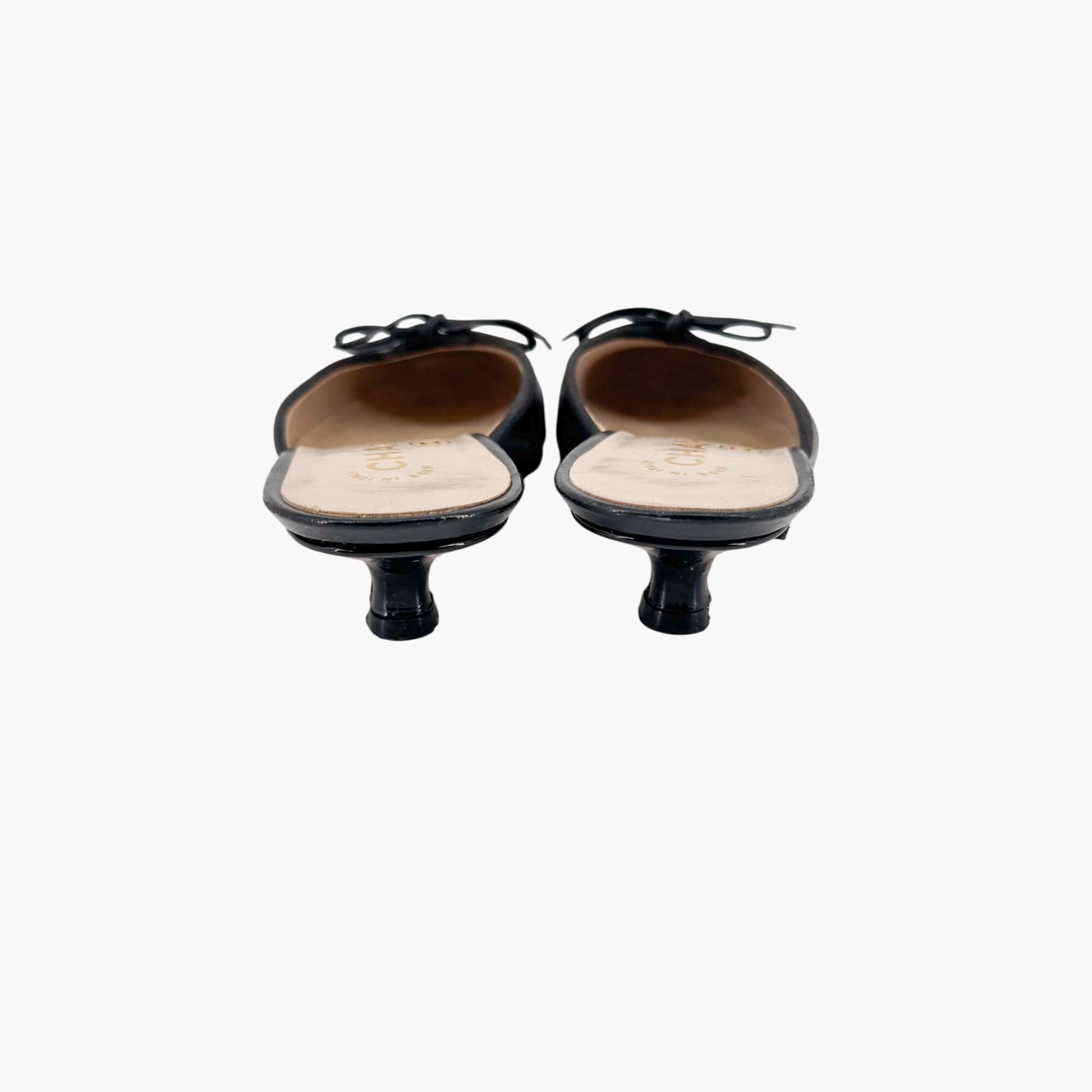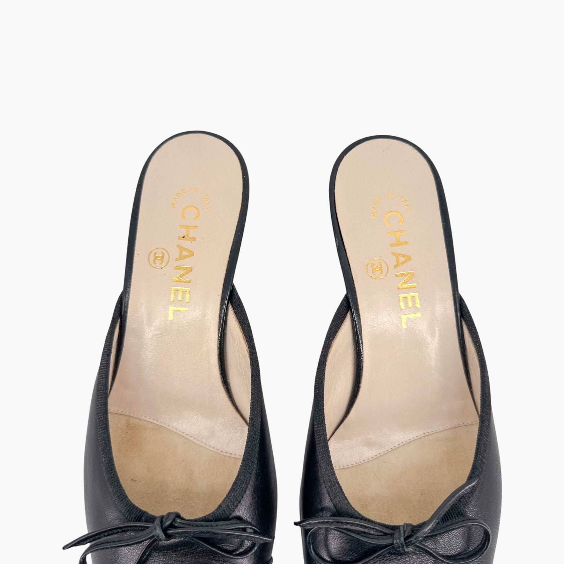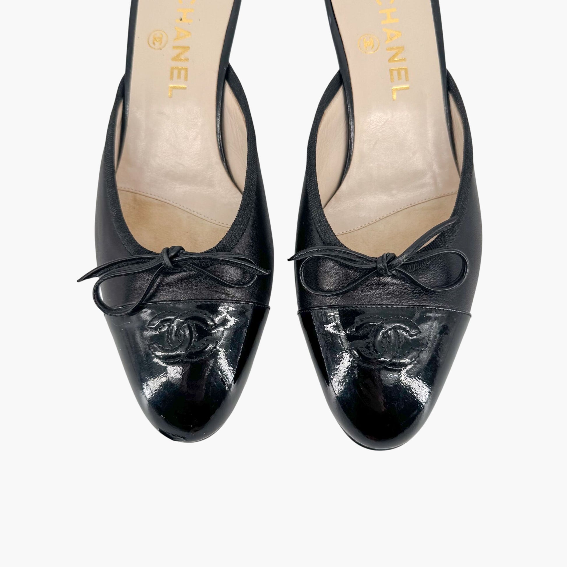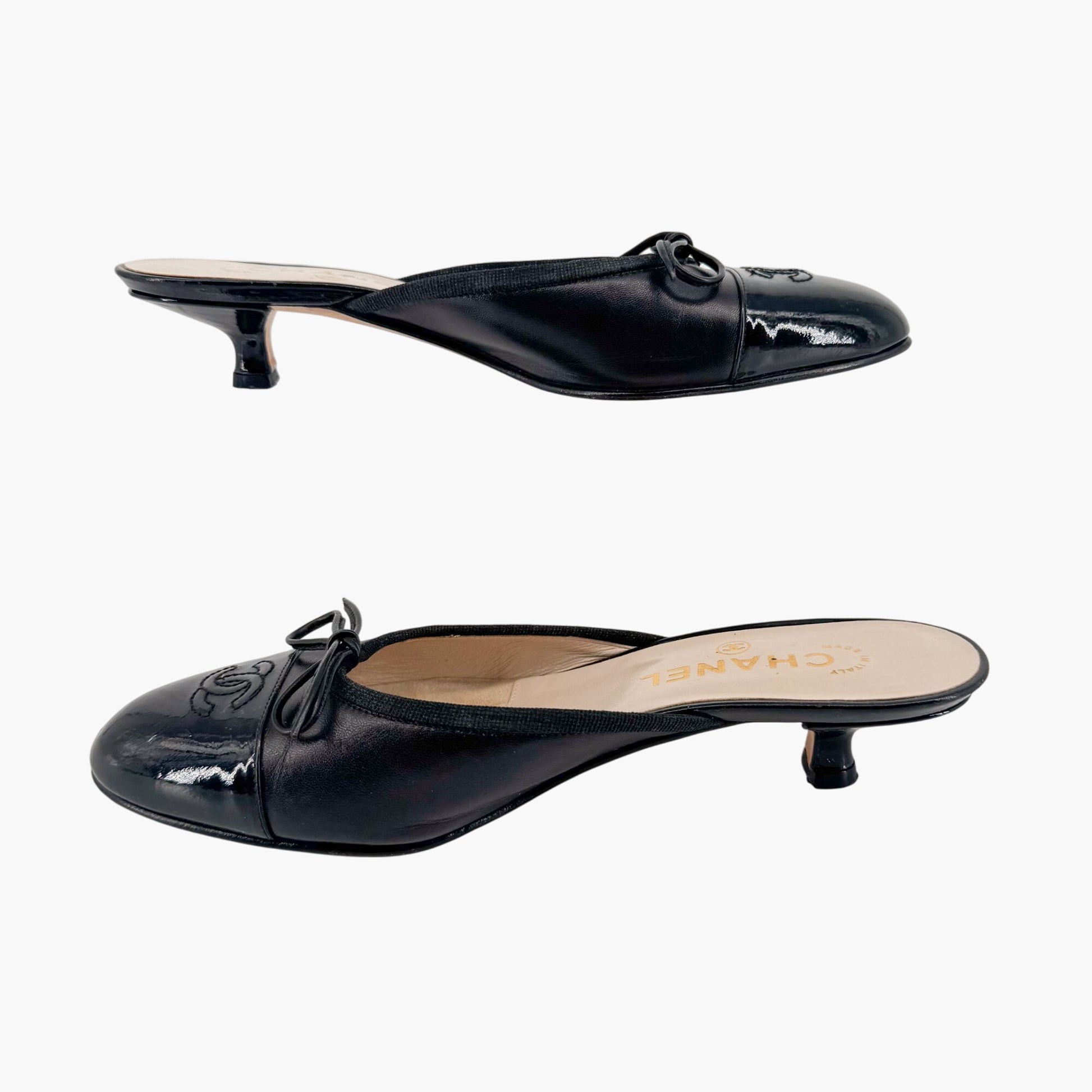 Chanel Vintage CC Cap Toe Kitten Heel Mules in Black Leather – Size 36.5