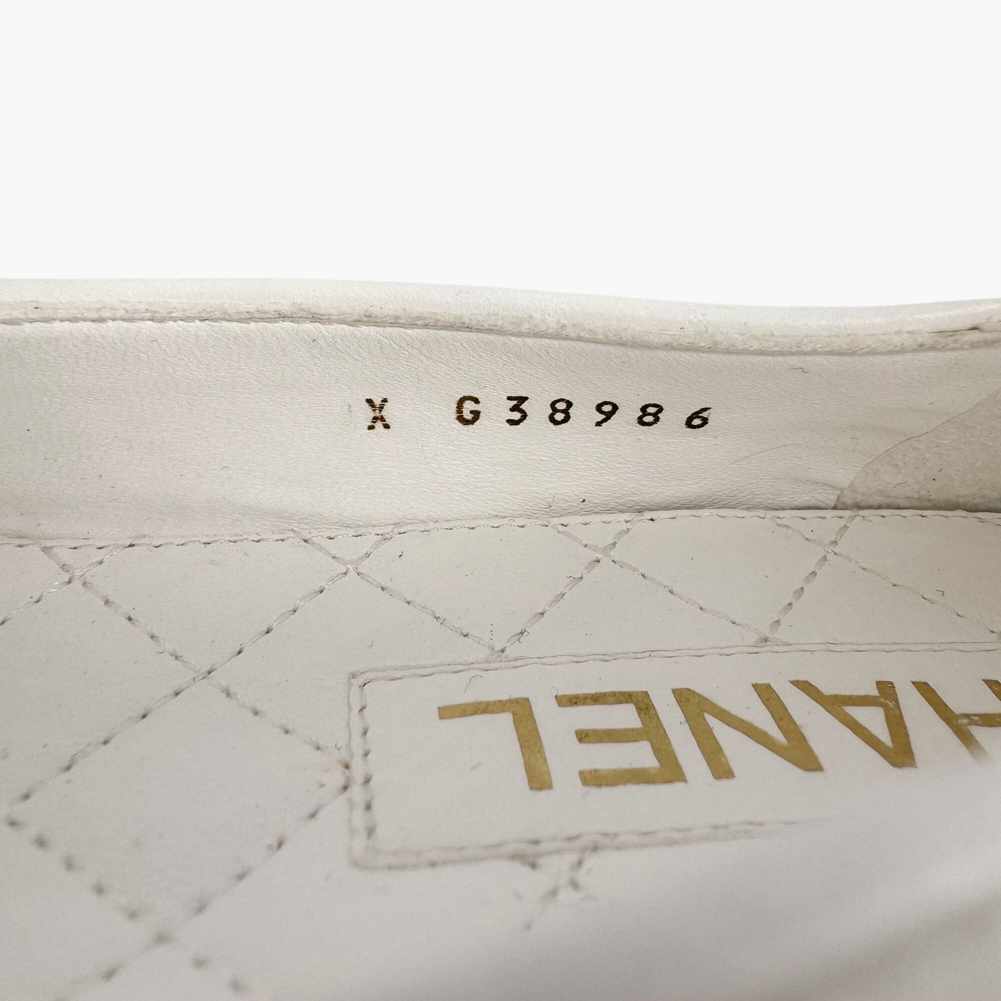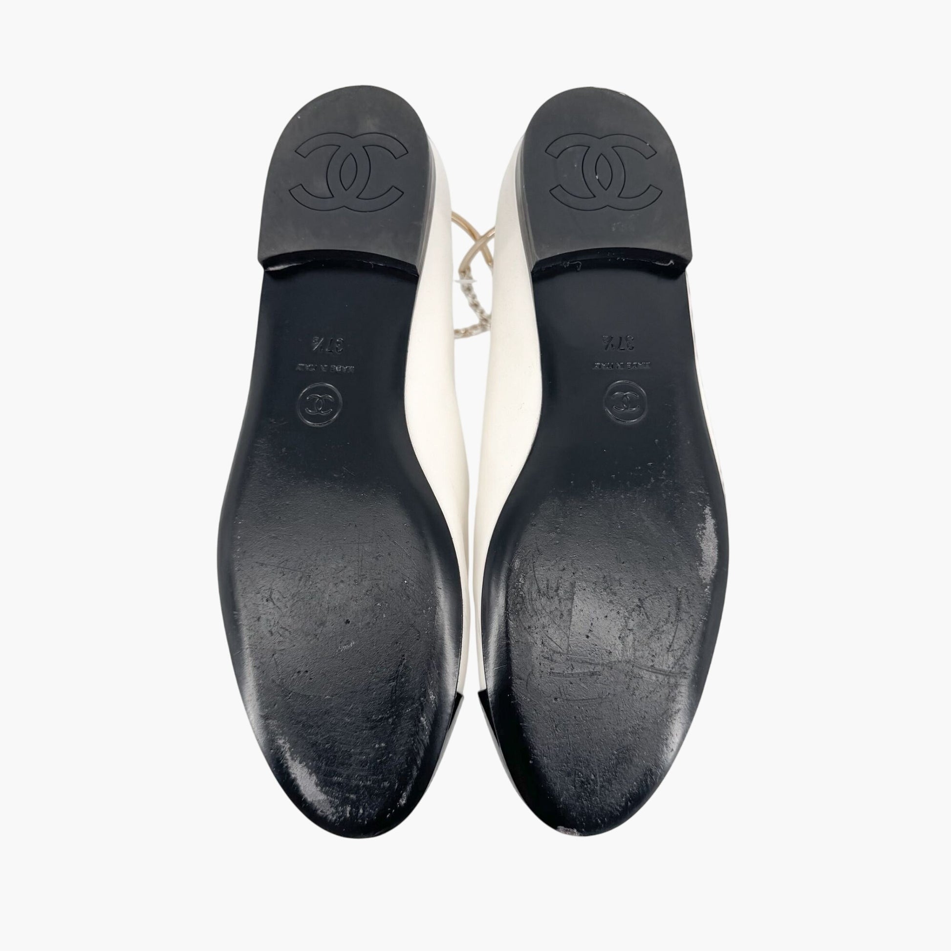 Chanel White Camellia Ankle Chain Ballet Flats – Size 37.5