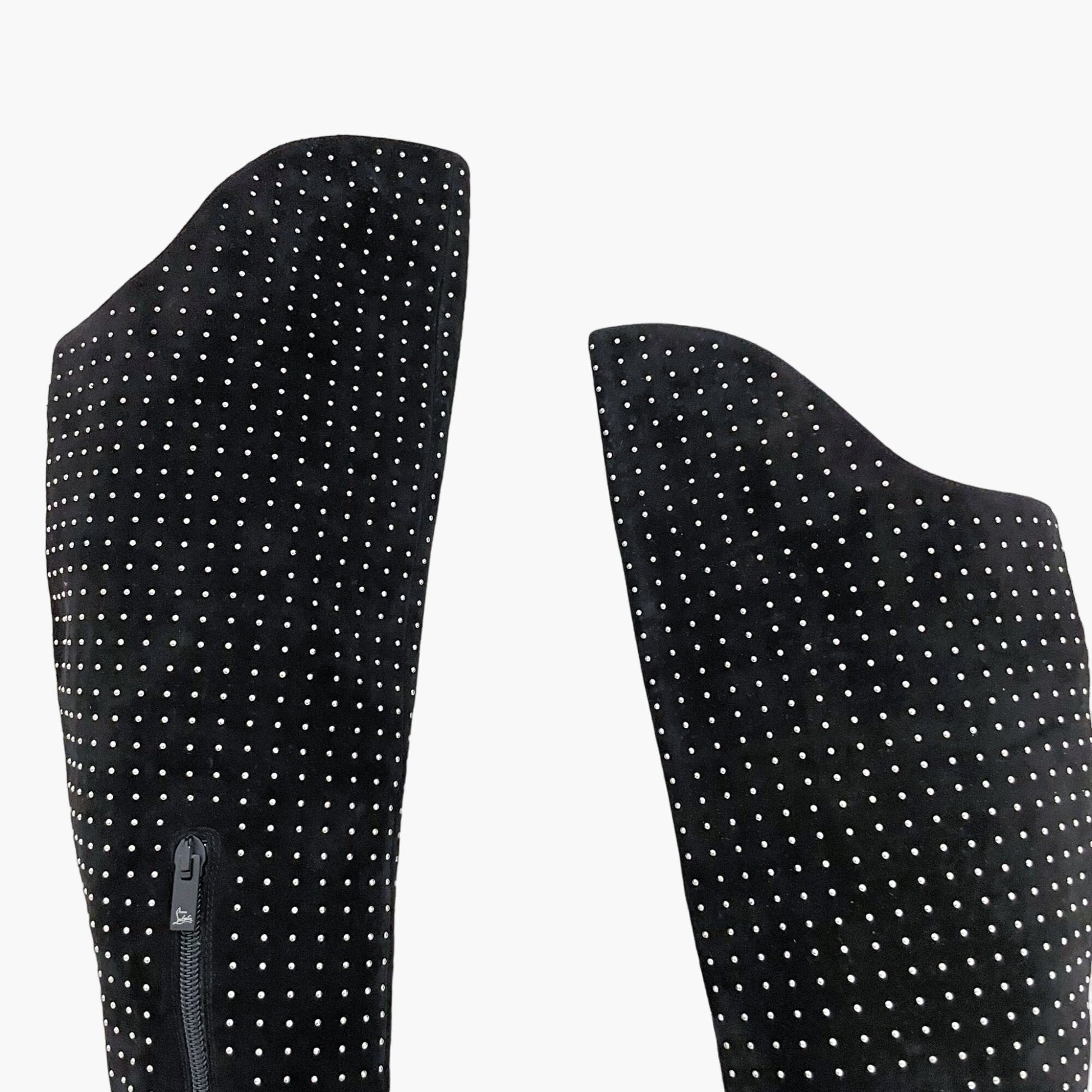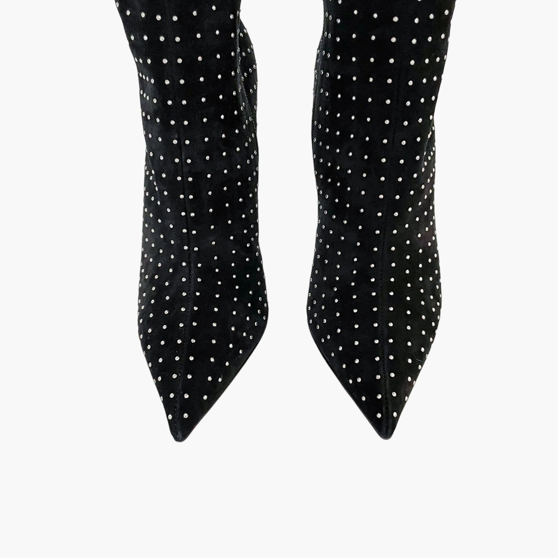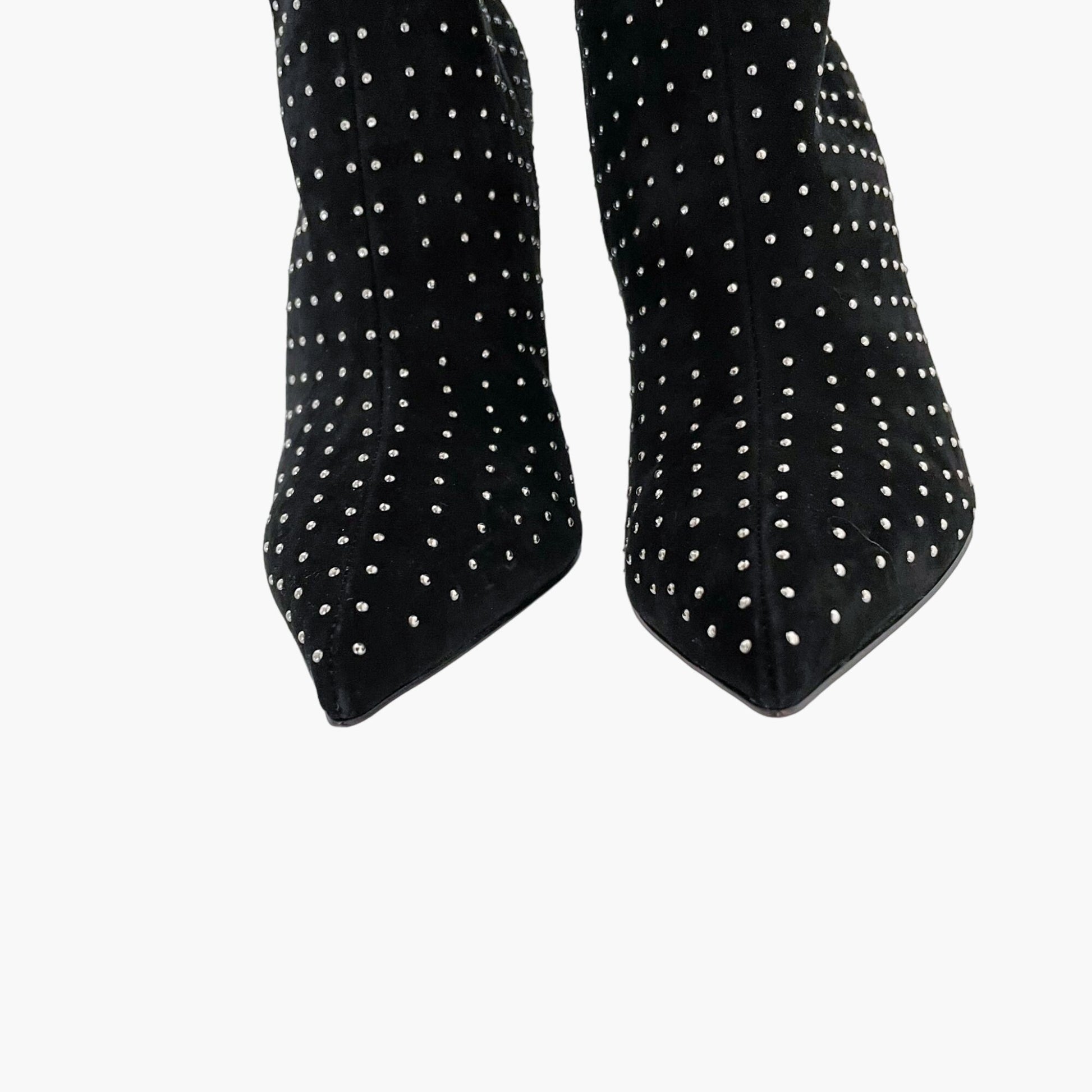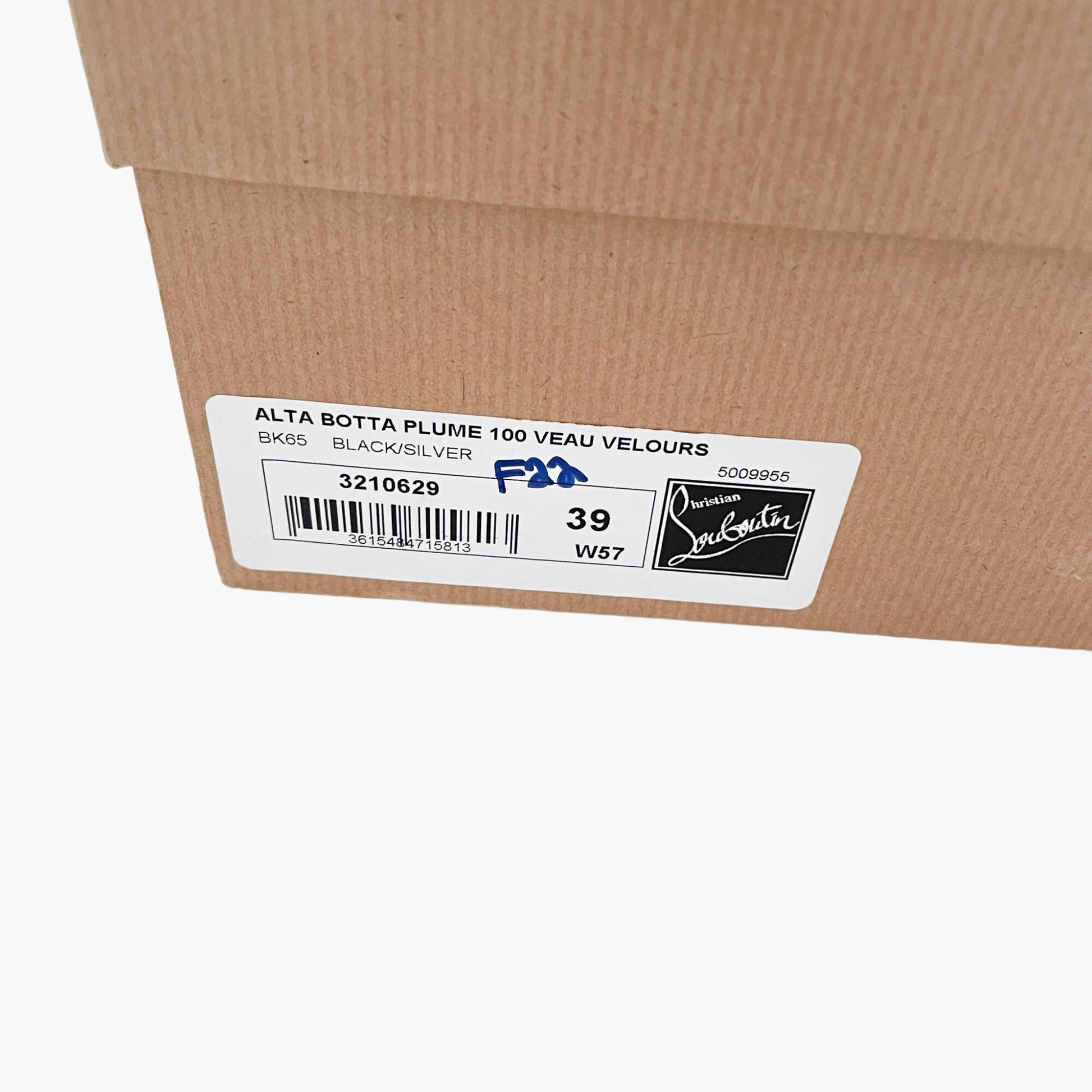 Christian Louboutin Alta Botta Plume 100 in Black Veau Velours with Silver Studs Size 39