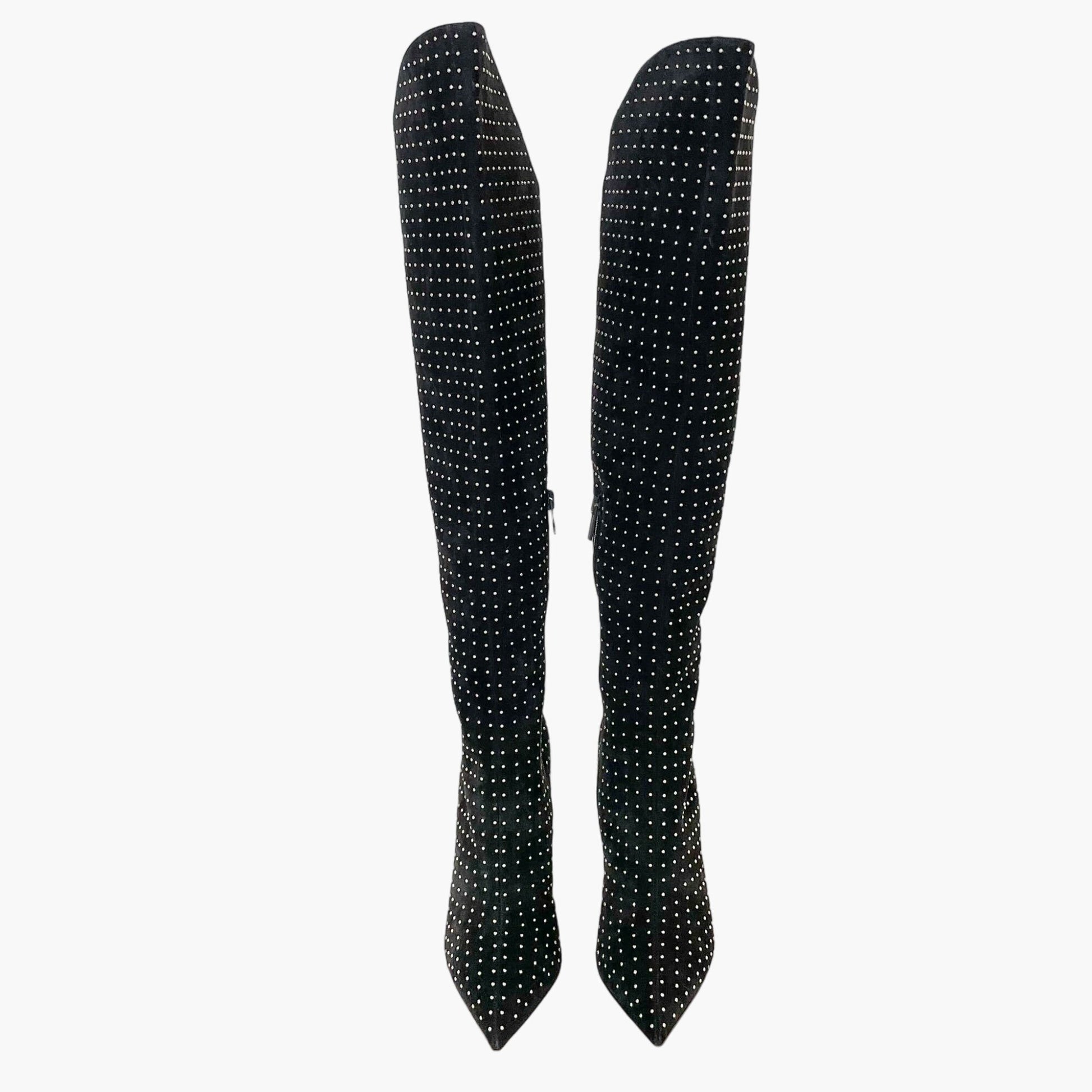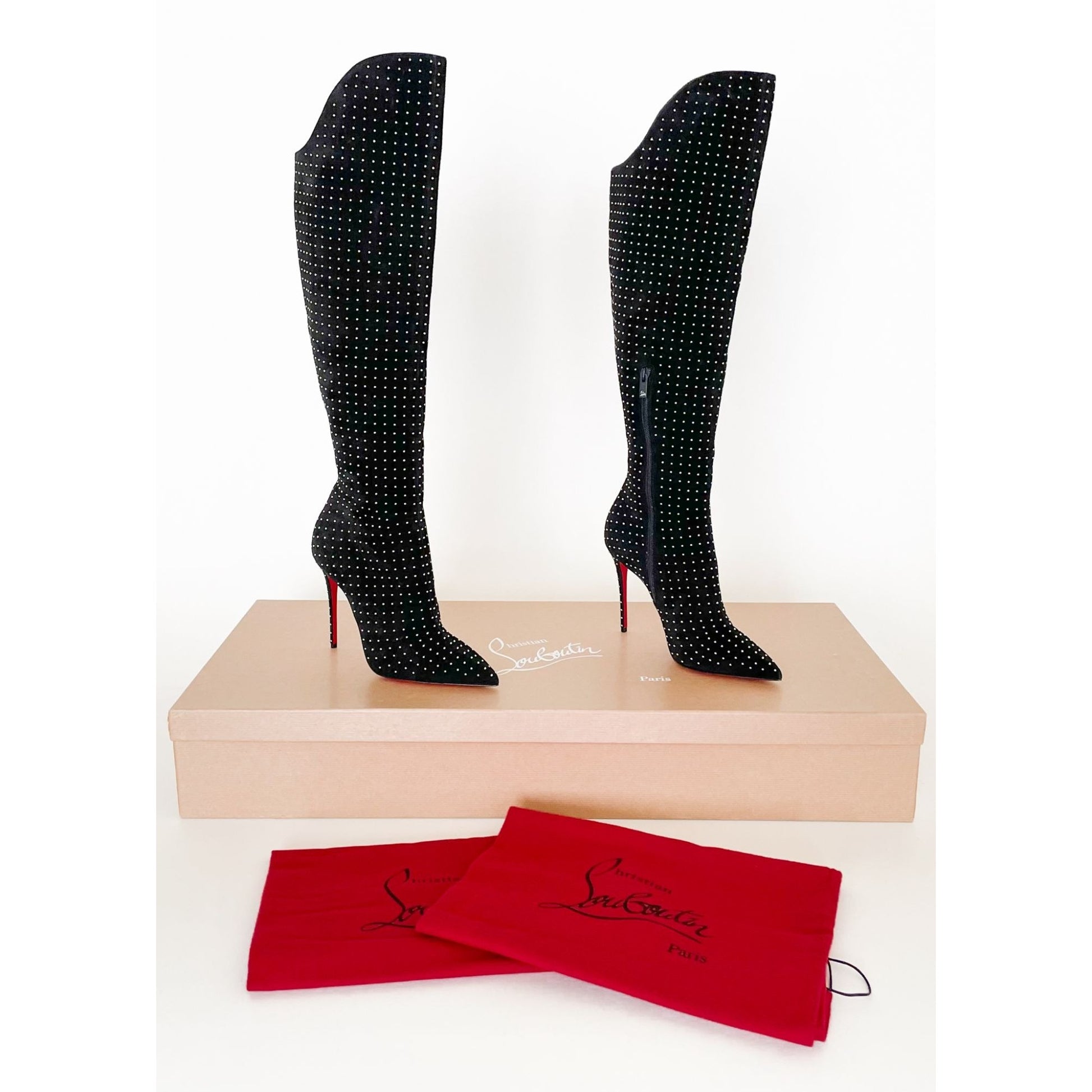 Christian Louboutin Alta Botta 100 Boots EU 39 US 9 Black Studded Over The Knee