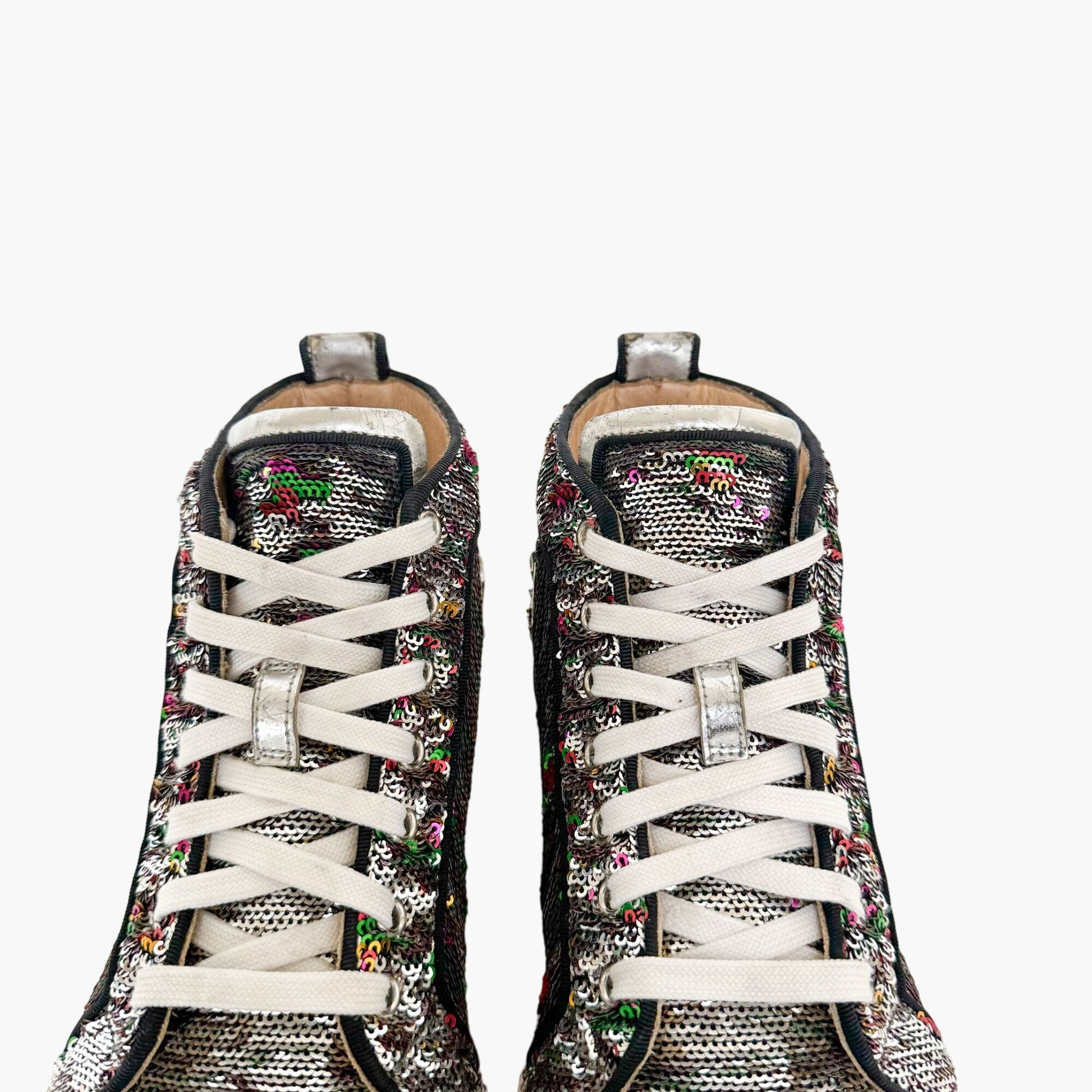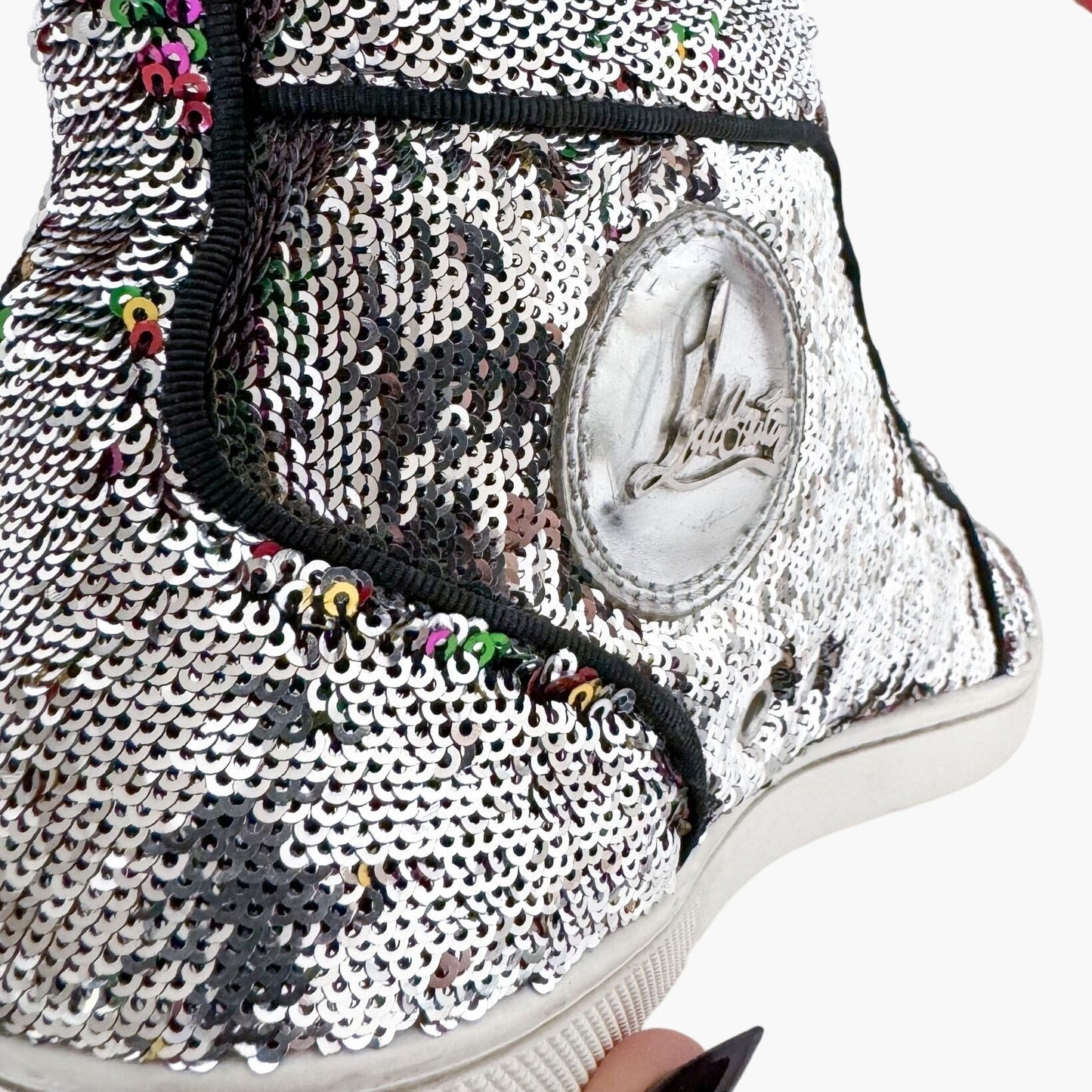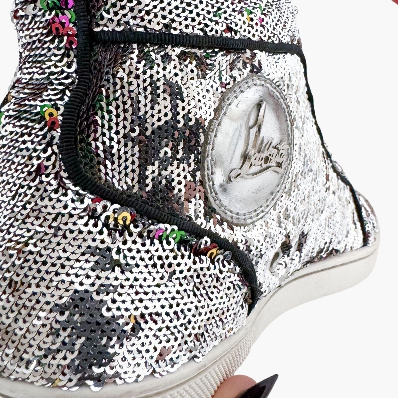 Christian Louboutin Bip Bip High Top Sneakers in Silver Flip Up Sequin Size 37.5