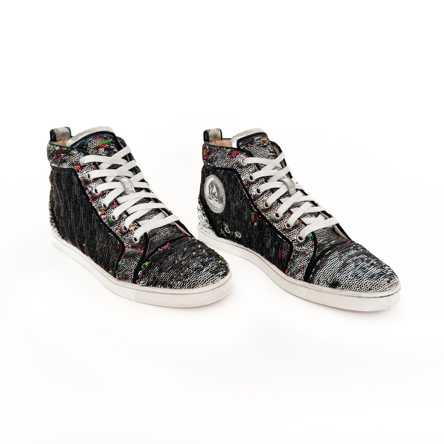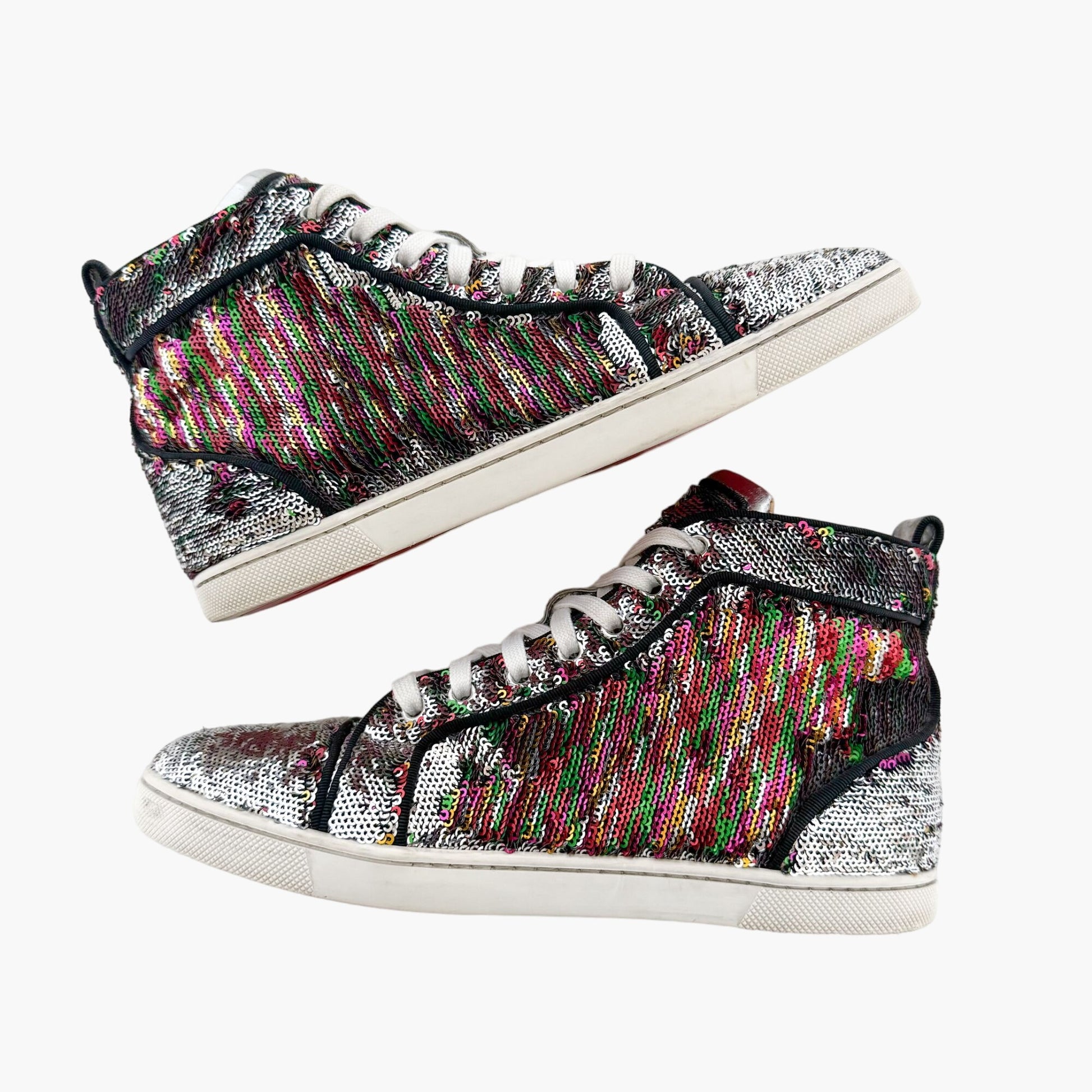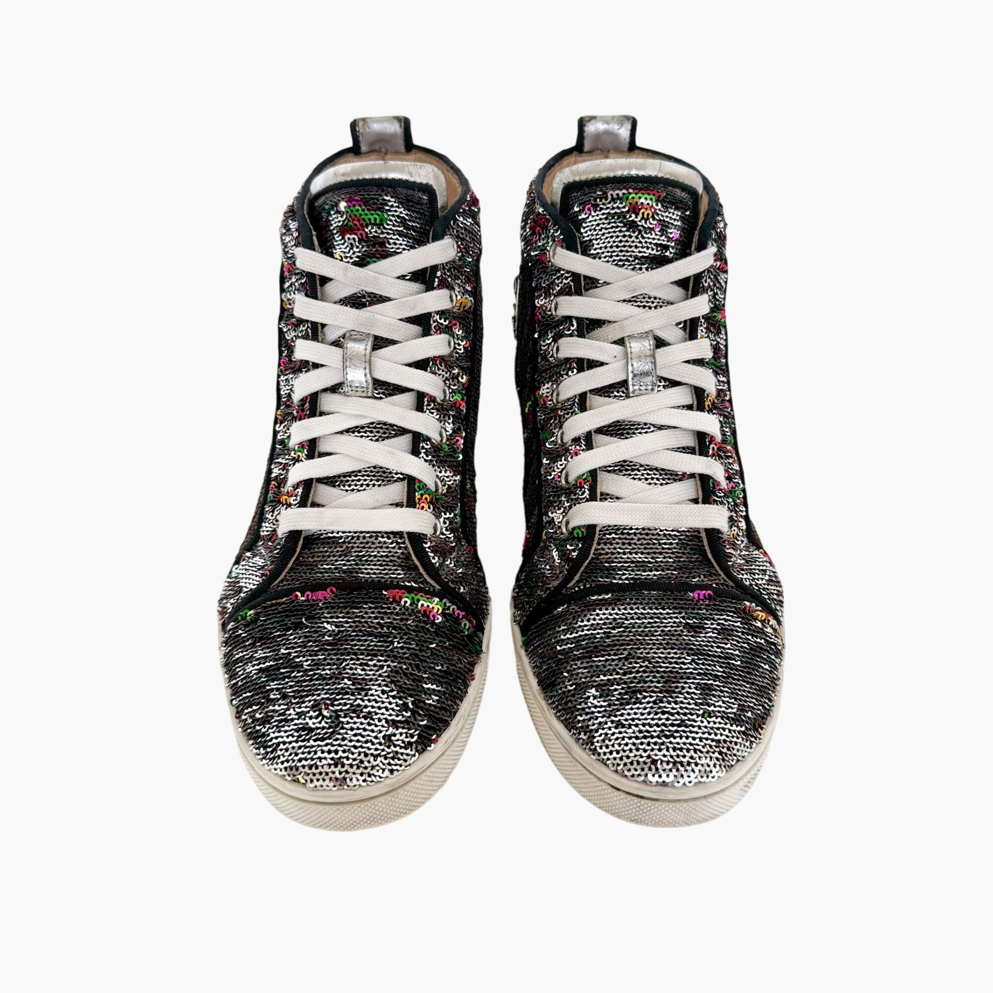 Christian Louboutin Bip Bip High Top Sneakers in Silver Flip Up Sequin Size 37.5