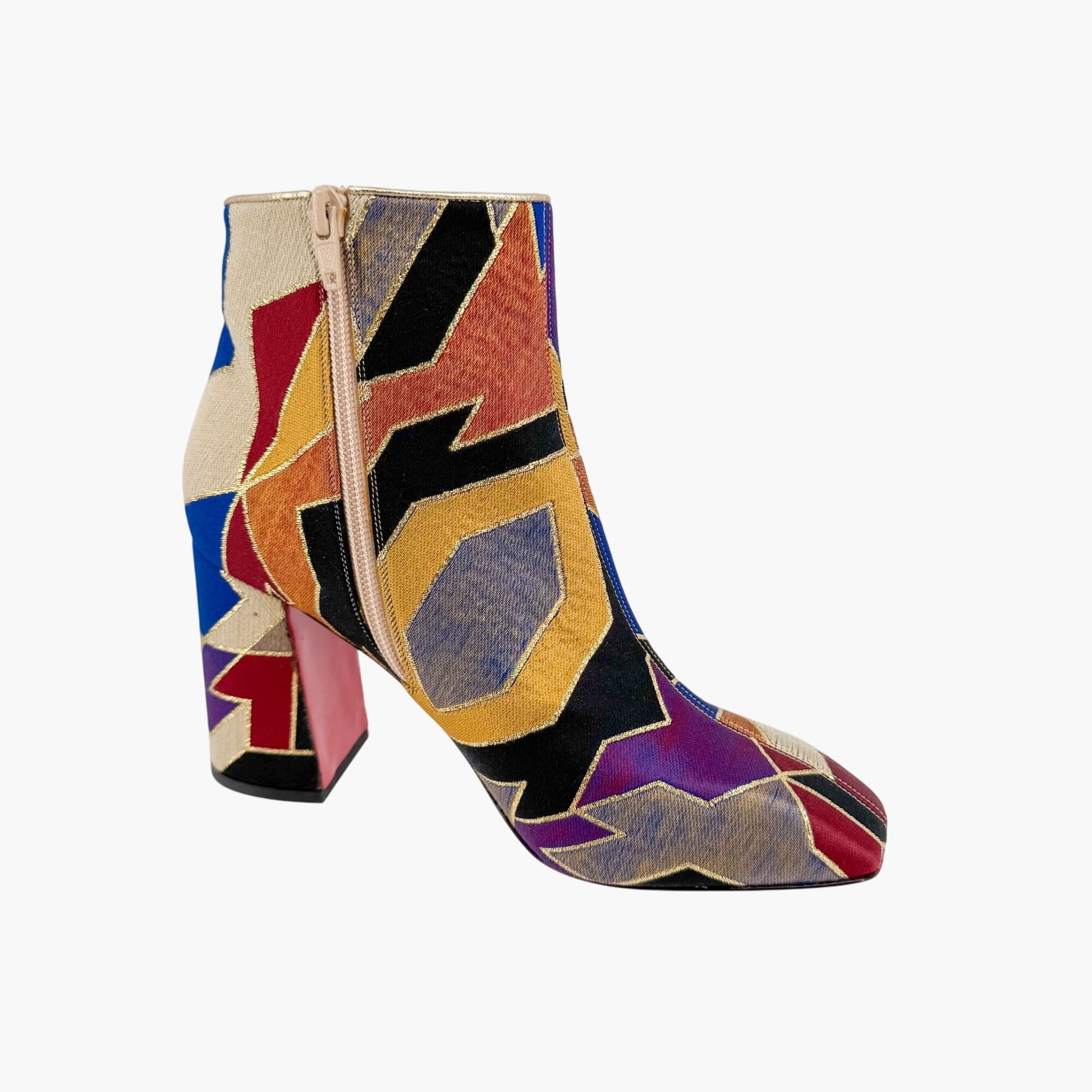 Christian Louboutin Hilconico 85 Ankle Boots in Multicolor Geometric Silk