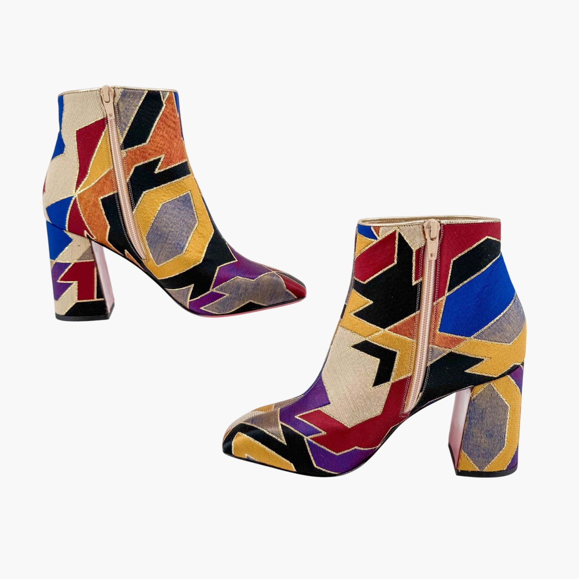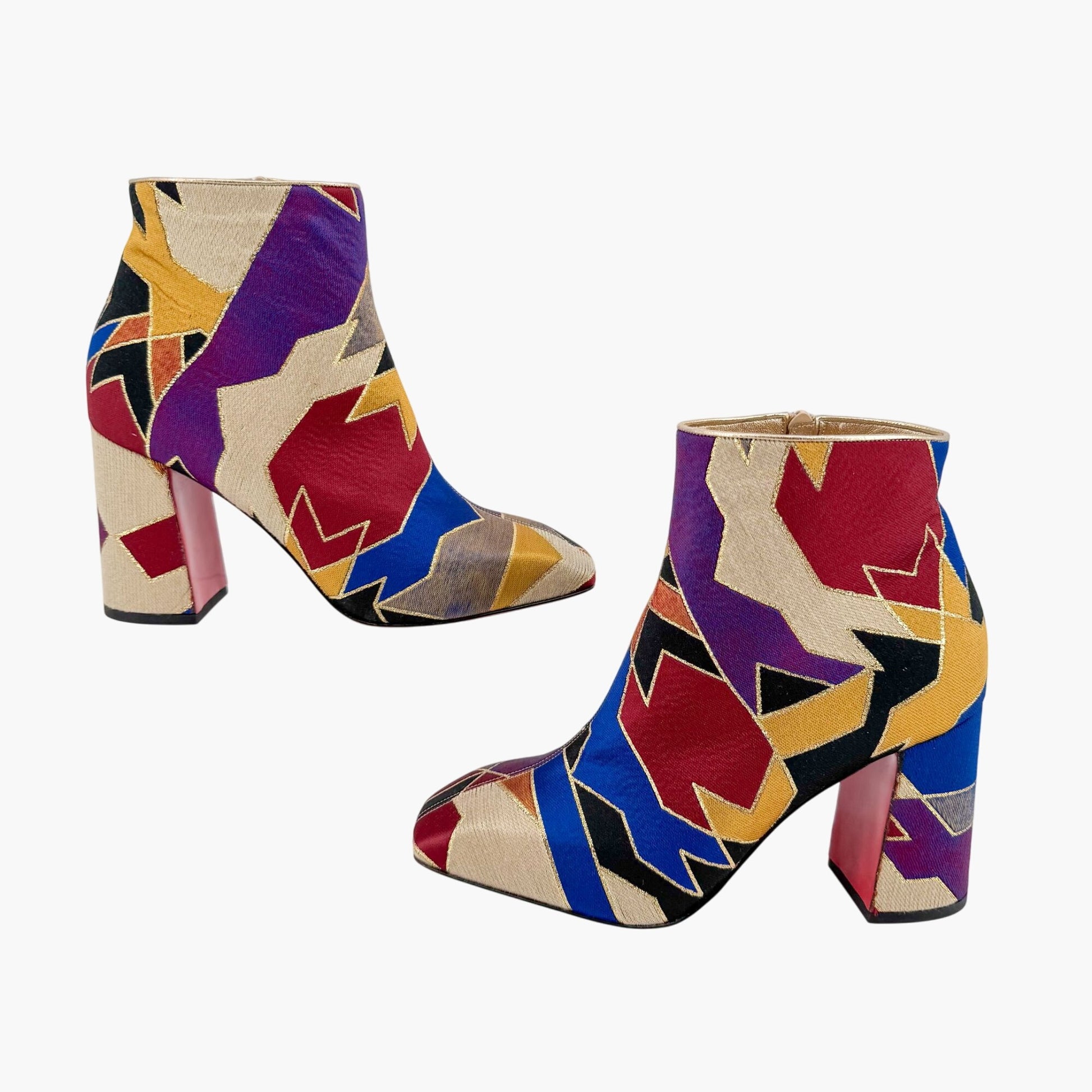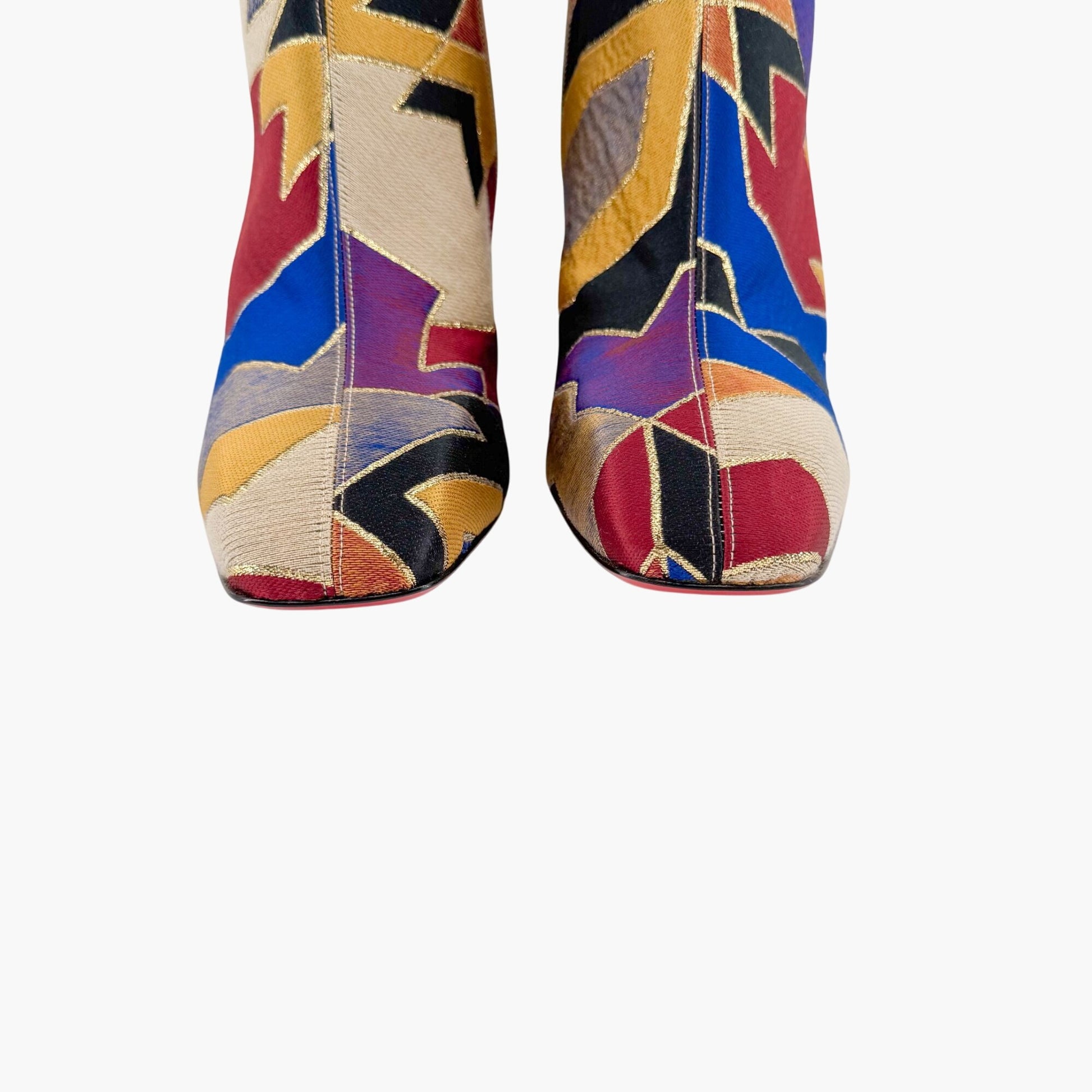 Christian Louboutin Hilconico 85 Ankle Boots in Multicolor Geometric Silk Size 40