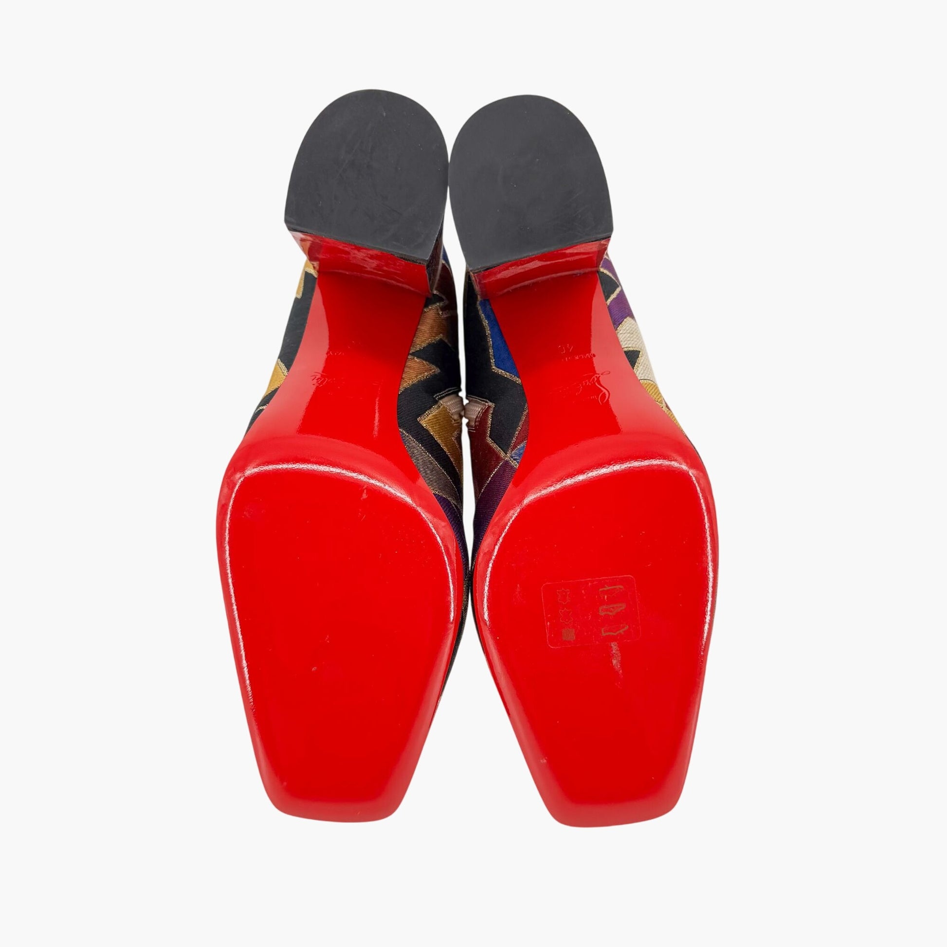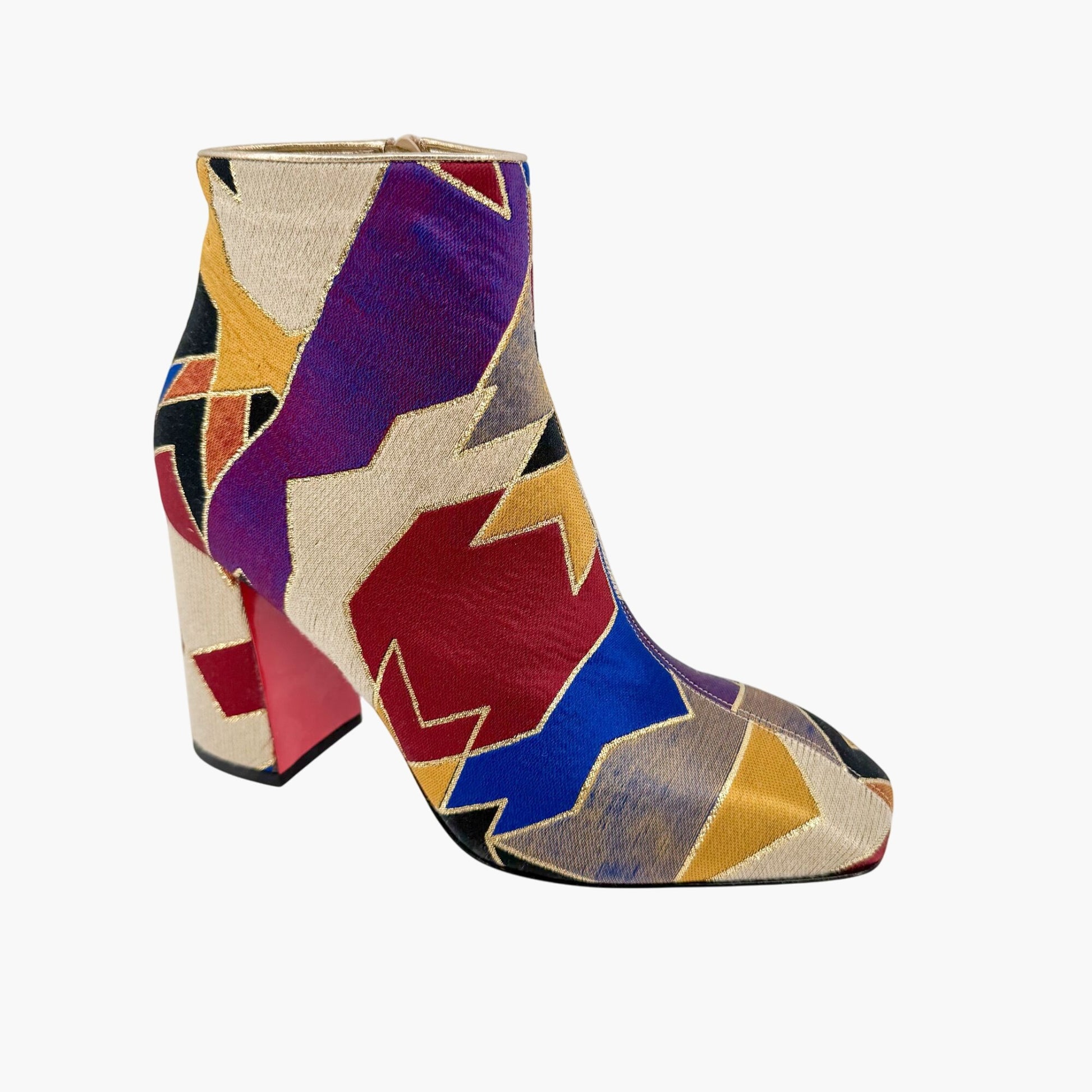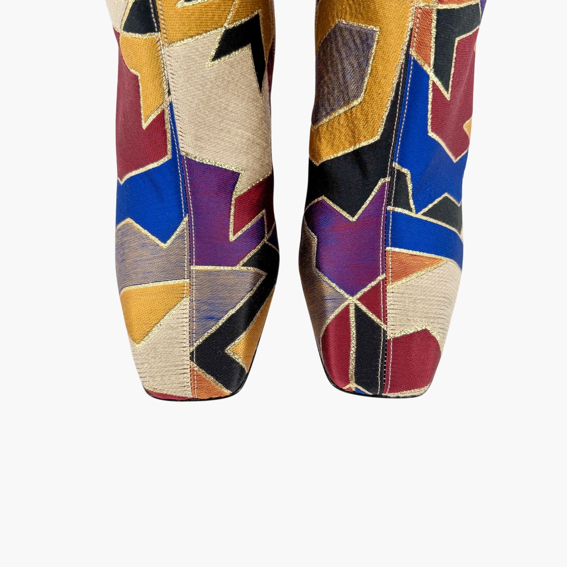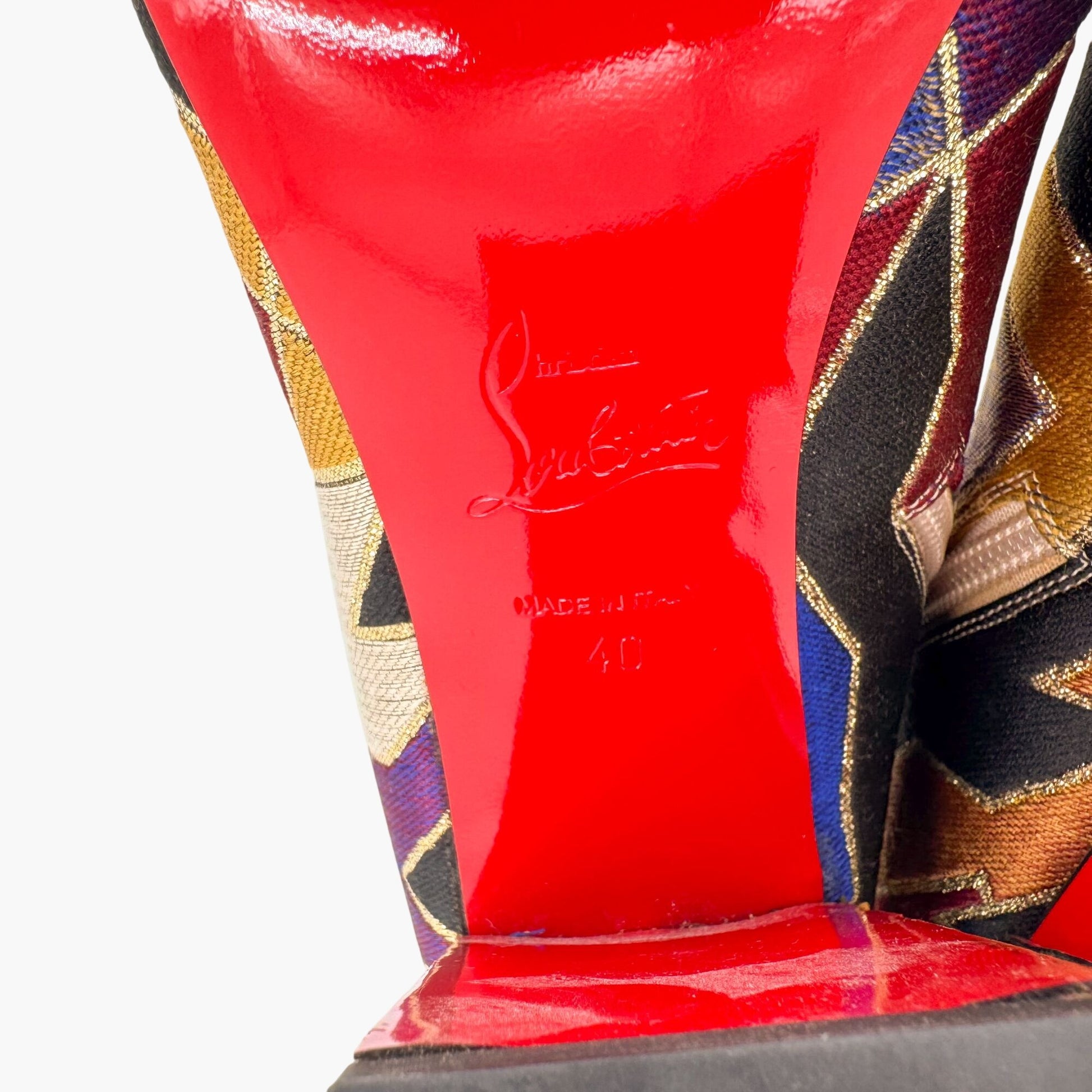 Christian Louboutin Hilconico 85 Ankle Boots in Multicolor Geometric Silk Size 40