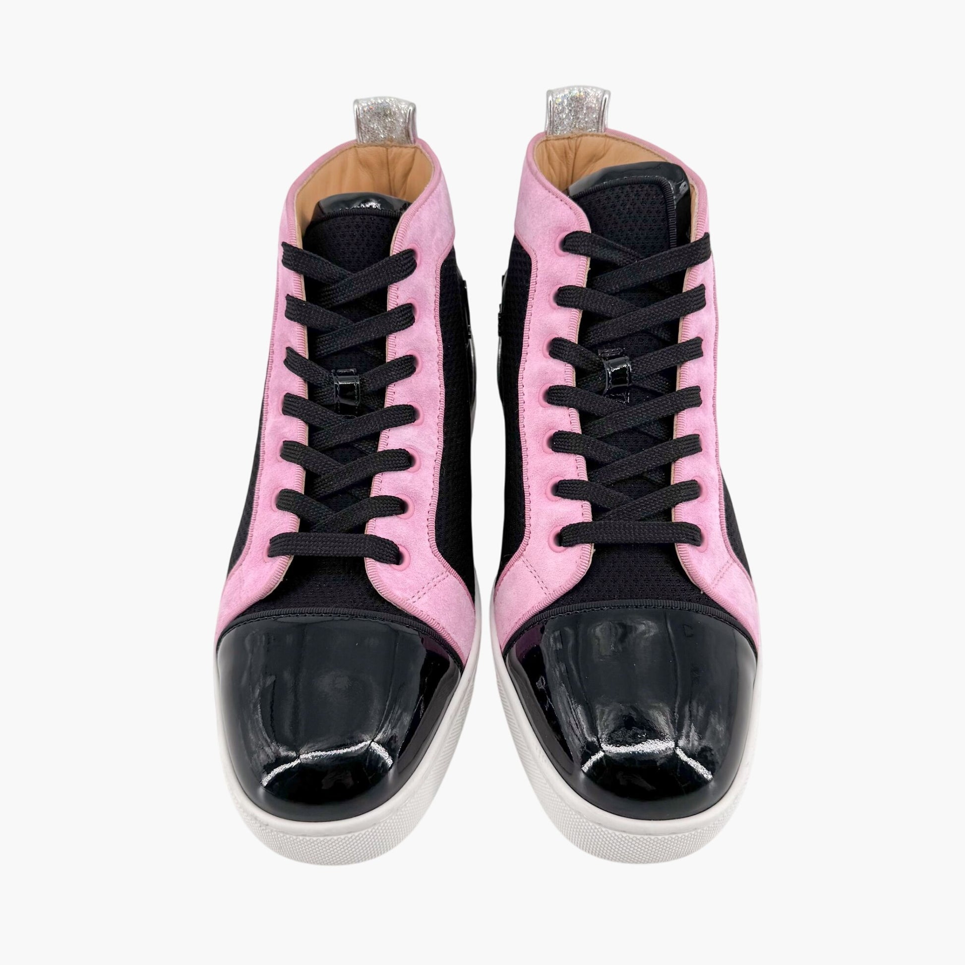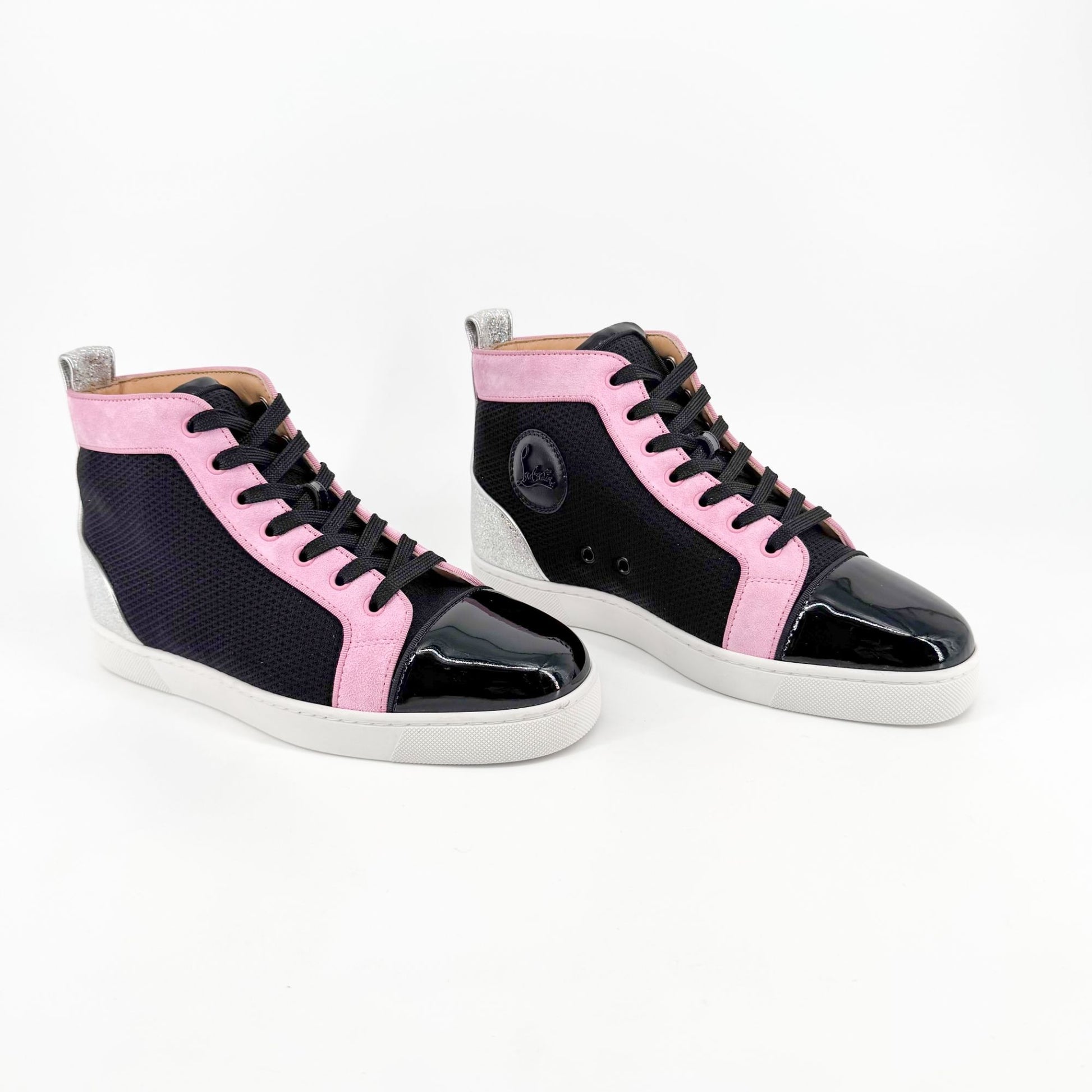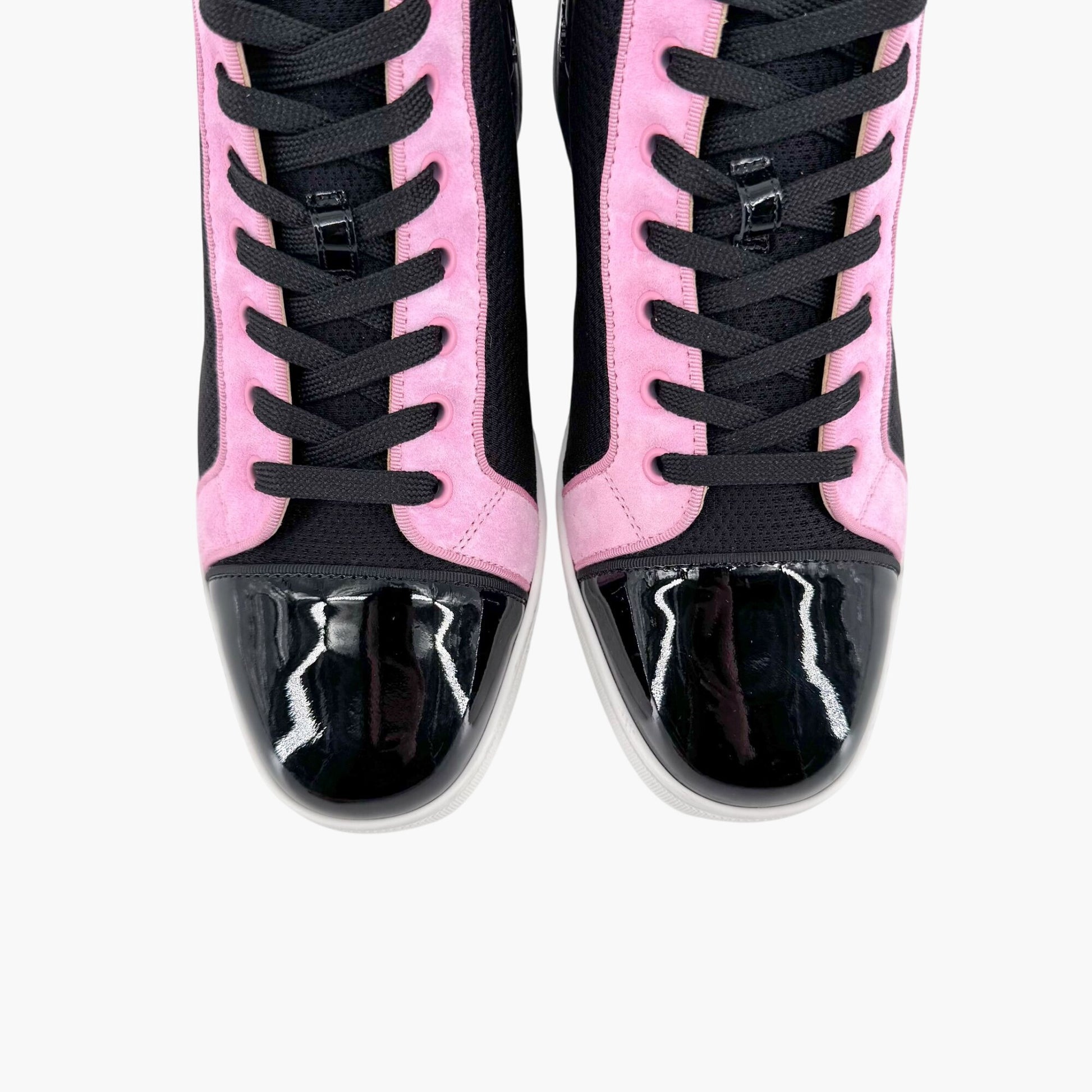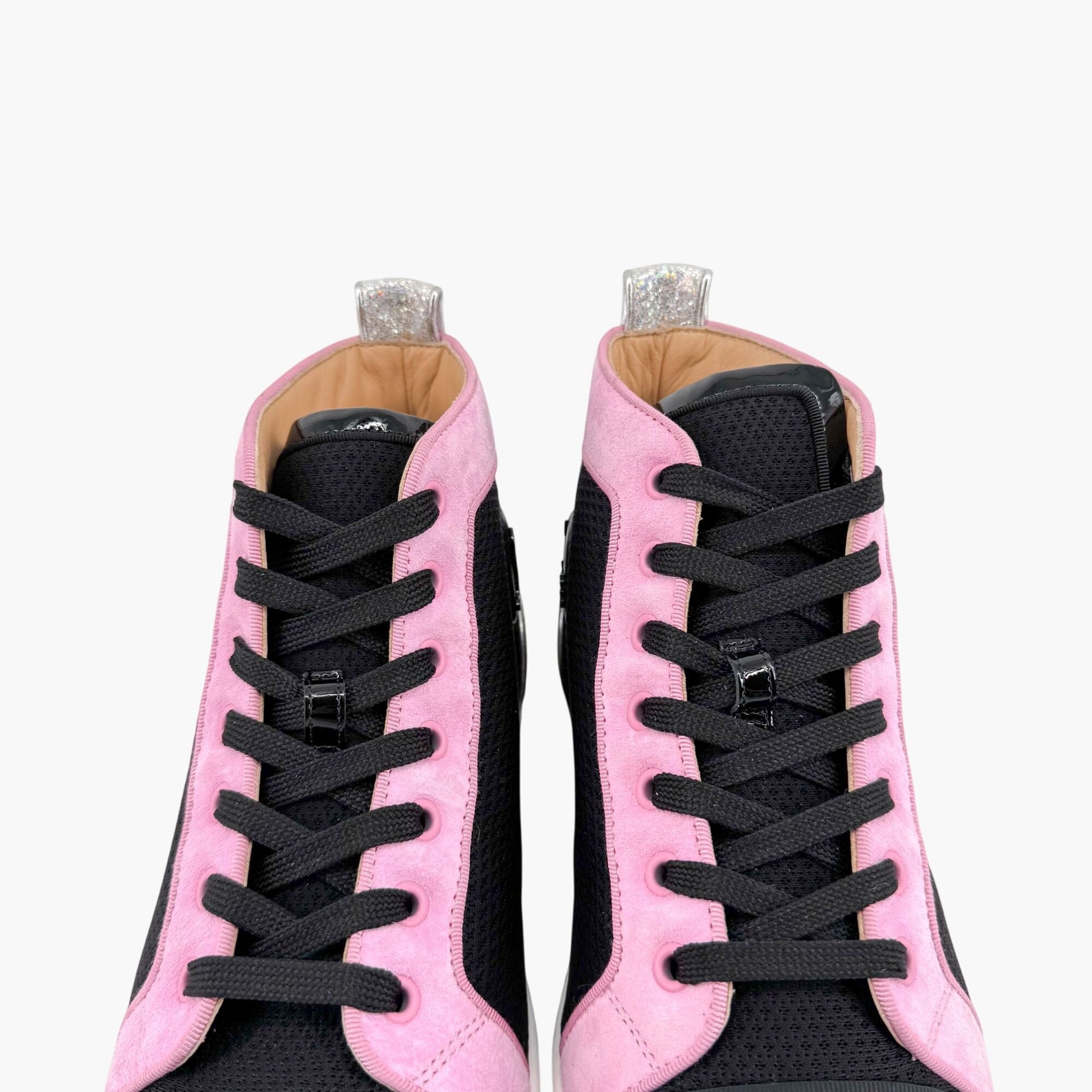Christian Louboutin Louis Orlato High-Top Sneakers in Black Mesh & Pink Suede – Size 39.5
