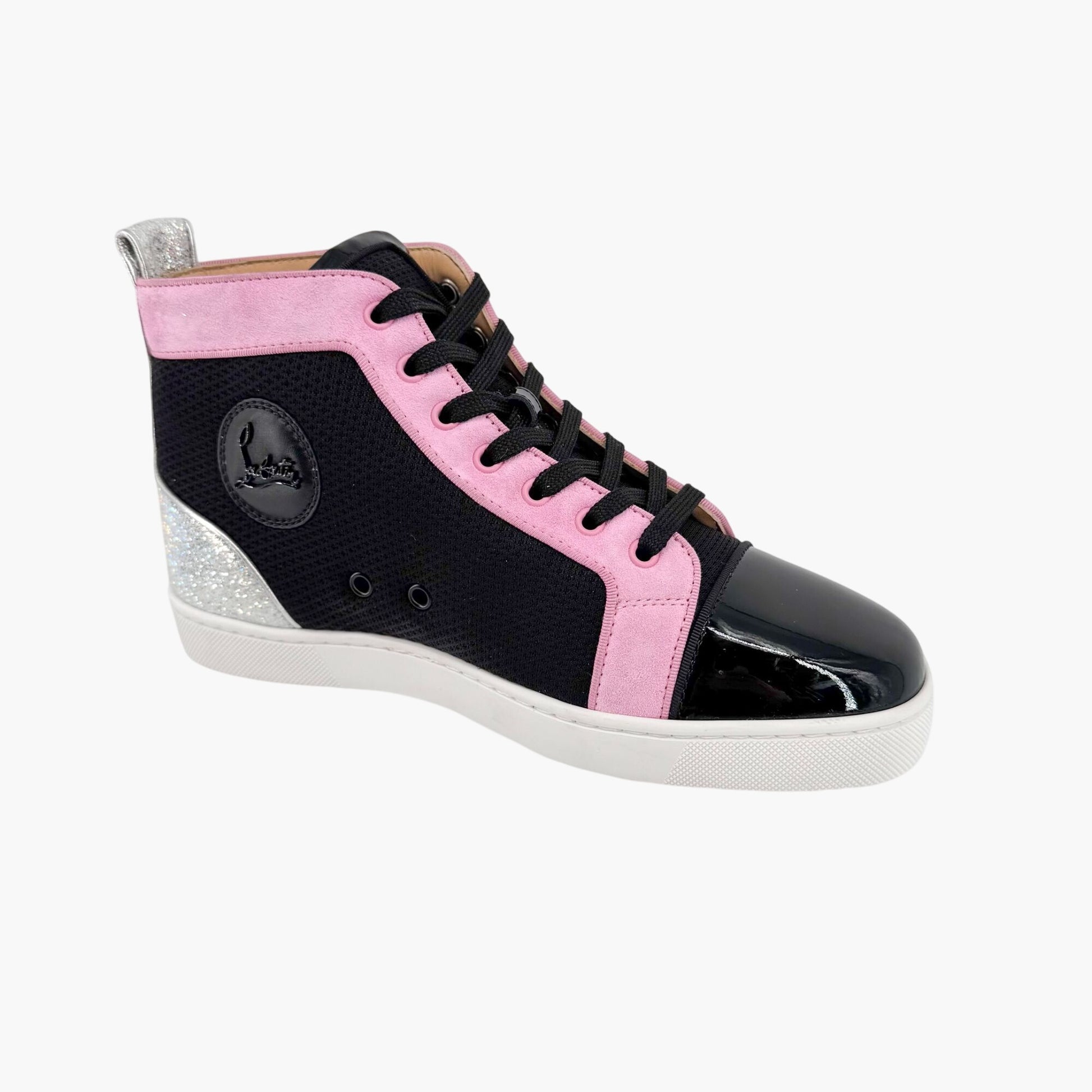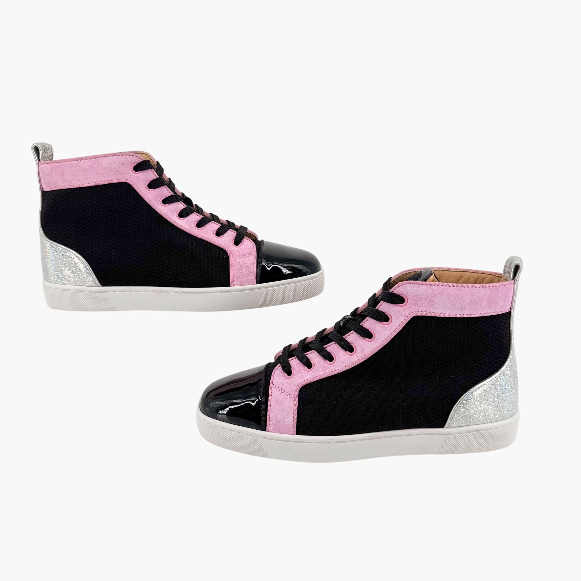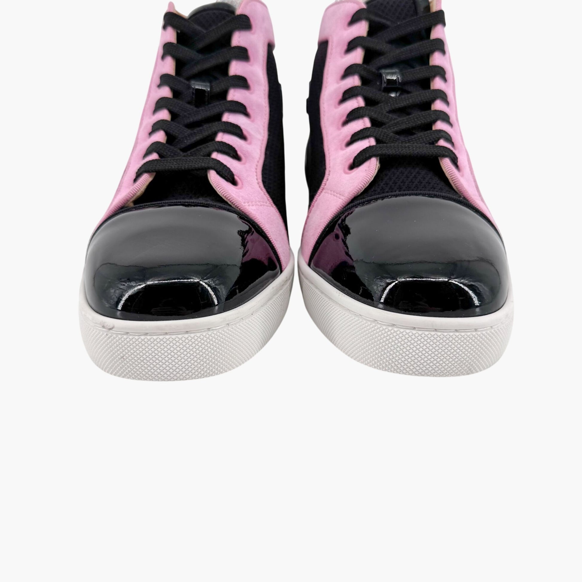 Christian Louboutin Louis Orlato High-Top Sneakers in Black Mesh & Pink Suede – Size 39.5