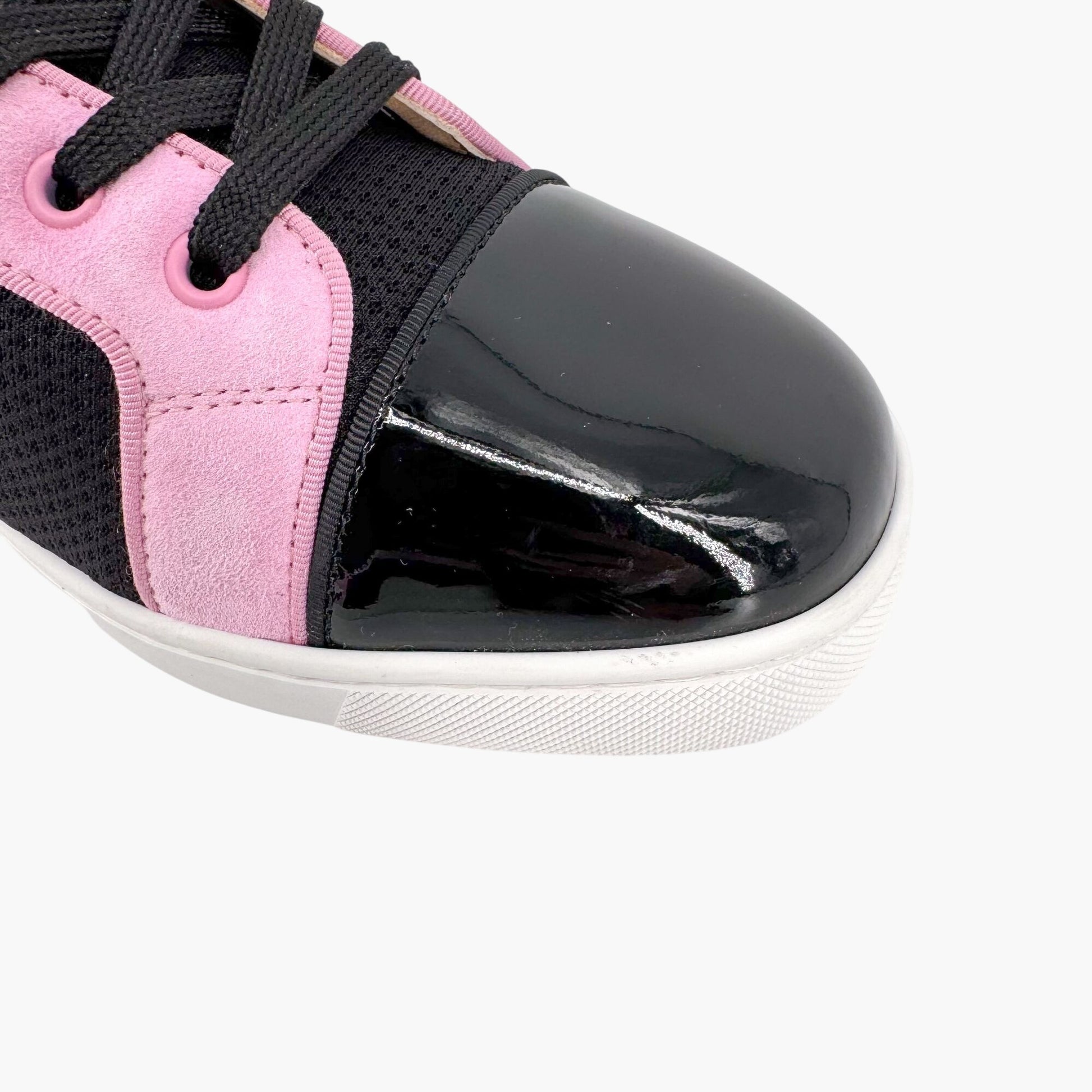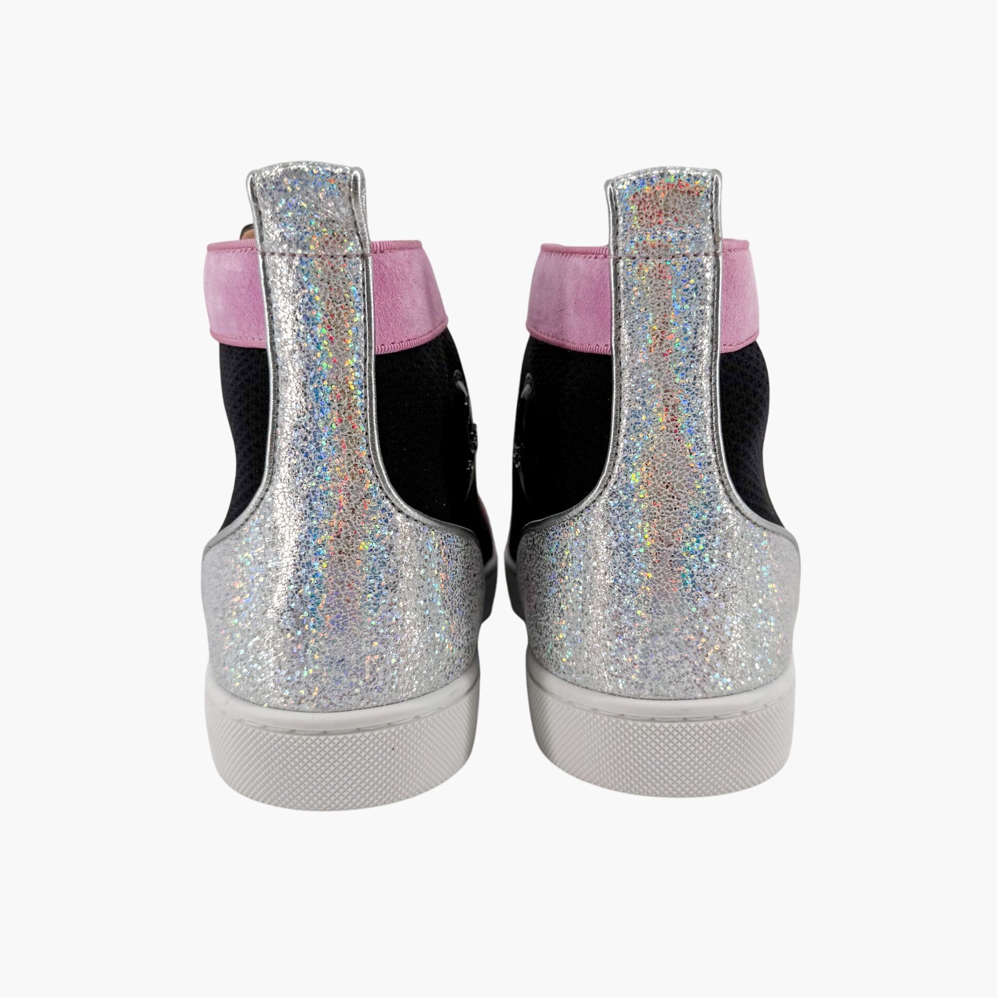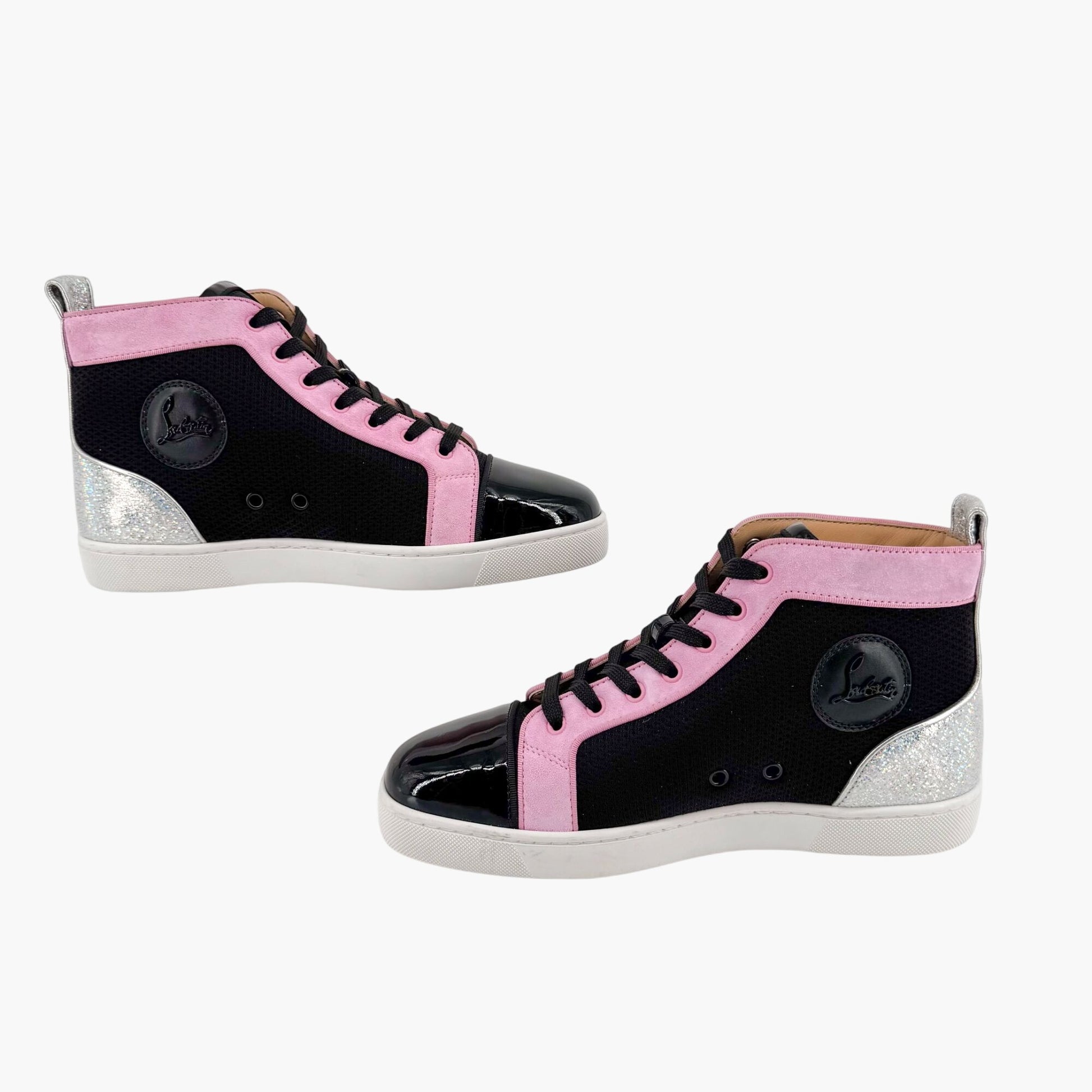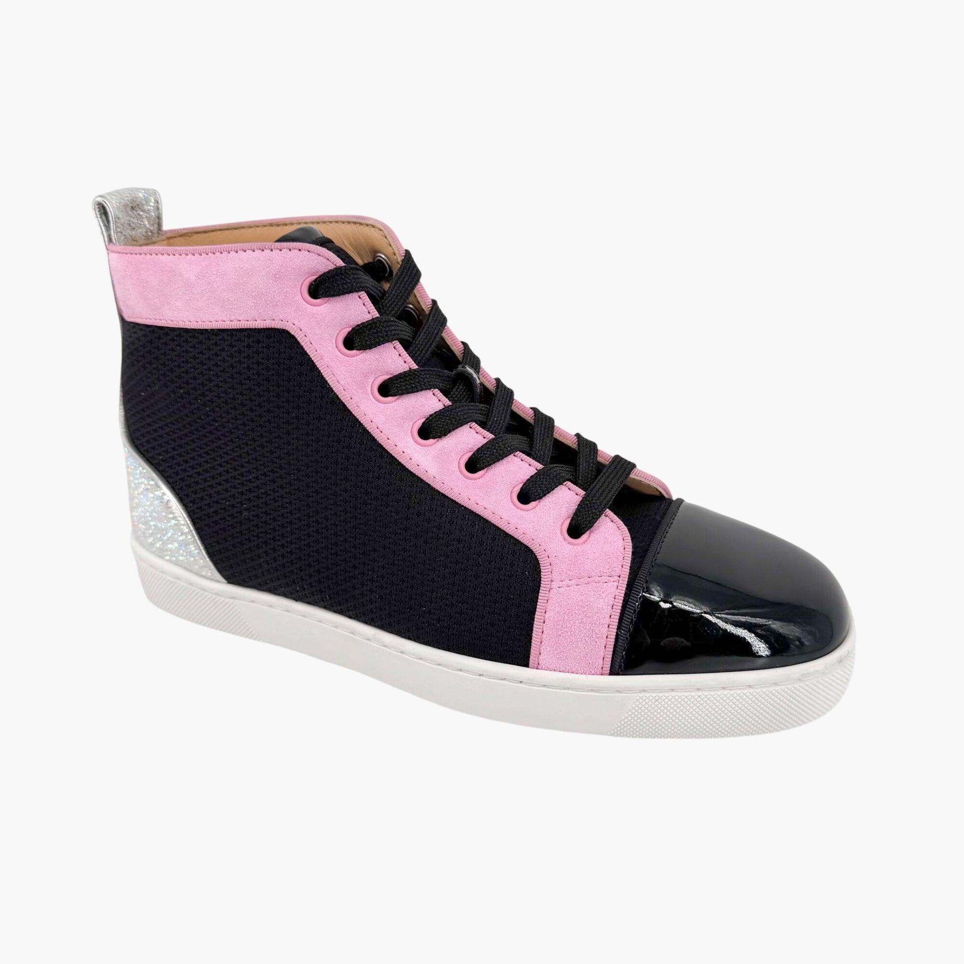 Christian Louboutin Louis Orlato High-Top Sneakers in Black Mesh & Pink Suede – Size 39.5