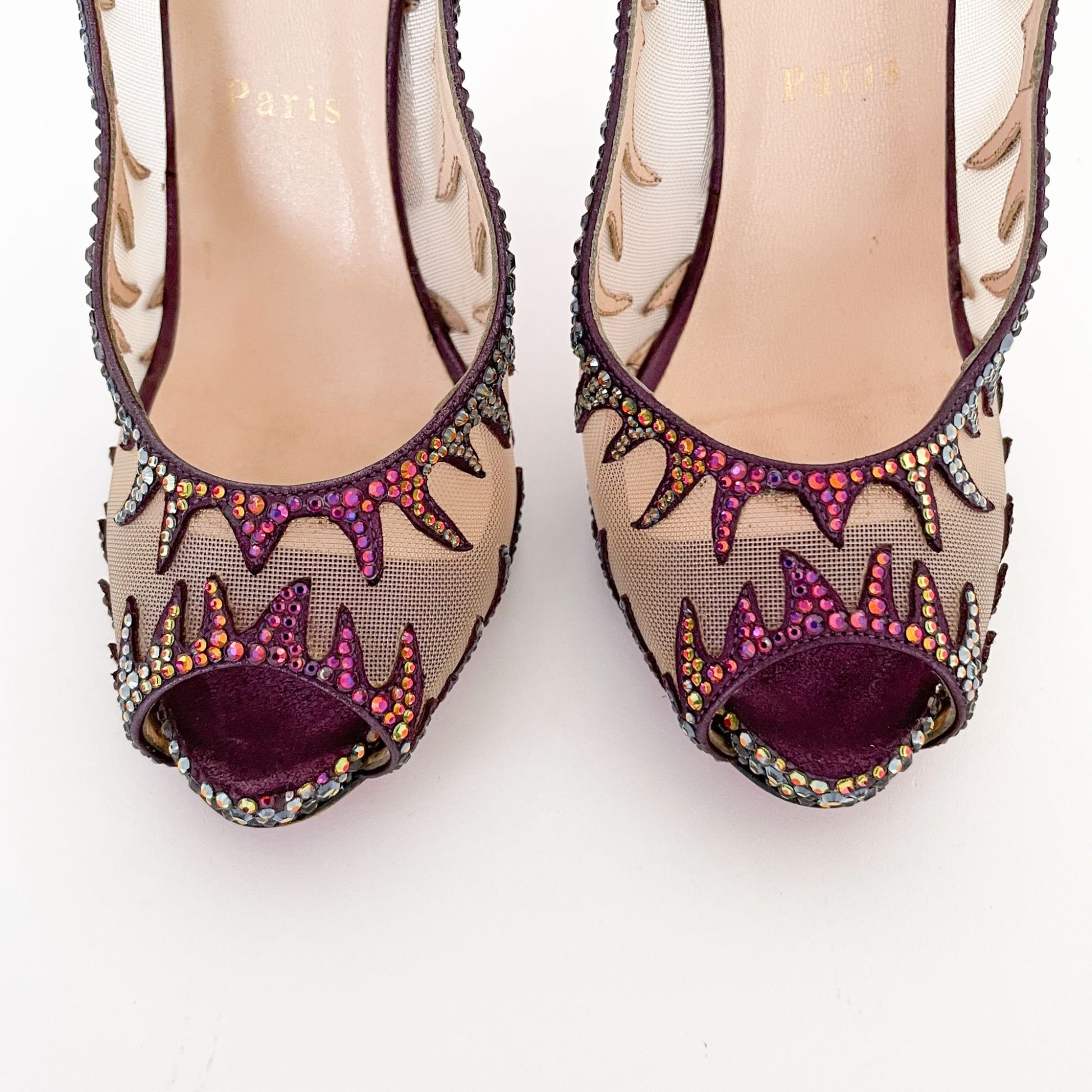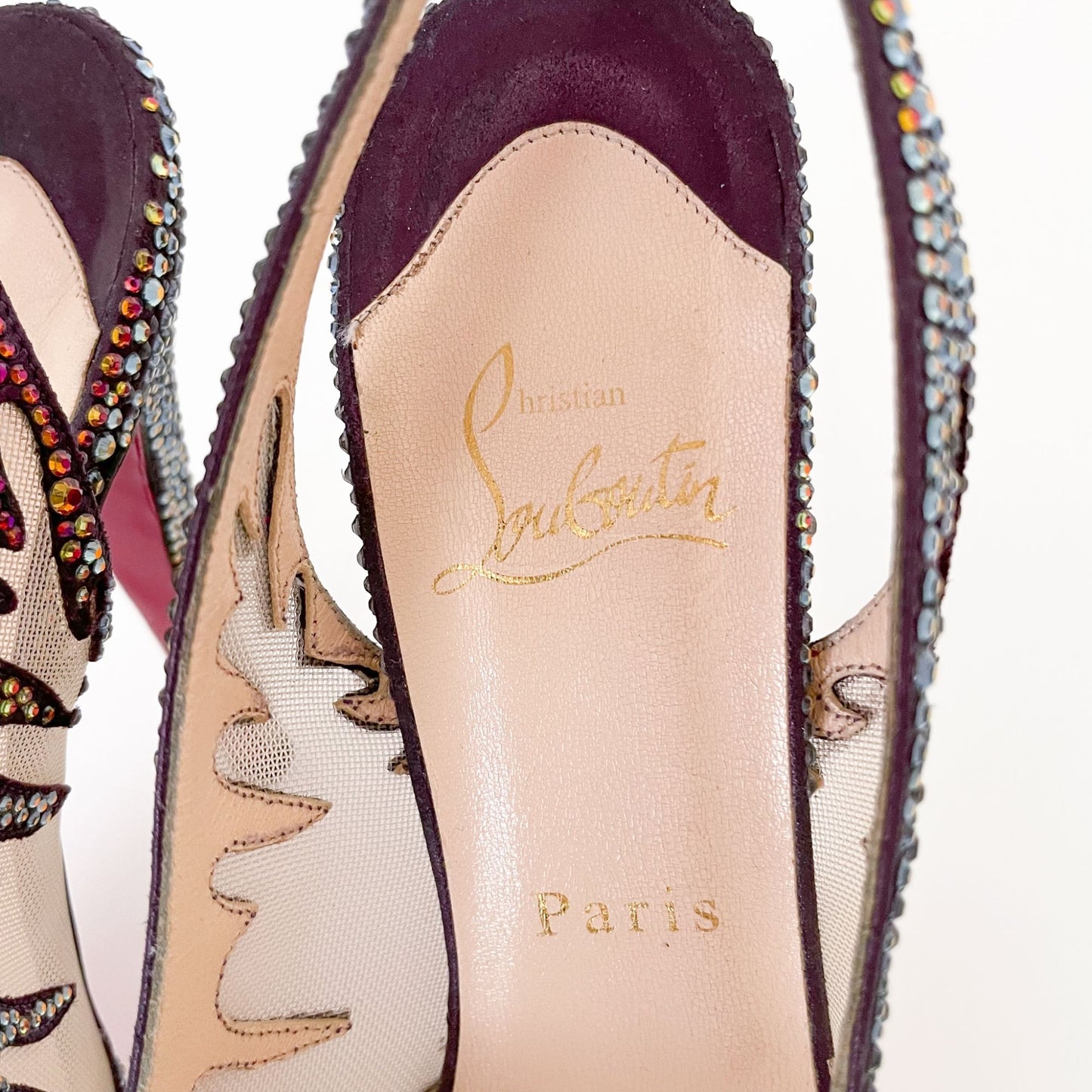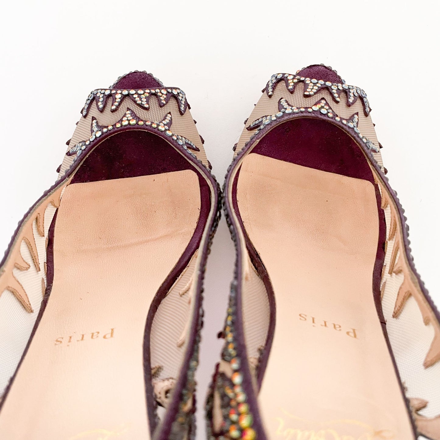 Christian Louboutin Maralena 120 Crystal-Embellished Pumps in Maroon Size 36.5