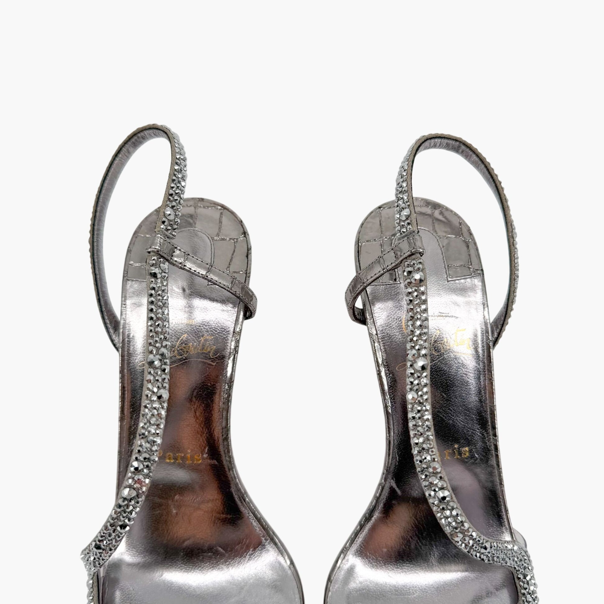 Christian Louboutin Rosalie Strass 100 Silver Heels Size 39
