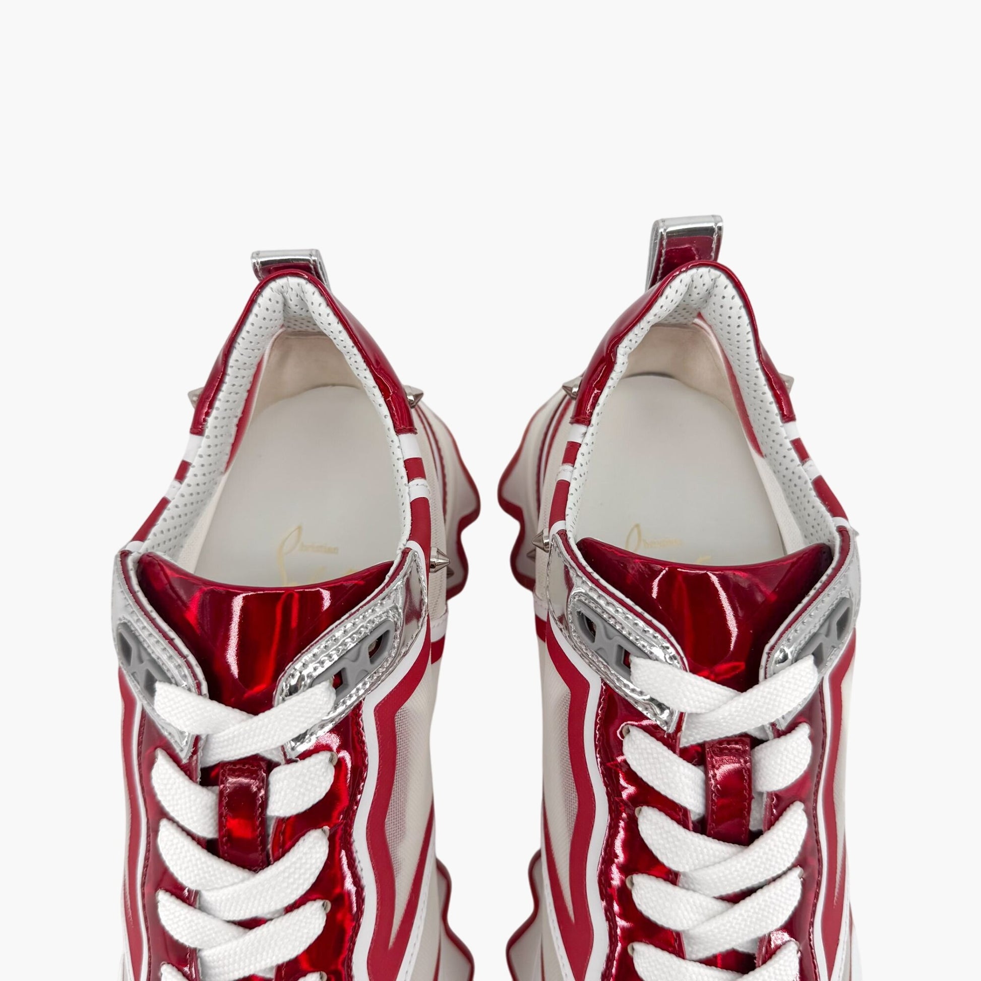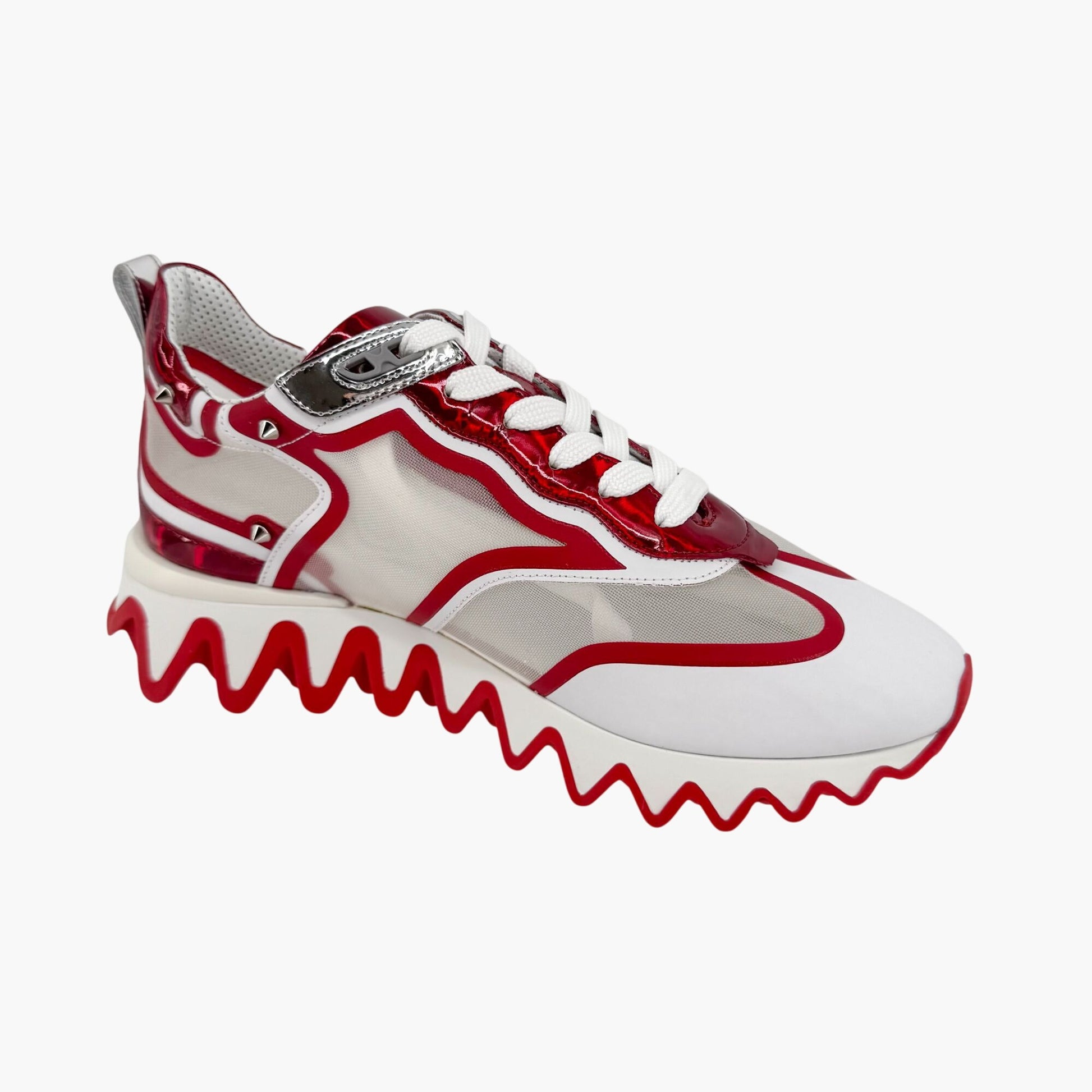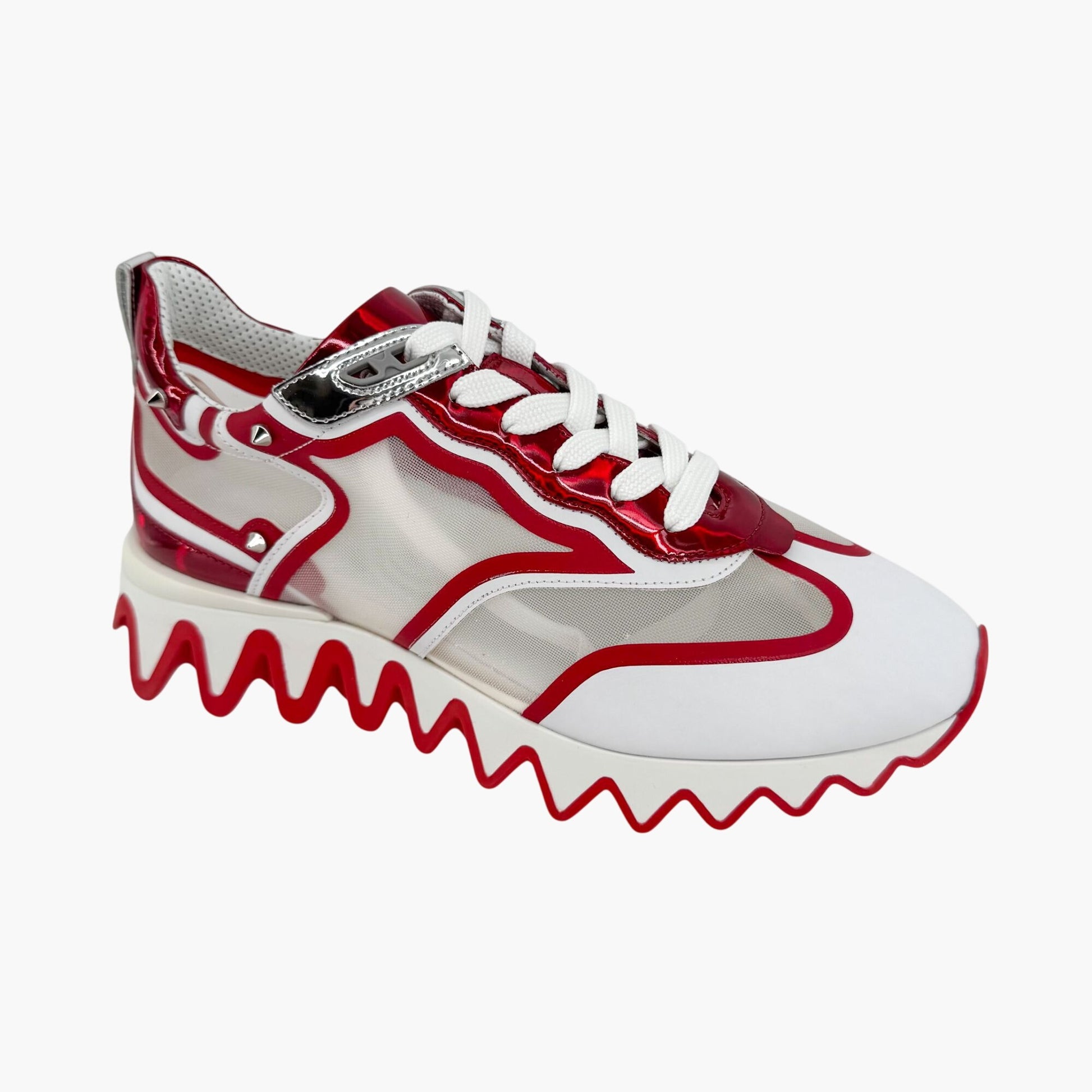 Christian Louboutin Sharkina Sneakers in White Mesh & Red Psychic Patent – Size 39.5