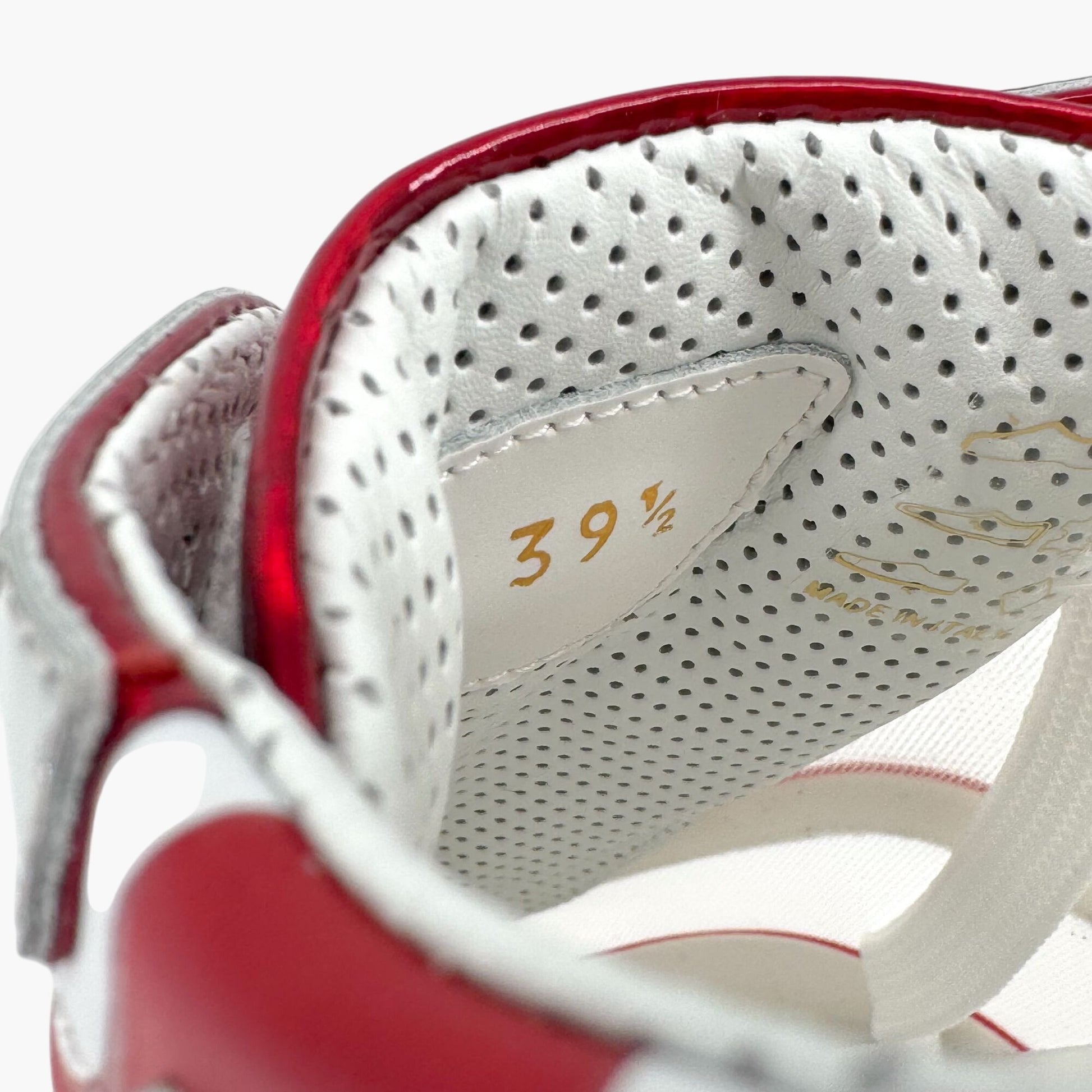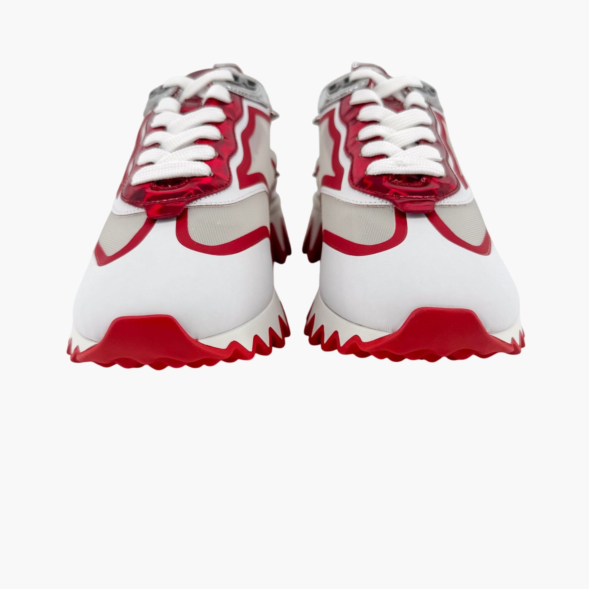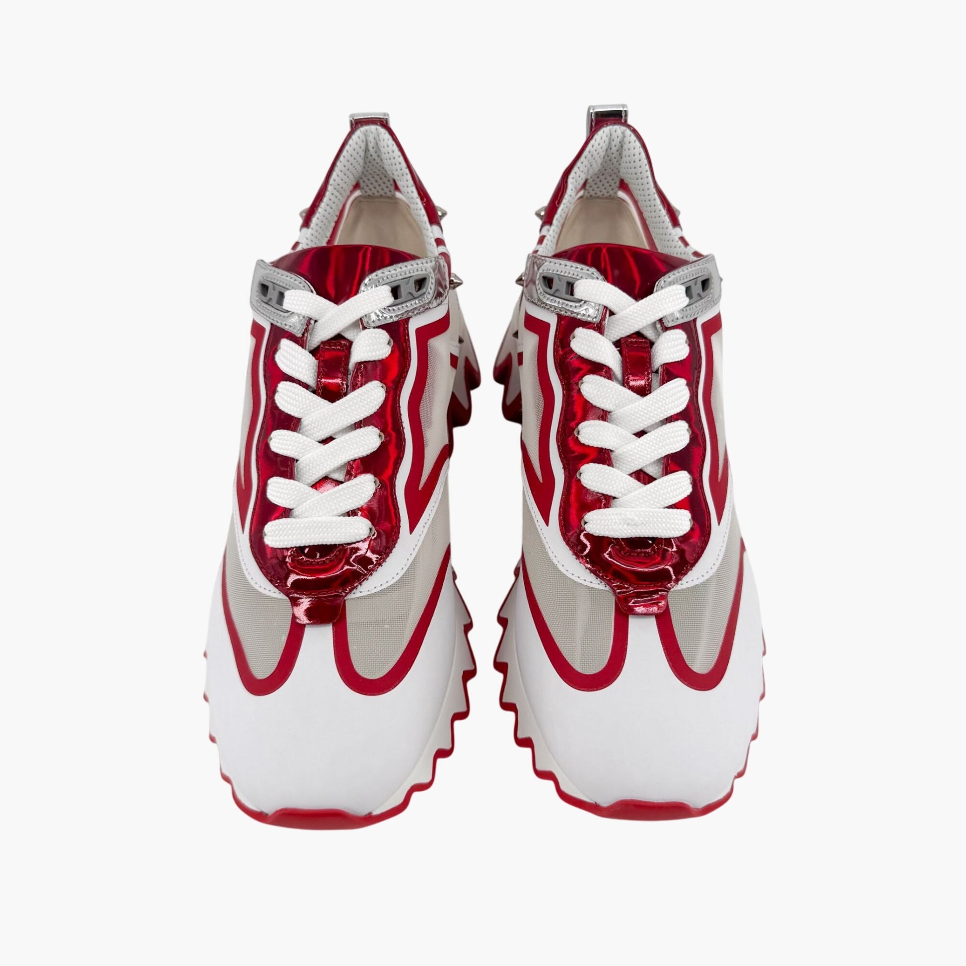 Christian Louboutin Sharkina Sneakers in White Mesh & Red Psychic Patent – Size 39.5