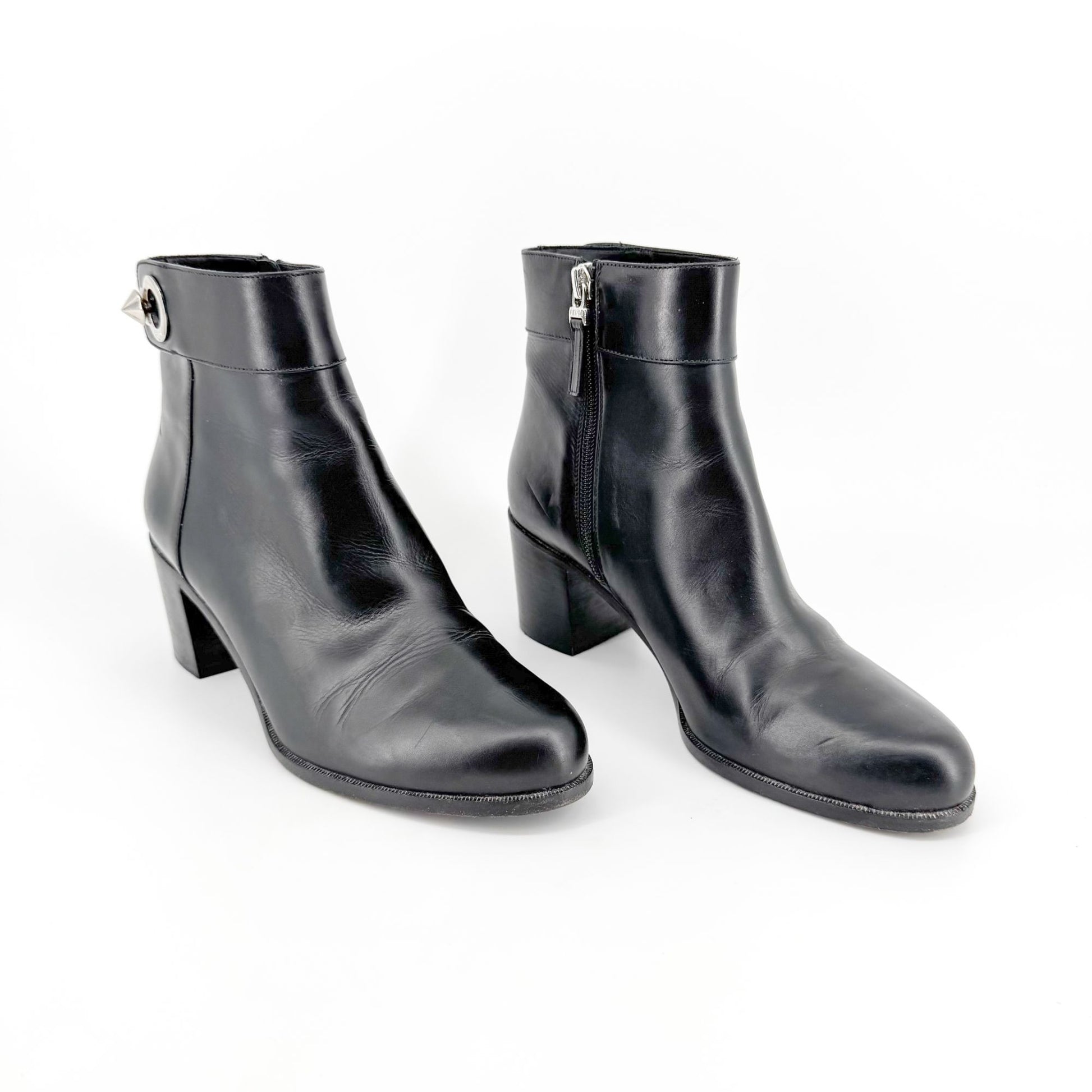 Fendi Stud Ankle Boots EU 38 US 8 Black Leather Bootie Low Block Heel Spike Zip