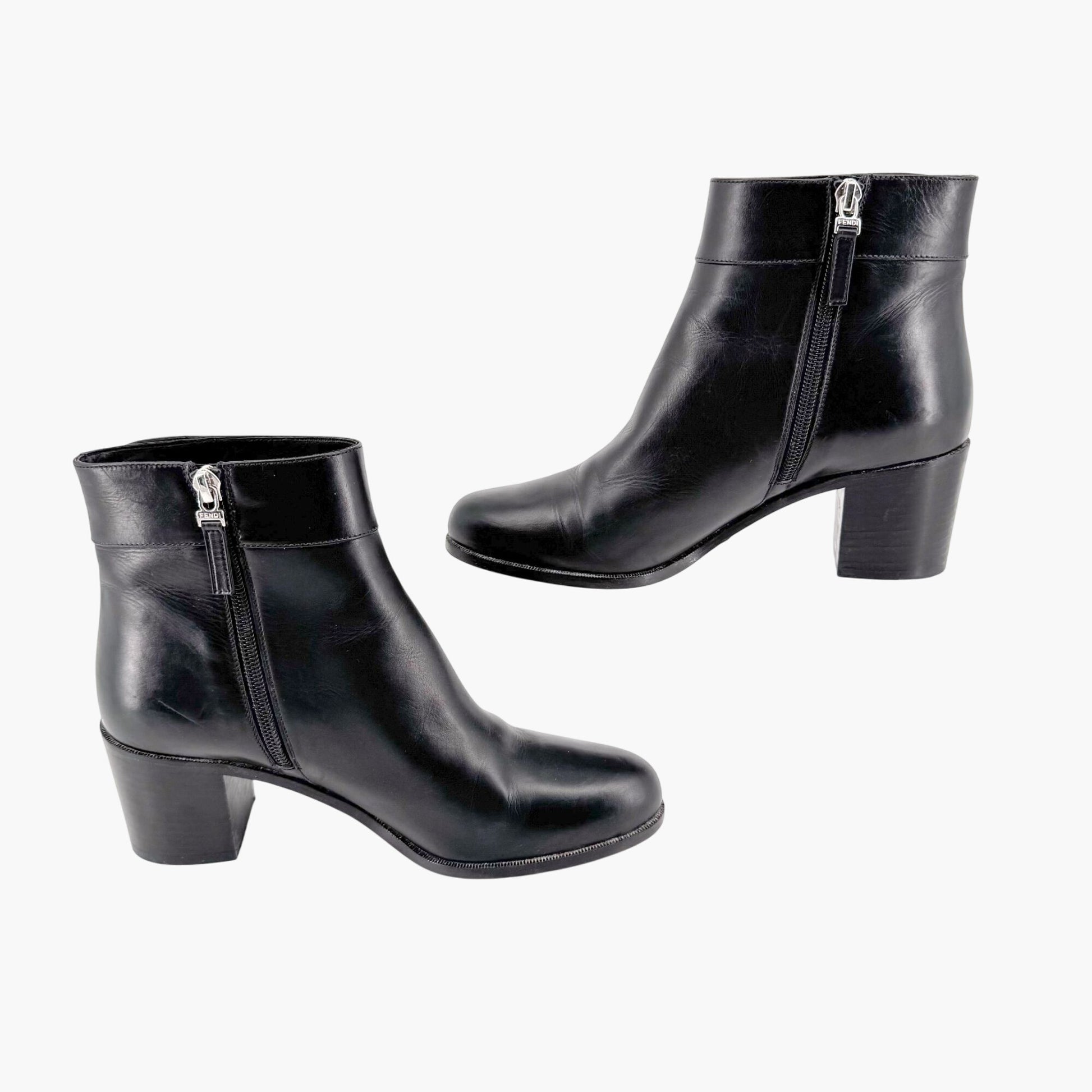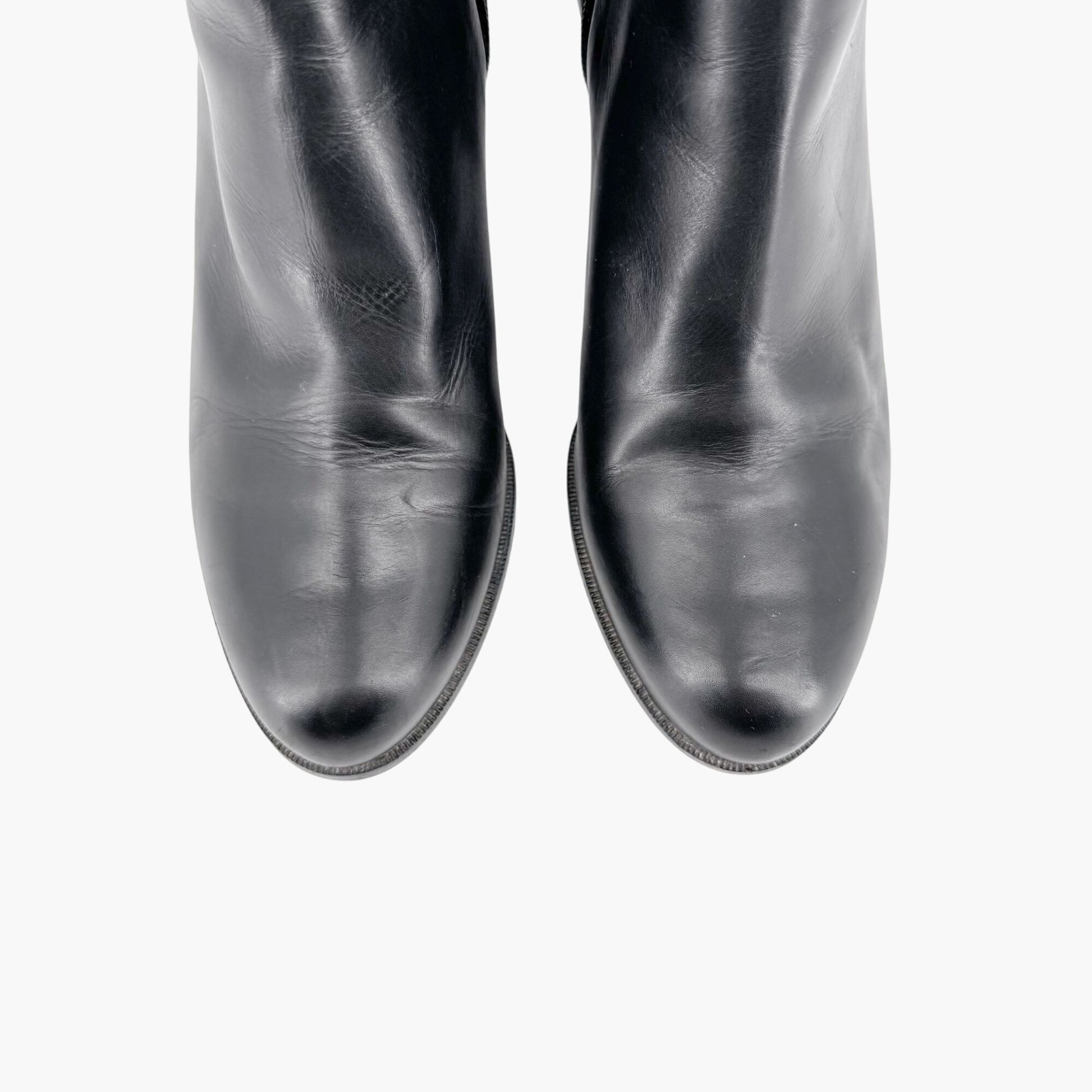Condition: Boots show signs of use, including creasing, scuffing of leather uppers/edges of block heels, and wear on outsoles. Otherwise in good overall condition.