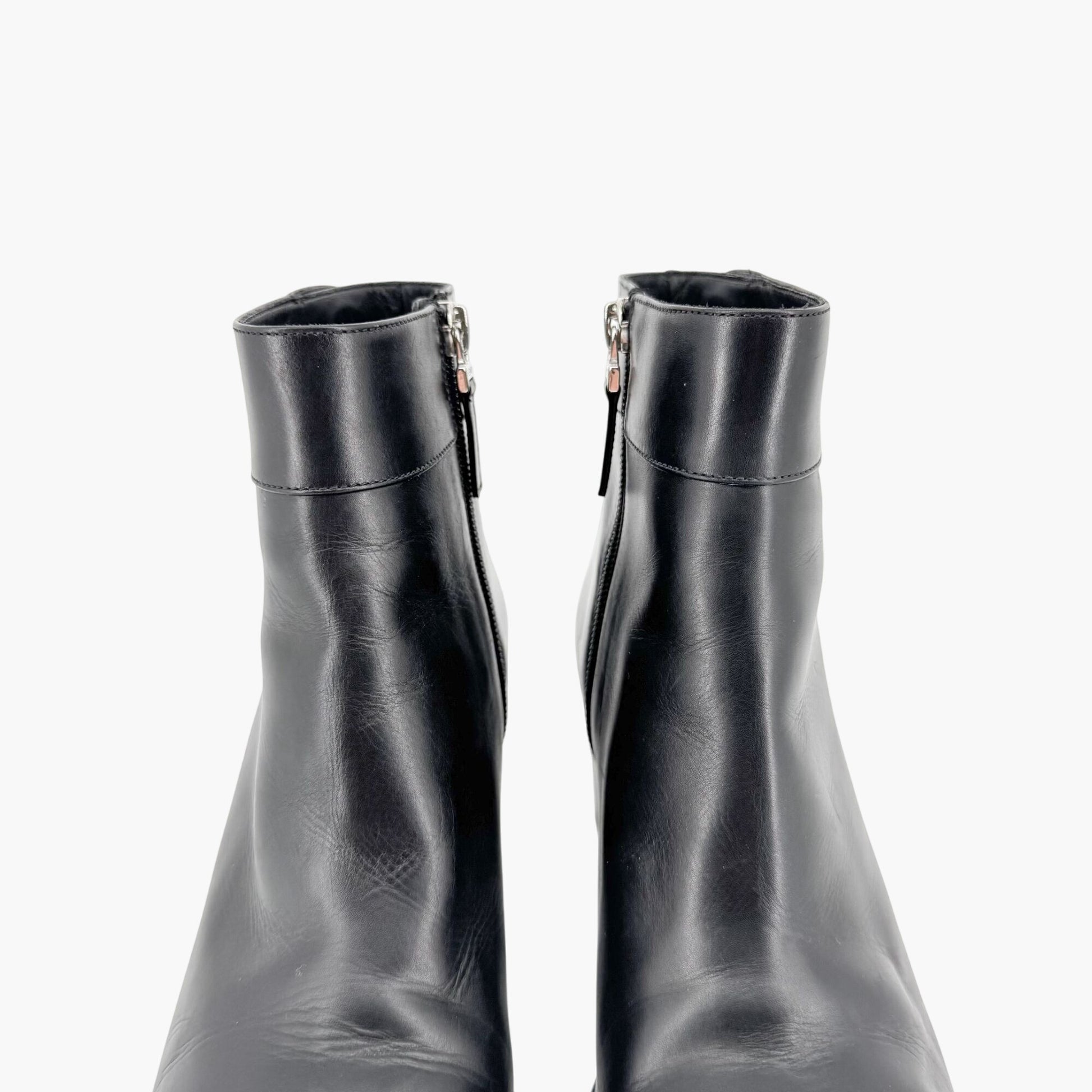 Step up your style game with these Fendi ankle boots, crafted from sleek black leather with an edgy silver-tone spike. These versatile booties feature a convenient side zip closure and a rounded almond toe for everyday comfort. A low stacked block heel adds subtle height, while the leather footbed, lining, and outsole ensure durability and luxury. Perfect for adding a touch of sophistication and boldness to your streetwear, office, or evening looks.